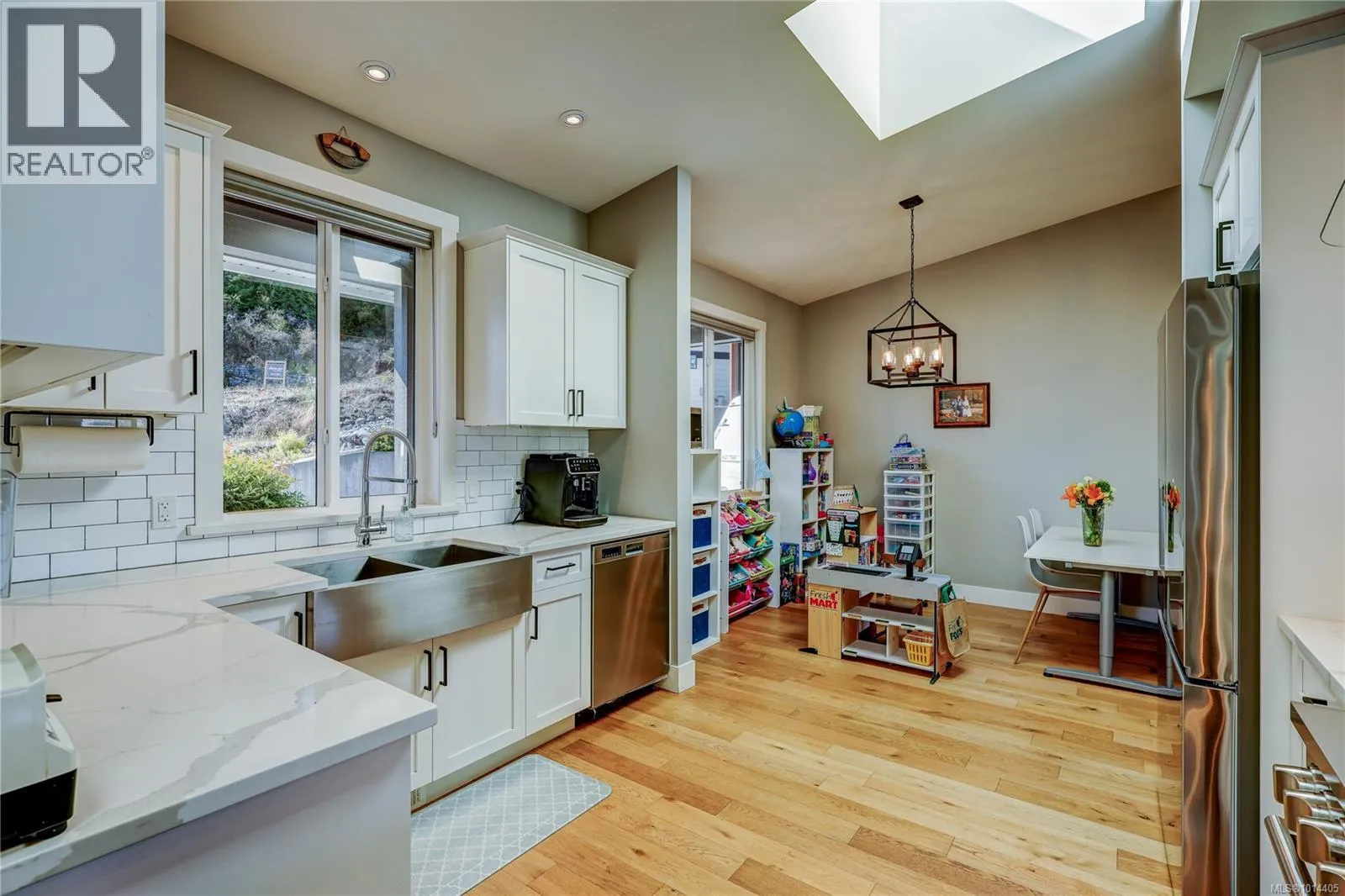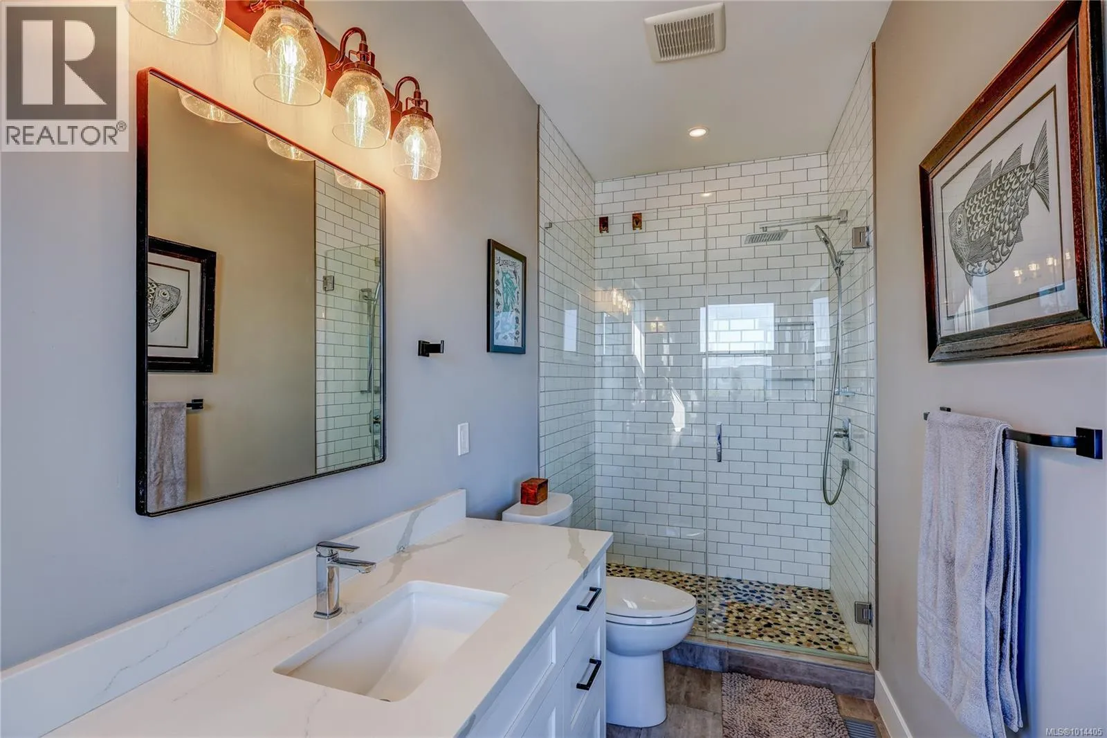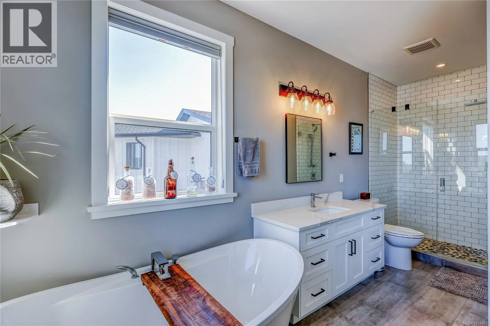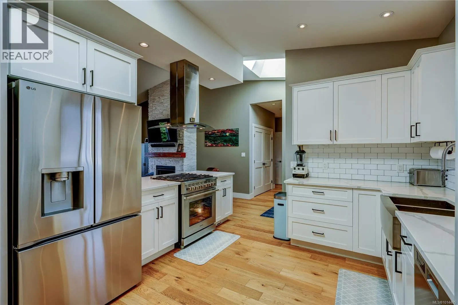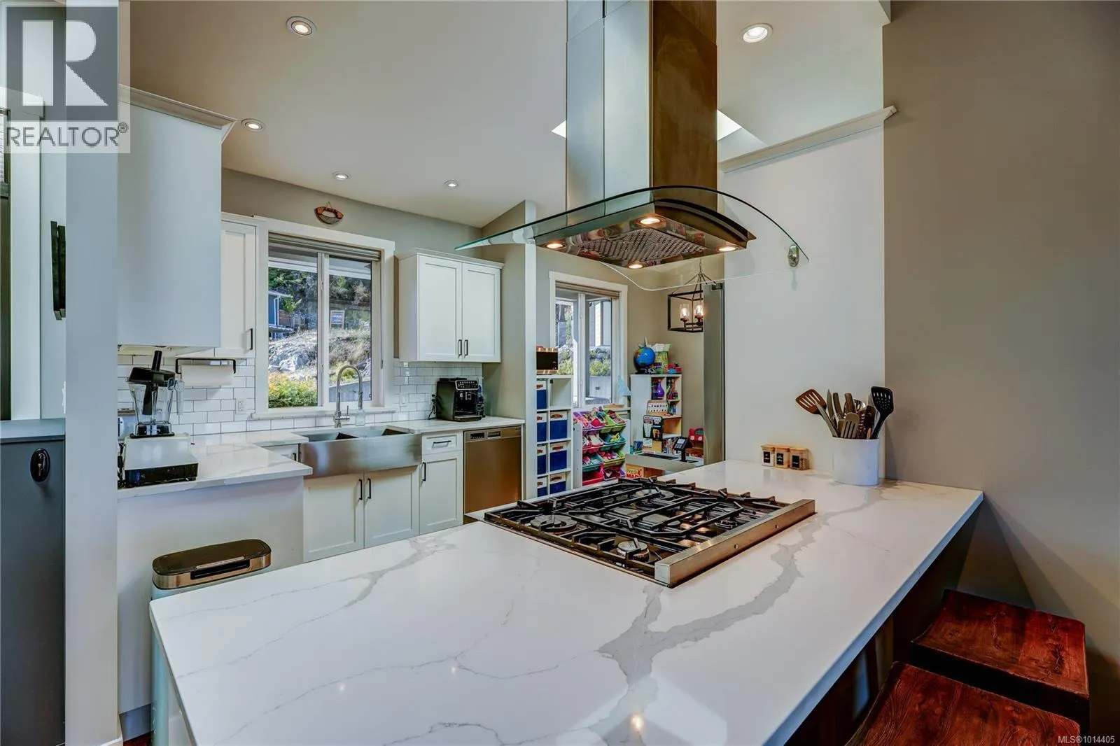 Panoramic mountain-view modern home located on a quiet cul-de-sac at the top of the hill ! This quality built home offers level entry open plan living on the main w exceptional finishing details including engineered hardwood, quartz counters & floor to ceiling stonework gas fireplace. Wood cabinetry & gas range in kitchen w ss appliances. Spacious primary w private ensuite w freestanding soaker tub & step in shower. Walkin closet. Vaulted ceilings & oversized skylights flood the space wth natural light. Covered balcony w gas hook out to BBQ year round. Downstairs is a legal light & bright move in ready 1-bed suite w 8â9â ceilings. Separate entrance, hwt, yard/deck space & hydro meter. Walkin storage down is 1084 sq ft. Main has itâs own private fenced yard backing onto treeline & includes hot tub & above ground pool. Plenty of parking including RV & 670 sq ft heated garage. Ideal location-just minutes to schooling, shopping & trails. Too many features to list - this home is a must-see! (id:27476)