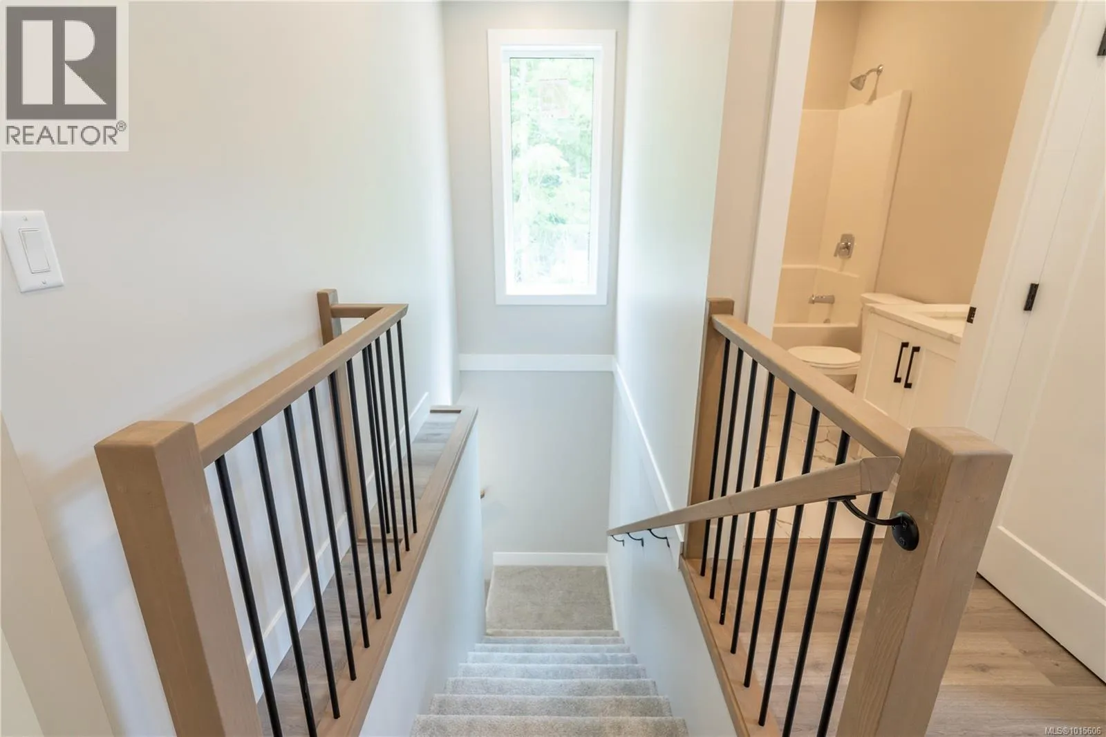 Timeless Charm at a desirable location. This beautiful half duplex home features impressive amenities, a rare one-bedroom legal suite and zero strata fees. With 9-foot ceilings throughout and ocean & forest views from the living room, kitchen, and primary bedroom, you'll experience true West Coast living. The kitchen showcases elegant white maple cabinetry with soft-close drawers/ doors, under-cabinet lighting, and luxurious quartz countertops and backsplash. A charming glass-door upper corner cabinet adds a touch of character, while a spacious center island serves as both a focal point and additional storage. The living room's tray ceiling enhances the sense of openness, and durable laminate flooring flows seamlessly throughout, complemented by stylish tile in the bathrooms. The primary bedroom offers a generous space complemented by a tray ceiling and 3pce ensuite with tiled floor & shower surround. Additional highlights include high-quality faucets and plumbing fixtures, an on-demand hot water system, and a natural gas furnace with air conditioning roughed in, along with a roughed in natural gas barbecue connection on the deck for outdoor cooking. The legal one-bedroom suite offers convenient level entry at the lower level, complete with an electric hot water tank and baseboard heating monitored by its own hydro meter. Consistent high-quality features extend throughout the home. A covered patio outside the suite entrance and a connecting door between the main home and the suite, enhance both versatility and comfort. There are zero strata fees only a shared strata insurance policy. The new home exemption could enable buyers to bypass property transfer tax, while first-time homebuyers may qualify for GST exemption. This residence, constructed by an established builder, is backed by a 10-year new home warranty. Measurements are approx pls verify if important. Donât miss the chance to experience this remarkable half duplex for yourself! (id:27476)