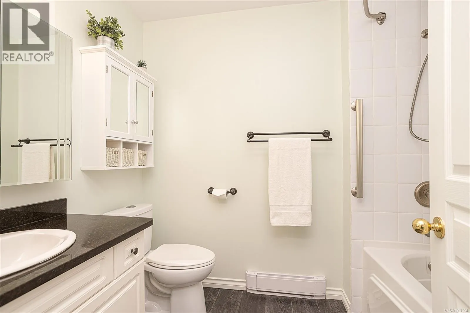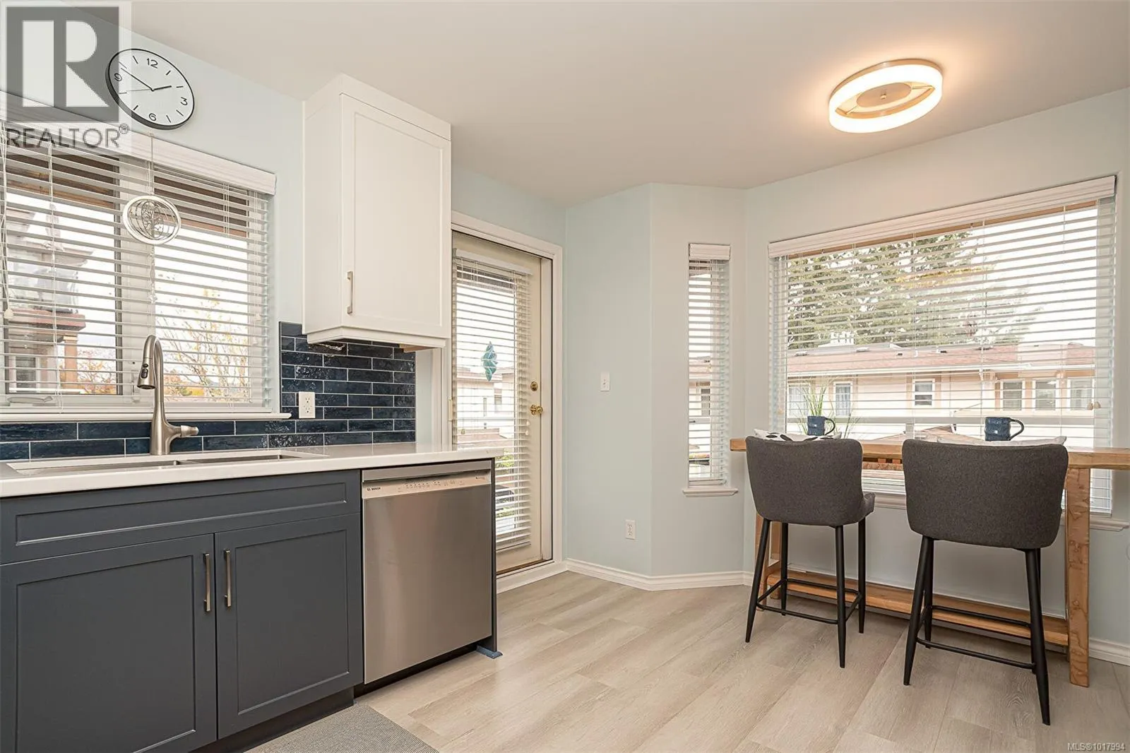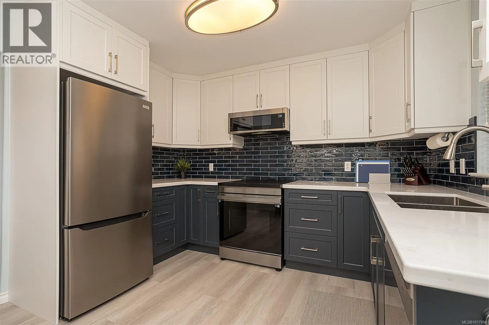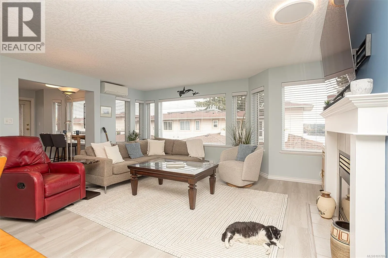 OCEAN VIEW CONDO! - spacious, Bright and move -in-ready! Enjoy ocean views from this beautifully updated 1407 sq ft condo featuring 2 large bedrooms. Main bathroom 4 ft walk in shower, and ensuite with extra long tub and walk in closets in both bedrooms. The open layout is perfect for entertaining with a generous living and dining area centered around a cozy gas fireplace. The brand new kitchen offers quartz countertops, newer appliances, under counter lighting. Step out to your wrap around deck and enjoy the ocean view activities in Ladysmith harbor and distant coastal mountains. Stay comfortable all year round with a ductless heat pump and baseboard heating. An easy walk to town or the beach via the tunnel. Minutes walking to downtown and all amenities. Watch summer fireworks from your own home. This no step condo includes a single garage, low maintenance fees, and is truly a one of a kind in this complex. Act quick, this wont last! Pets allowed. ( 1 dog , 1 cat or 2 cats) (id:27476)