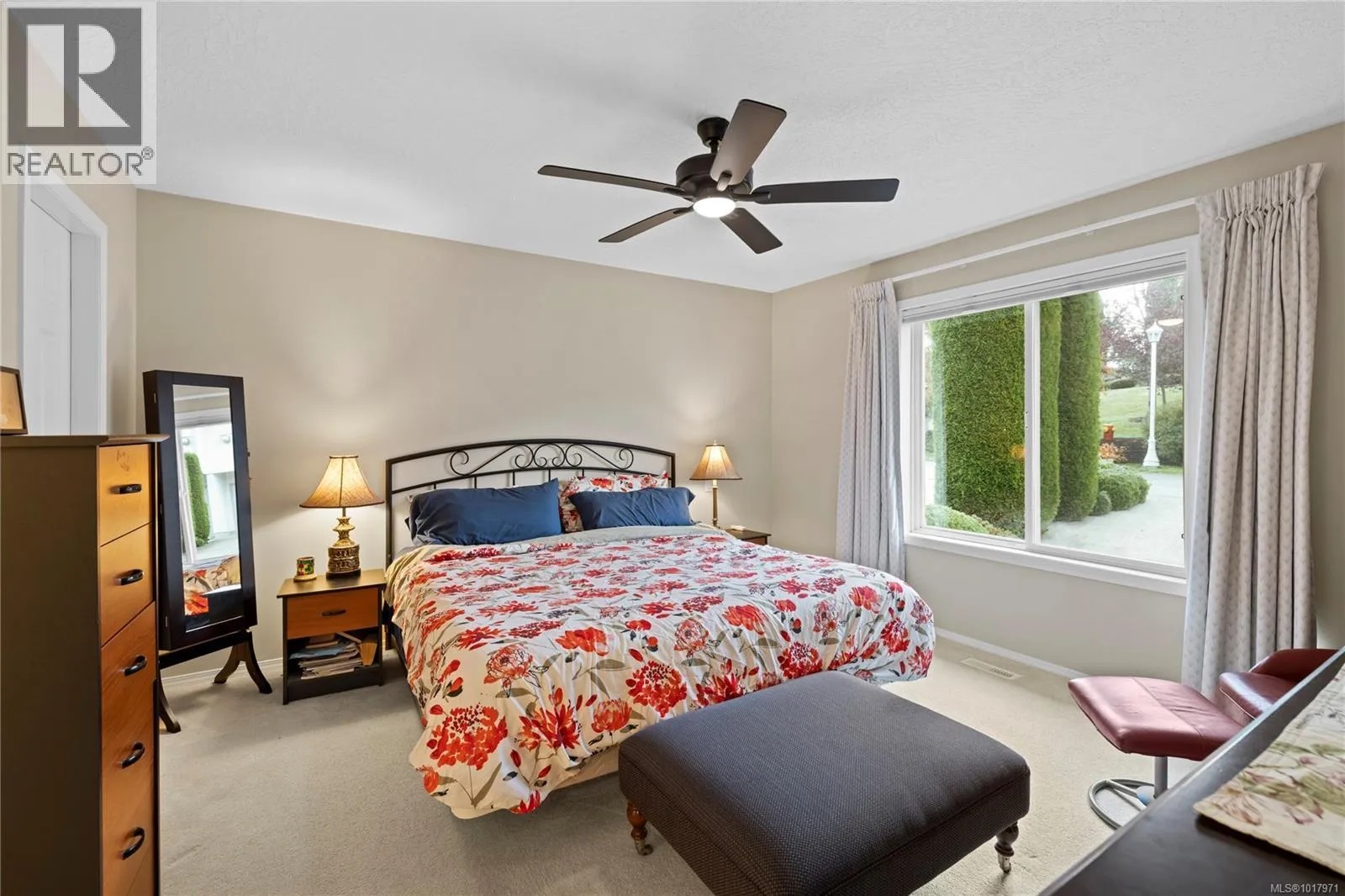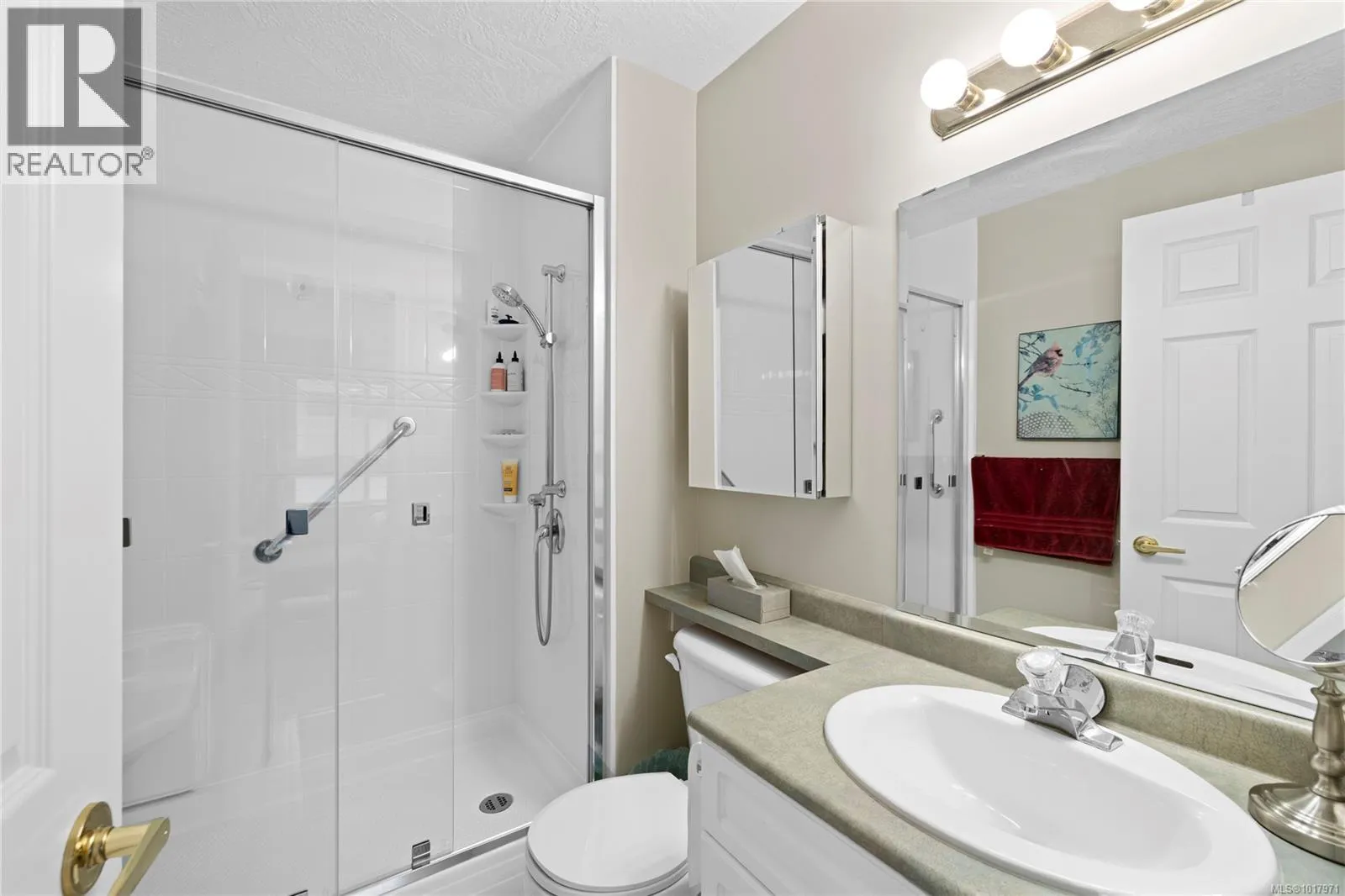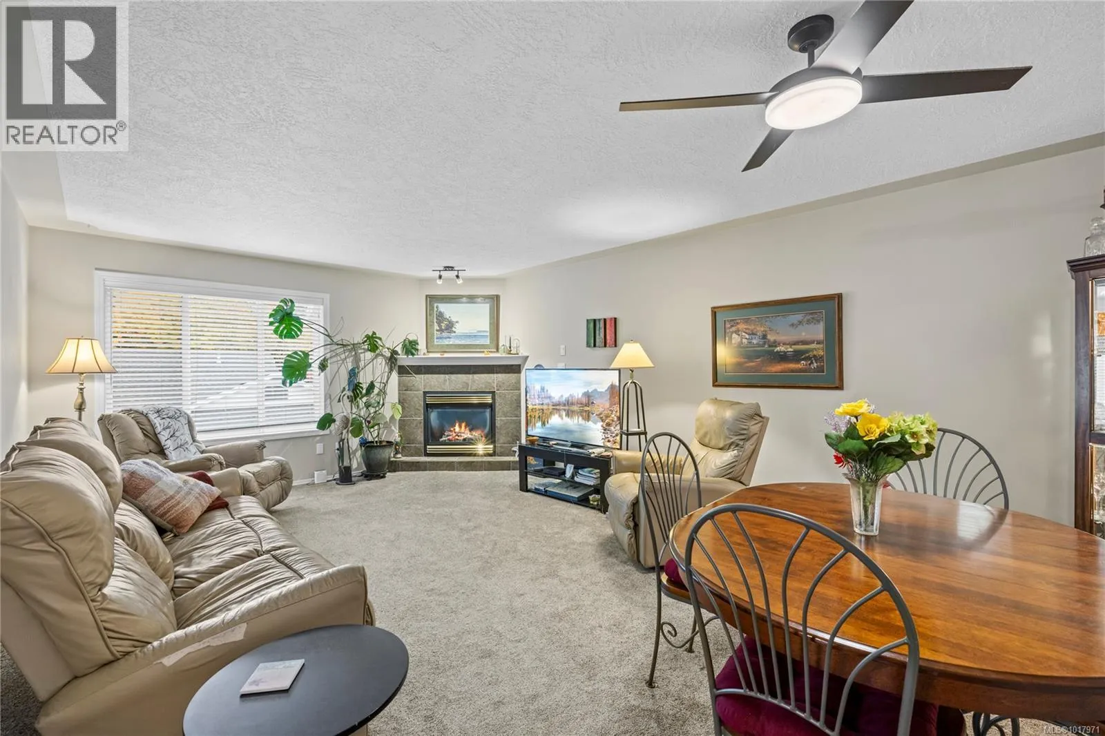 Welcome to Twin Falls, a sought-after 55+ community where comfort and convenience meet. This inviting 3 bed, 3 bath duplex offers easy main-level living with room for family and hobbies below. The bright kitchen features an island, abundant cabinetry, eating area, and new built-in dishwasher and microwave, with sliding doors leading to a sunny deck, perfect for morning coffee. The open living and dining areas are warmed by a cozy gas fireplace, creating the ideal space for gatherings. The primary suite offers a 4-piece ensuite, plus thereâs a second bedroom, full bath, and in-suite laundry on the main level. Downstairs, discover a spacious family room, guest bedroom, 3-piece bath, workshop, and walkout patio. Enjoy year-round comfort with a heat pump. Conveniently located near the airport, Holland Creek Trail, and Kinsmen Park, this home offers an easy-care lifestyle in a friendly community. (id:27476)