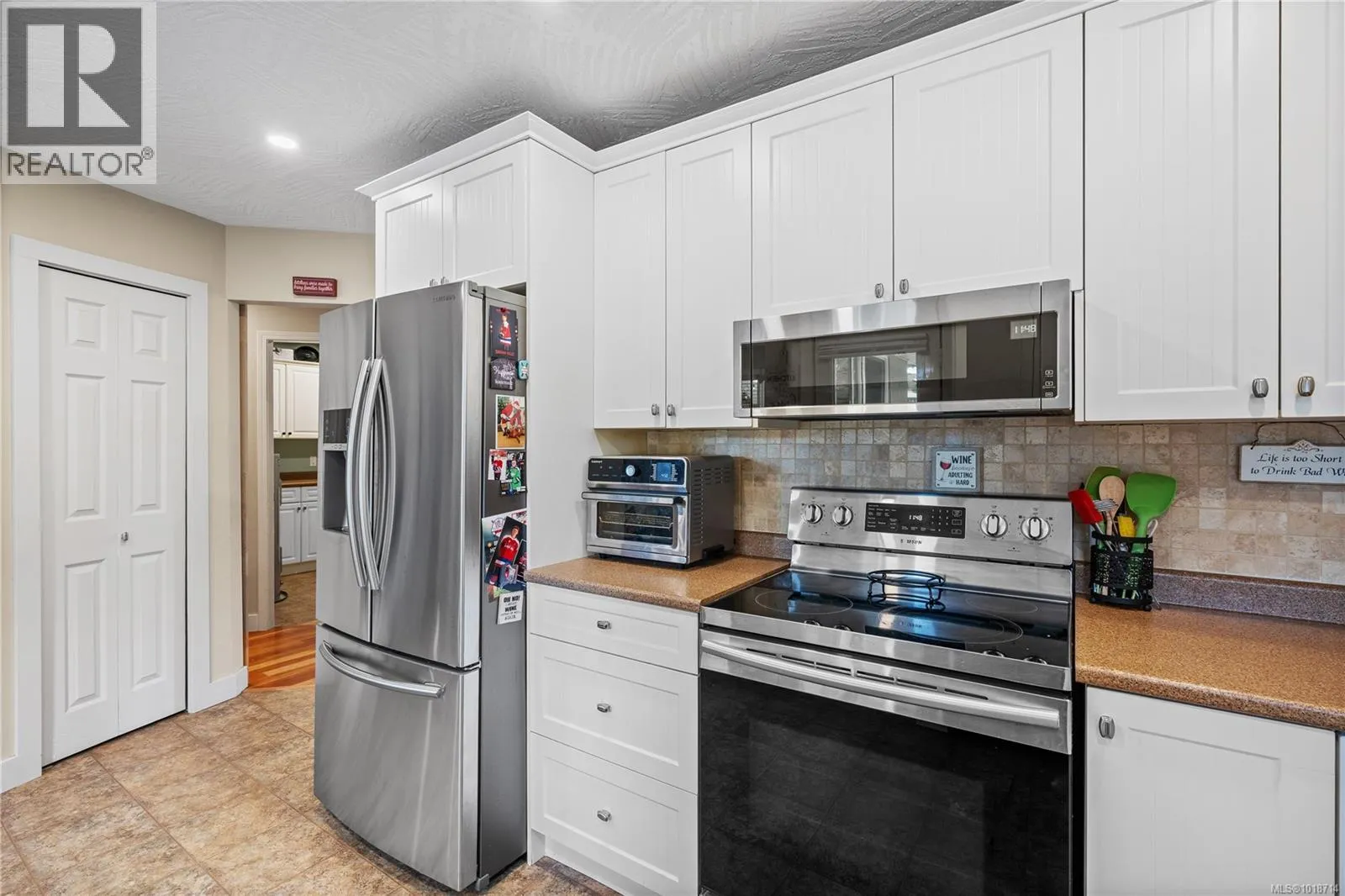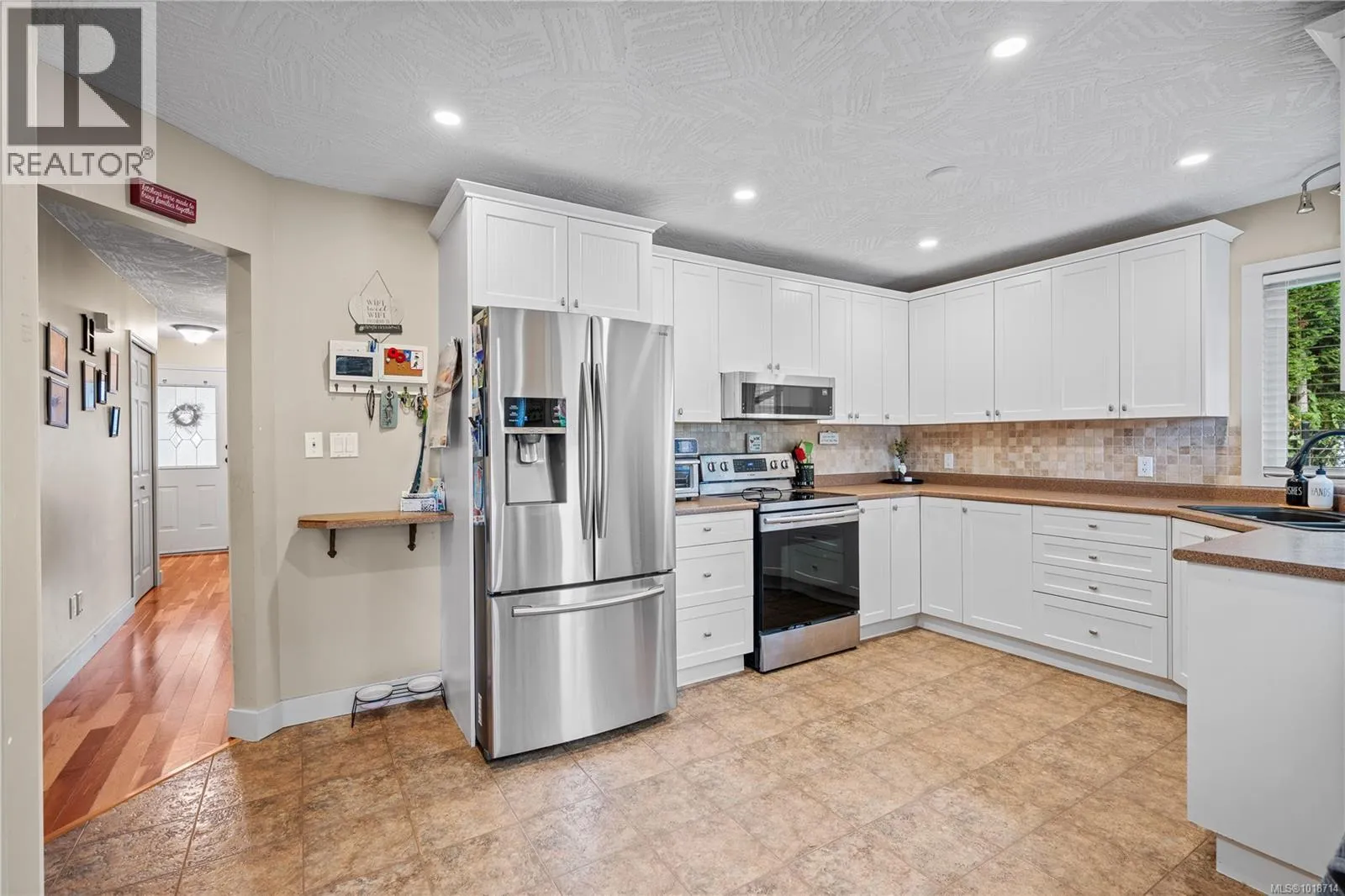 This cozy rancher, tucked away in a quiet cul-de-sac in upper Ladysmith, is close to everything! Welcome home â park in your double garage and take a few steps to the covered entry. Open the door and step into your generous living and dining room. Around the corner, youâll find the bright kitchen, complete with a window over the sink and a door leading to a private patio â perfect for family BBQs. Adjacent to the kitchen is the family room, which could also serve as a convenient workspace. Access to the laundry area leads directly into the full-size garage, offering great convenience when returning from a Costco run! The second bedroom faces south, inviting natural light throughout the day, and a four-piece bath located nearby provides easy access. With a full ensuite, generous closets, and a patio door opening to the hot tub outside, the master bedroom becomes a true retreat. The current owners love spending time on the back patio, whether hosting family get-togethers or enjoying an intimate dinner for two. The easy-care yard, with its excellent privacy, invites you to unwind and simply enjoy being home. (id:27476)