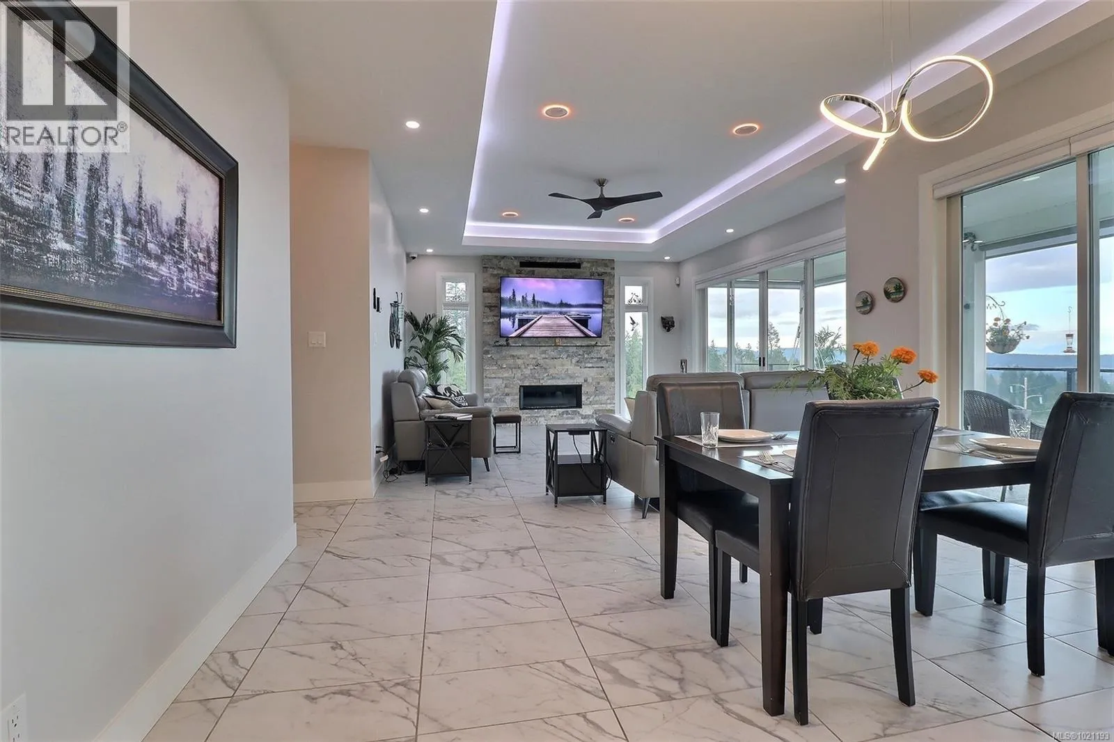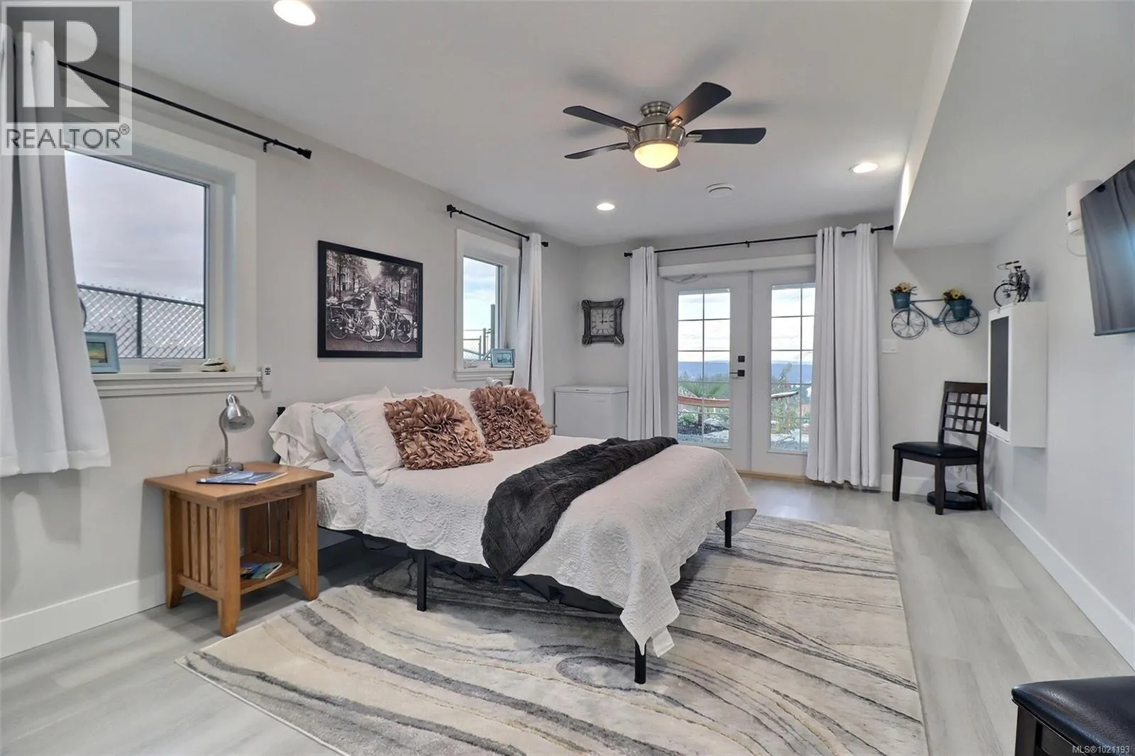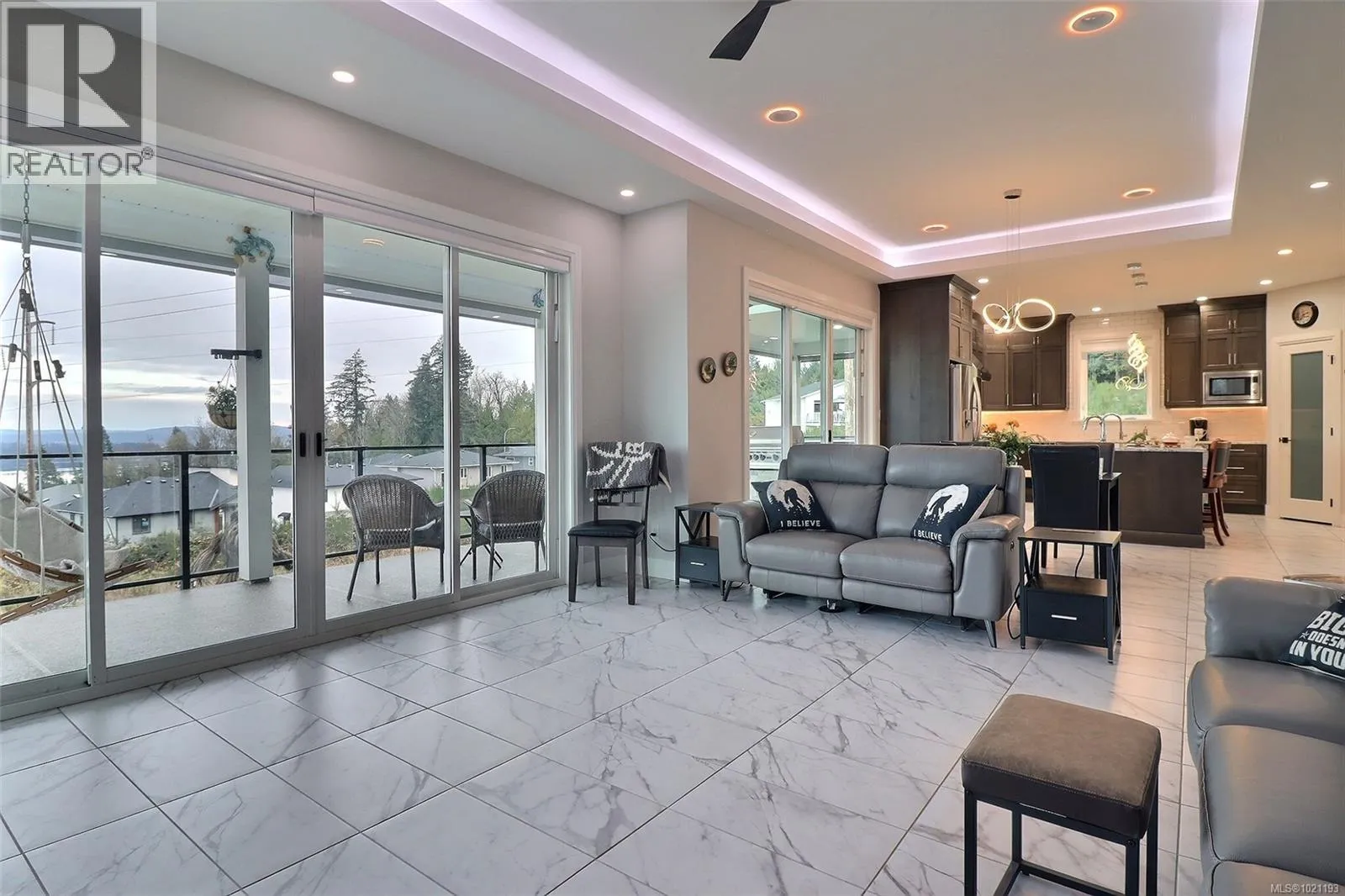 Visit REALTOR website for additional information. This stunning custom bungalow with a walkout basement offers 4 bedrooms, 4 bathrooms, a fully independent 1-bedroom legal suite, and beautiful ocean views. Both units are tenanted, and the primary home includes a monitored security and fire alarm system. The main floor features an open-concept layout with tile flooring, dimmable lighting, and large patio doors to a covered engineered deck with an outdoor granite kitchen, NG BBQ, hot tub, skylights, roller blinds, and ocean views. The chefâs kitchen includes quartz countertops, a large island, high-end appliances, and a 7.5' walk-in pantry.The primary suite offers a walk-in closet and spa-like ensuite with a curbless tiled shower and dual heads. Downstairs are two bedrooms, a full bath, and utility room. The legal suite includes its own entrance, laundry, granite counters, heat pump, and fenced yard. Fully landscaped with garden-tour features, fire pit, lit driveway, and high-efficiency heating and cooling. (id:27476)