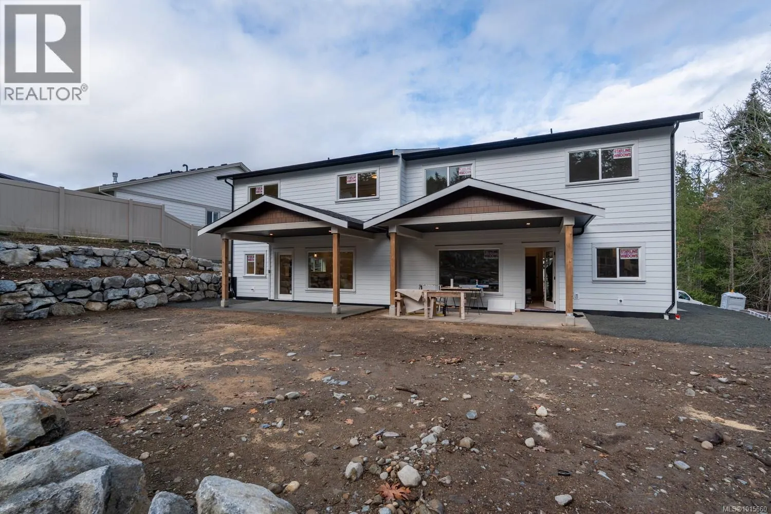 OPEN HOUSE Nov 30th from 11:00 to 1:00 pm. Stunning new half duplex at 672 & 668 Sanderson Rd in Ladysmith, offering 3 bedrooms and 3 baths with beautifully curated interior designâand no strata fees. The main floor features a bright, open-concept layout flowing from dining to kitchen to living space. The modern kitchen includes a large island with quartz countertops, stainless appliances, ample cabinetry, and a spacious pantry. The living area opens to a covered patio and a larger-than-typical private yard in a quiet, established neighbourhood. Upstairs, the impressive primary suite boasts a 7âx10â5â walk-in closet and dual-sink ensuite with in-floor heat. Two additional bedrooms, a full bath, laundry, & a versatile flex room complete the level. With peekaboo mountain views, quality finishes, extra garage storage, an attached garage, and a ductless heat pump, this home offers modern comfort for every buyer. Price plus GST. All measurements are approx, please verify if deemed important (id:27476)