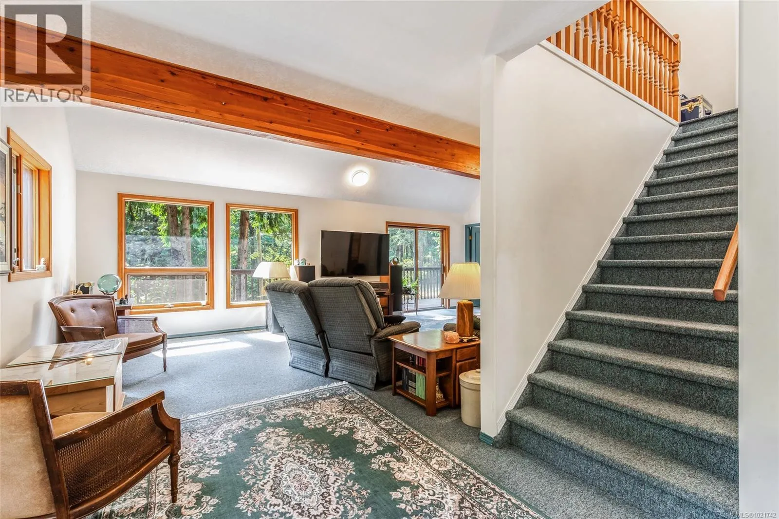 Nestled in the highly sought-after Woodley Ridge area, this immaculate West Coast-style home sits on a breathtaking 5-acre natural forested lot, offering a serene, private setting just 10 minutes from town, the airport, and golf, and only 20 minutes to the ferry. A truly rare opportunity for those seeking both luxury and nature. Boasting over 3,457 sq ft across three spacious levels, this beautifully maintained home features 5 bedrooms and 4 bathrooms, including a loft-style upper floor with soaring vaulted ceilings and 3 generously sized bedrooms. The lower level offers a bright one-bedroom layout with easy potential for a second bedroom and suite conversionâideal for guests, rental income, or extended family. Enjoy the warmth and charm of a beautiful fireplace, a newer roof, efficient heat pump, and extensive deck space perfect for outdoor living. Explore multiple tranquil spots on the property for camping, reflection, or soaking in natureâall while enjoying potential mountain and valley views with some clearing. A large detached shop with high overhead doors easily accommodates your RV, boat, or other toys. This is a one-of-a-kind property that blends comfort, functionality, and the beauty of untouched nature. Whether you're looking for your forever home, a family estate, or a peaceful escape, this gem delivers. (id:27476)