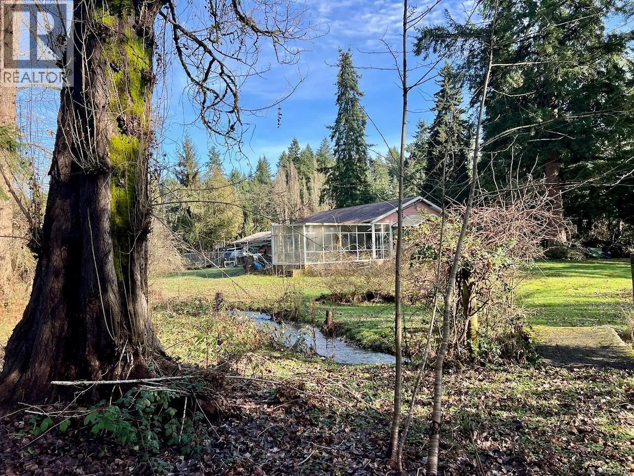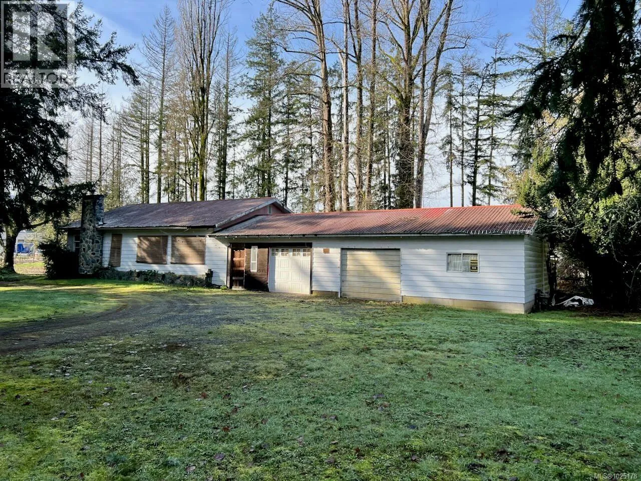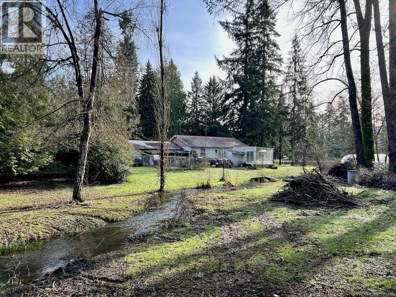 Situated on 2.3 acres, this property features a small watercourse running through the land and a two-bedroom home around 1300 ft2 with a two-car, approximately 1,000 FT2 garage. While the house and garage requires some TLC, it offers an excellent opportunity for buyers looking to build equity through their own improvements. Small shop on back of property around 150 ft2. The land is gated and fenced, backing onto a farm and conveniently located close to the airport, with easy highway access for commuting. The home, originally built in the 1950s, showcases a striking exterior rock chimney that serves as a strong architectural anchor.Renovations were started but not completed, The bathroom is not finished, leaving the finishing touches for the next owner. The property is on well and septic, and is zoned A1 Agricultural within the Agricultural Land Reserve, making it ideal for a small hobby farm. (id:27476)