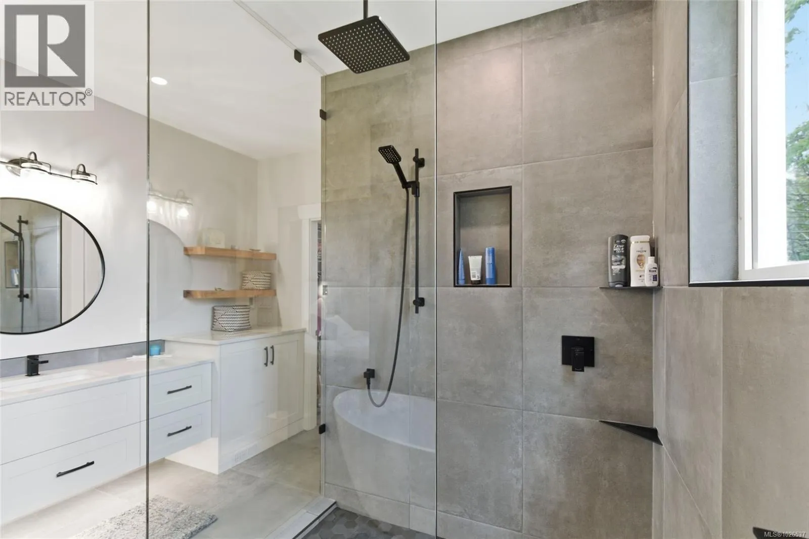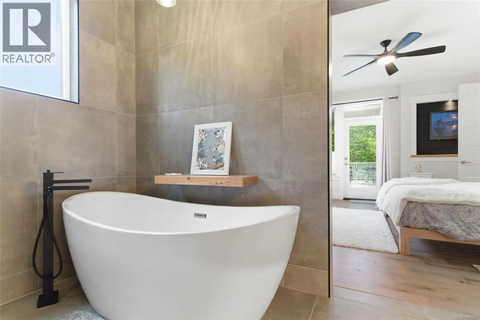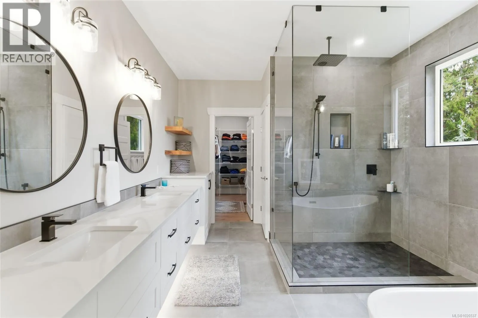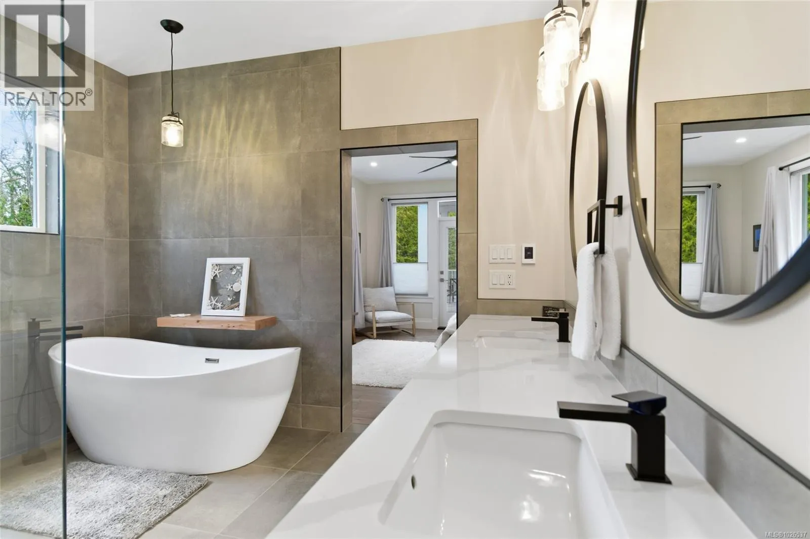 Architecturally Designed West Coast Home on 1 Acre â Vaulted Ceilings, Exposed Beams, Quality Finishes, Triple Garage & Legal Suite. Custom built by Gamble Homes, this 3,400+ sq ft residence sits on a private 1.04-acre property in sunny Saltair on a quiet dead-end street with nearby ocean access. Thoughtfully positioned to capture ocean glimpses, forest views, and abundant natural light, the home features high ceilings and expansive windows designed to maximize sunlight throughout. The open-concept main level showcases exposed Douglas fir beams, maple hardwood floors, and a natural gas fireplace with custom stonework. The kitchen offers quartz countertops, custom cabinetry, large island, walk-in pantry, and 6-burner gas range. The main-level primary suite includes ocean glimpses, walk-in closet, and spa-inspired ensuite with heated tile floors, freestanding tub, walk-in shower, and double vanity. Spacious laundry/mud room adds everyday functionality. Upstairs are two additional bedrooms and a full bathroom. Quality finishes include custom 8-ft doors, detailed trim, heated tile floors, and an efficient 3-zone heat pump system. A self-contained 1-bedroom legal suite (approx. 550 sq ft) provides excellent flexibility for extended family or rental income, for a total of 4 bedrooms and 4 bathrooms overall. Outdoor features include covered and open decks, tiered rock-lined landscaping, exposed aggregate entry, and natural stone accents. The 1,170 sq ft triple-bay garage offers an over-height bay and storage room. RV parking with full hookup, EV charger, and heated crawl space complete this exceptional custom home. Full information package, video & virtual tour are available. (id:27476)