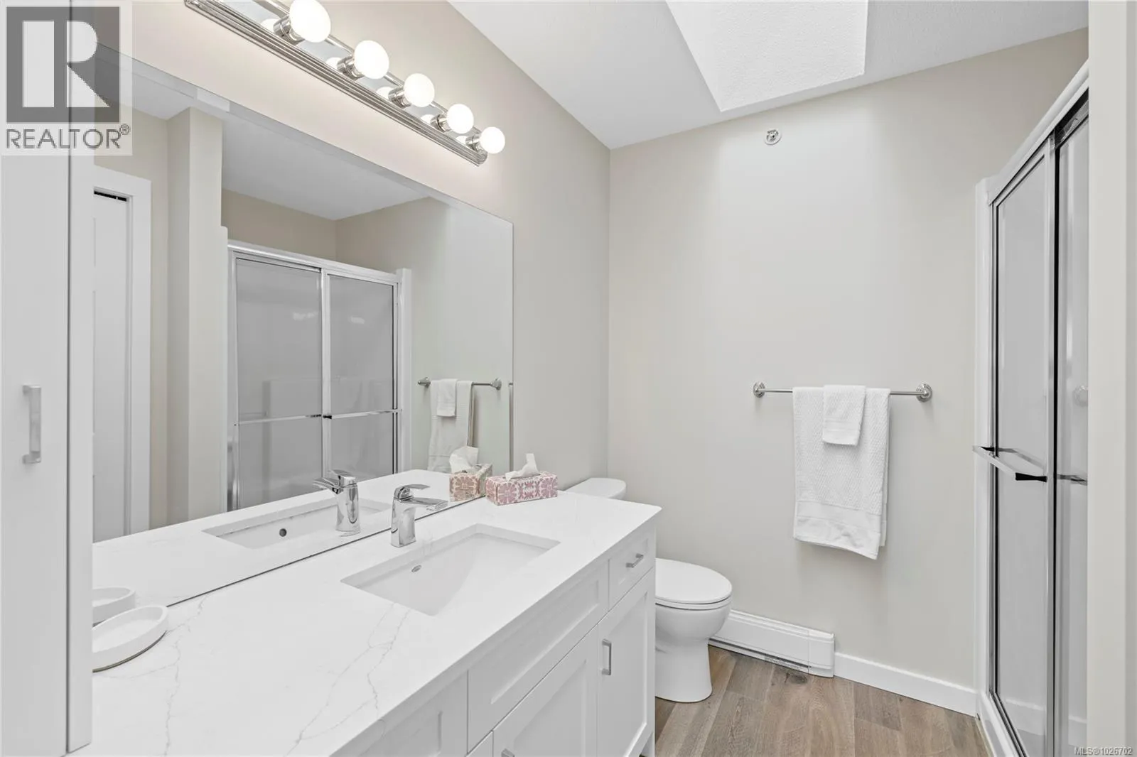 Welcome to 7-332 Belaire Street, a beautifully updated 2-bedroom, 2-bath patio home in the highly sought-after Belwood Estates in Ladysmith. Built in 2001 and meticulously maintained, this home offers tasteful updates throughout. The bright, open layout is enhanced by three skylights that fill the space with natural light, while the spacious living room features a cozy gas fireplace. The modern kitchen shines with quartz countertops, updated cabinetry, and generous prep and storage. The primary suite includes a lovely ensuite and ample closet space, and the second bedroom is ideal for guests or a home office. Step outside to your private patio and enjoy the peace and solitude. Belwood Estates is known for its quiet setting and pride of ownership, with onsite RV parking included in the strata fees. All of this is just minutes from downtown Ladysmith, Coronation Mall, the Rec Centre, walking trails, and Transfer Beach. Measurements are approximate; please verify if important. (id:27476)