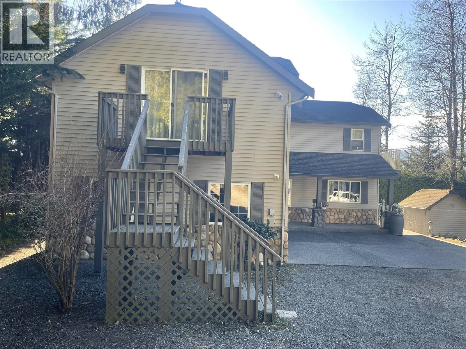 Experience the ultimate walk-on oceanfront lifestyle in Ladysmith on beautiful Vancouver Island. Tucked behind a private gate and reached by a picturesque tree-lined driveway, this stunning 3 bed, 3 bath West Coast home sits at the waterâs edge with breathtaking ocean views. The bright open-concept kitchen, dining, and living area is perfect for entertaining, highlighted by a cozy double-sided fireplace and large windows framing the coastal scenery. The serene primary suite features a walk-in closet and spa-inspired ensuite with a freestanding soaking tub. A den and laundry complete the main floor. Book your private showing today. Upstairs offers heated floors, two spacious bedrooms, a full bath, and a large bonus room above the double garage. Step outside to your private retreat with walk-on waterfront, licensed dock with historic foreshore rights for kayaking or small boats, plus an in-ground pool and hot tubâa rare blend of coastal luxury and recreation. (id:27476)