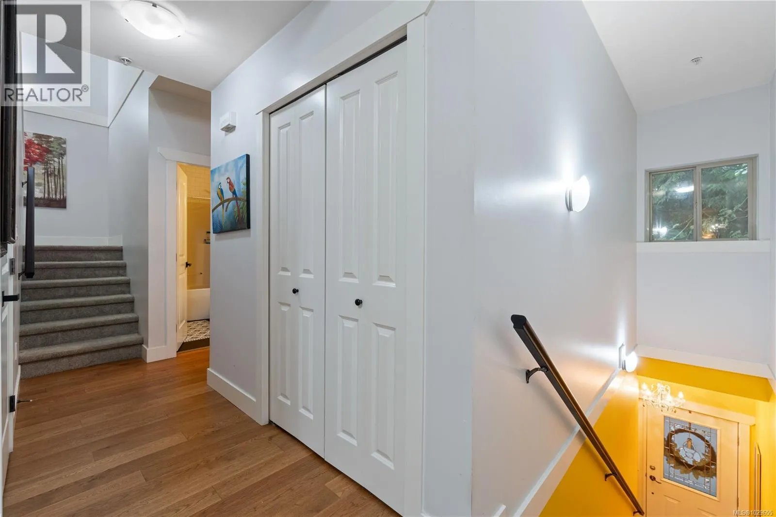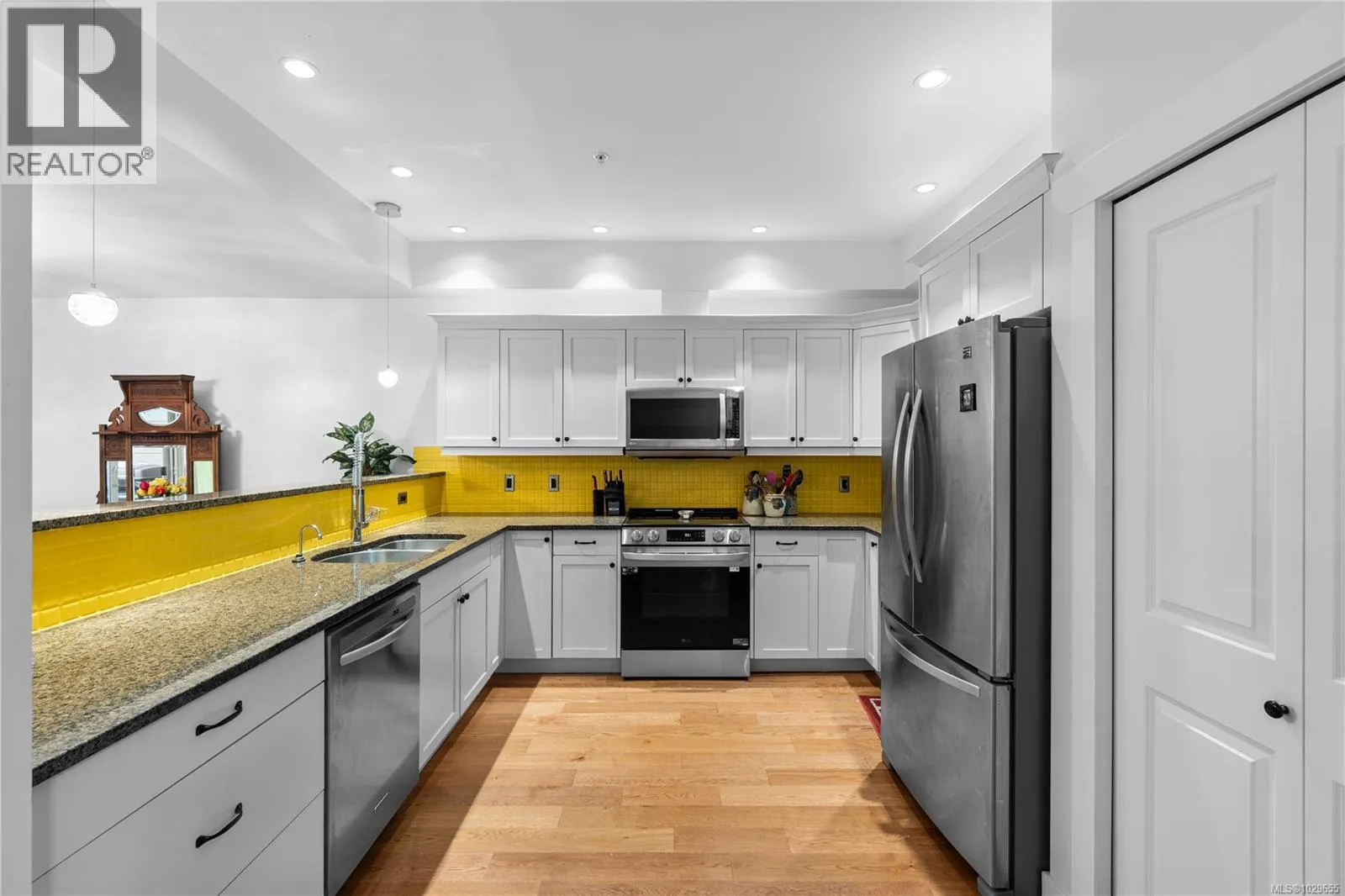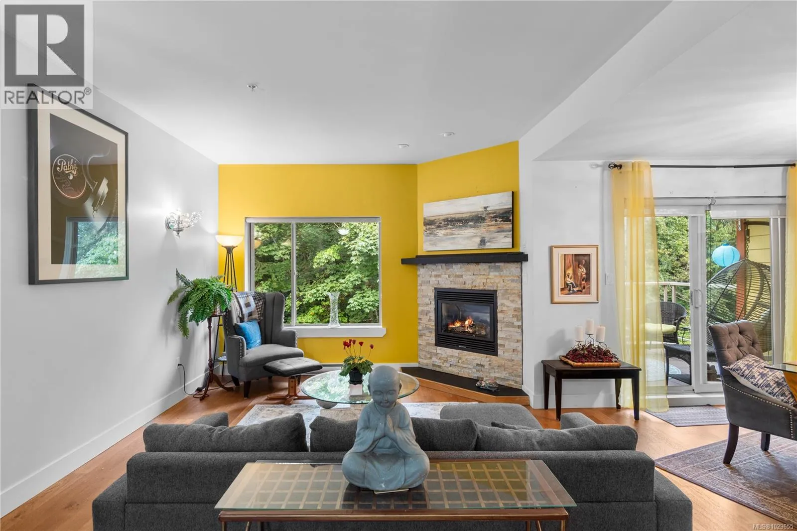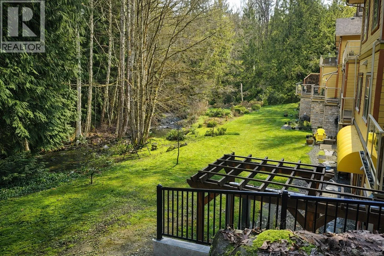 This beautiful 2 bed 2 bath townhome in north Ladysmith sits in a private and peaceful setting, surrounded by trees and backing onto Rocky Creek. 9ft ceilings and natural wood floors throughout the open concept main level create a sense of space and light. The modern kitchen is big enough for multiple cooks and includes a sit-up counter and space for a bar fridge. A gas fireplace in the living room invites you to settle in for cozy evenings in the winter, while the spacious dining room leads out to the deck for summer entertaining. The 550 sqft primary bedroom is expansive yet comfortable, with its own gas fireplace and another private deck for relaxing and listening to the creek babble by. The ensuite is huge and plumbing-ready for a luxurious soaker tub. The complex includes a fully equipped gym, indoor pool and hot tub, as well as bike/kayak storage and secure underground parking. Enjoy tranquil West Coast living, only minutes away from shops, the marina, and Transfer Beach.All data and measurements are approximate, please verify. (id:27476)