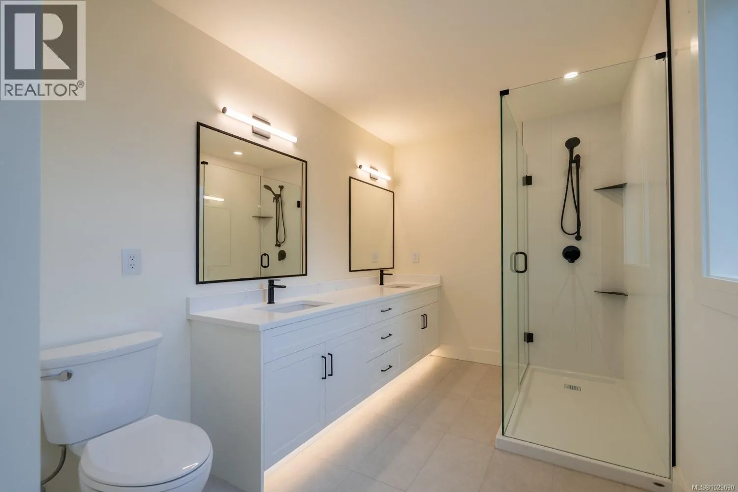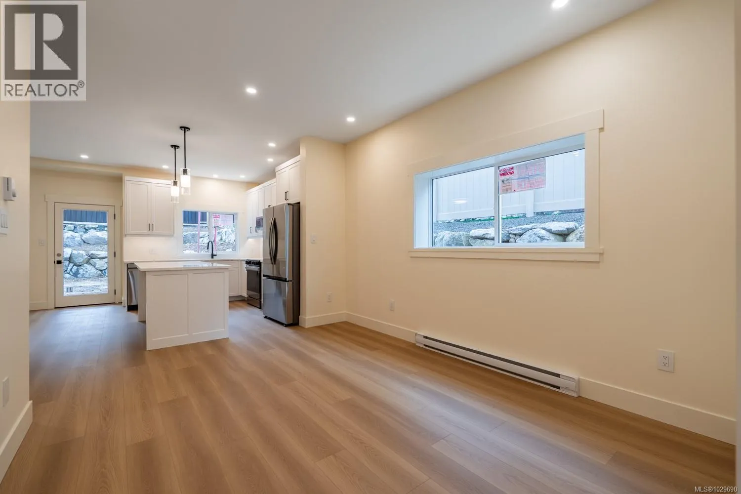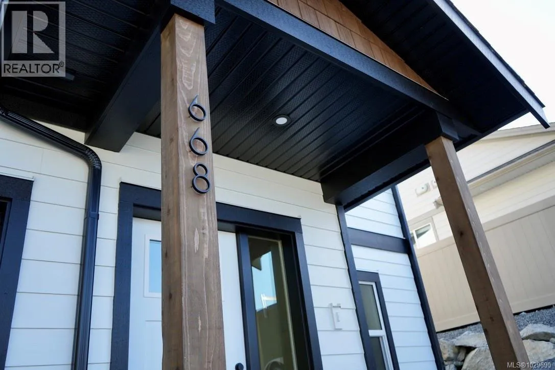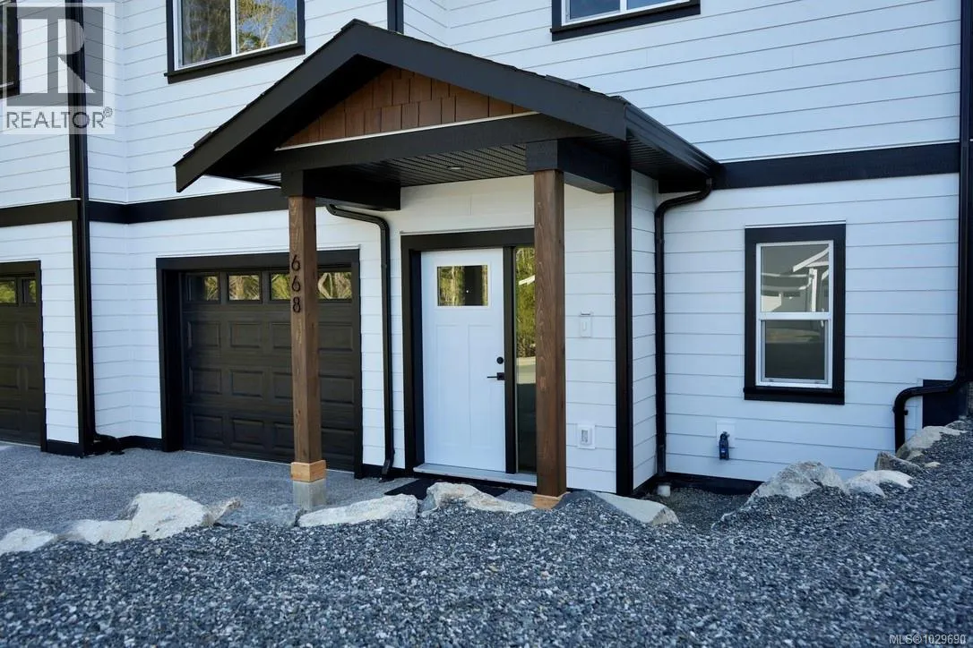 Stunning new half duplex at 668 Sanderson Rd in Ladysmith, offering 3 bedrooms and 3 baths with beautifully curated interior designâand no strata fees. The main floor features a bright, open-concept layout flowing from dining to kitchen to living space. The modern kitchen includes a large island with quartz countertops, stainless appliances, ample cabinetry, and a spacious pantry. The living area opens to a covered patio and a larger-than-typical private yard in a quiet, established neighbourhood. Upstairs, the impressive primary suite boasts a 7âx10â5â walk-in closet and dual-sink ensuite with in-floor heat. Two additional bedrooms, a full bath, laundry, & a versatile flex room complete the level. With peekaboo mountain views, quality finishes, extra garage storage, an attached garage, and a ductless heat pump, this home offers modern comfort for every buyer. Price plus GST. All measurements are approx, please verify if deemed important (id:27476)
