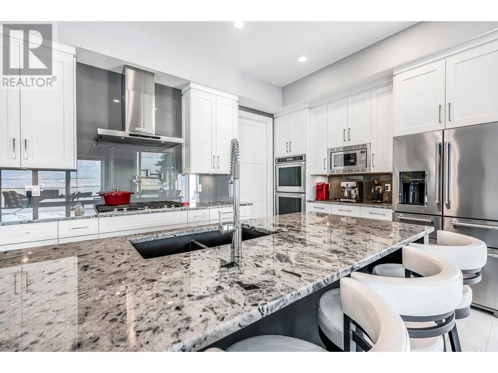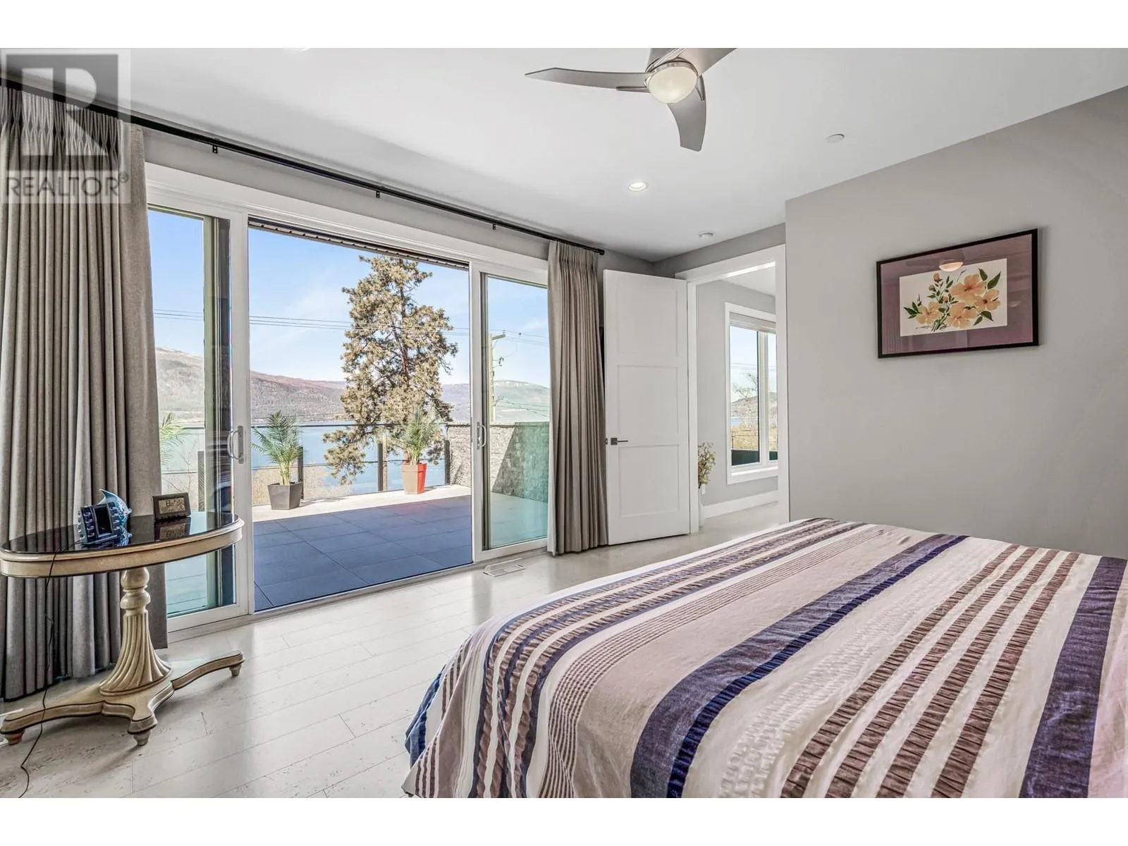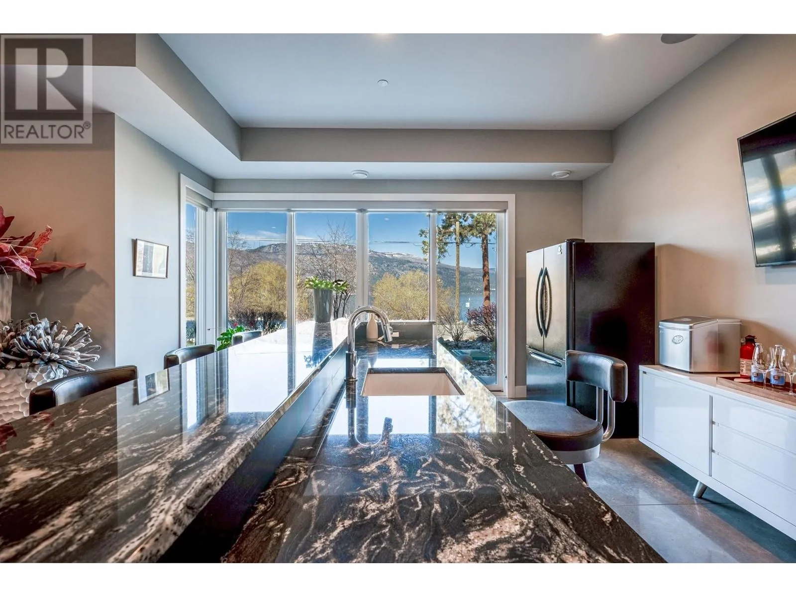 Steps from Lake Okanagan, this custom-built masterpiece blends luxury and lifestyle in one of the most sought-after waterfront-adjacent locations. Immaculate and filled with light, the home showcases an open suspended staircase with a mirrored backdrop and a private elevator that makes every level easily accessible. The kitchen is a chefâs dream with exquisite granite counters, high-end appliances, and a walk-in pantry that keeps everything tucked neatly out of sight. Enjoy panoramic lake views from nearly every room, with decks and patios on each level inviting you to unwind, entertain, or simply soak up the stunning scenery. The primary suite is a true retreat featuring a massive walk-in closet with secondary laundry and a spa-like ensuite. With four bedrooms and three full baths, thereâs space and style for everyone. The lower level is an entertainerâs haven with a sleek bar, a spacious family room, and walk-out access to an outdoor shower; perfect after enjoying the swimming, paddle boarding or boating at the beach just steps away. A private buoy awaits to tie up your boat, and you're mere steps from the serene lakeside linear park that winds along Okanagan Centreâs beautiful shoreline. Whether you're hosting guests or relaxing in peace, this home offers a rare blend of thoughtful design and unmatched Okanagan beauty. Walk to the coffee shop, museum and play ground, The boat launch is just minutes away - and shopping is a short drive for all your needs. Okanagan Life! (id:27476)