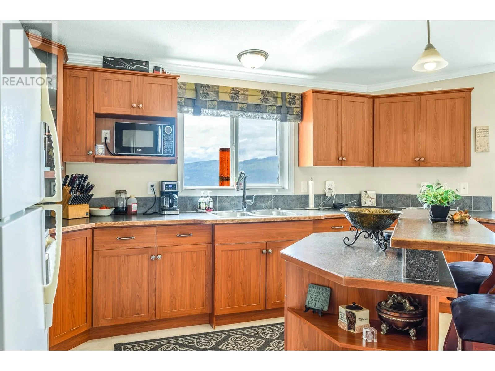*A Rare Opportunity in One of the Okanaganâs Most Coveted Locations* Set on 9.62 breathtaking acres, this lakeview property is a rare gem offering unmatched potential in one of the most desirable areas of the Central & North Okanagan. Located just 15 km's to Lake Country, 5 km's to Predator Ridge Golf Resort and 20 km's to Vernon & only minutes to award-winning wineries & boat launches - this is truly a lifestyle investment. The welcoming 2-bedroom, 2-bathroom home combines comfort & sustainability. Designed for massive efficiency & cost-effective living, the home features a modern geothermal heating & cooling system, well water & a septic system - providing significant savings and making affordable acreage living a reality. Enjoy outdoor living at its finest with both north & south-facing covered patios, a peaceful gazebo & multiple RV hook-ups for guests. The expansive 80x40 shop is a standout feature with polished concrete floors, 220V power, 18' ceilings, a 500,000 BTU propane furnace, 22' x 10' office & an adjoining 81' x 16' lean-to for additional covered parking or RV storage. This acreage also includes: C-can storage & topsoil. There are no size restrictions for building a second residence, adding exceptional value in a location where land is truly priceless. Whether youâre seeking privacy, a fully equipped workshop or unforgettable lake and mountain views, this property has it all.*Contact your Agent or the Listing Agent today for more info or to schedule a viewing.* (id:27476)