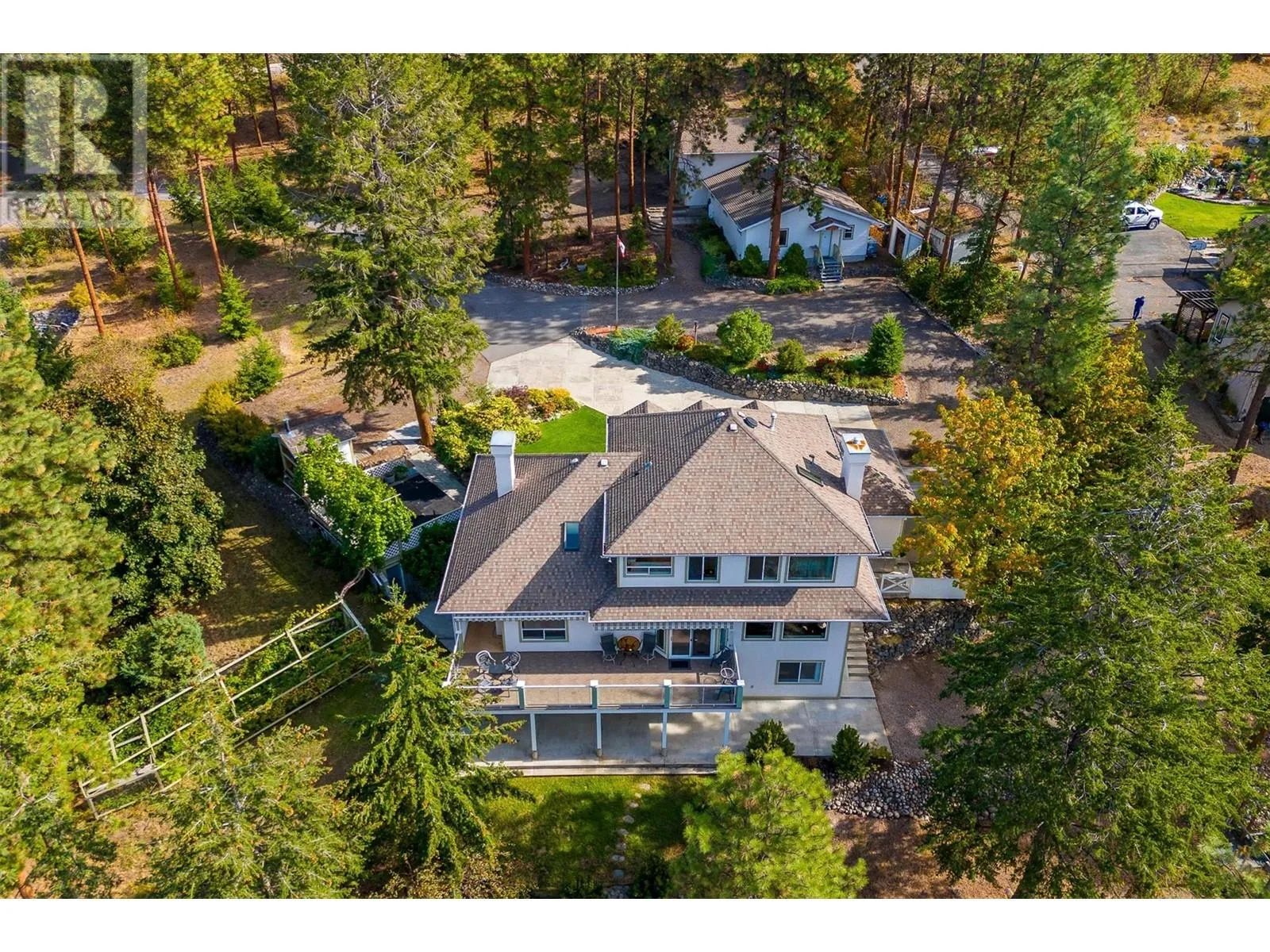 STUNNING 2.48-ACRE LAKE VIEW HOME! Experience your DREAM LIFESTYLE in the heart of wine country with this meticulously maintained home, featuring BREATHTAKING VIEWS of Okanagan Lake. This magnificent property features custom craftsmanship throughout and a welcoming, spacious layout, perfect for entertaining. With 5 bedrooms and 4 bathrooms, thereâs ample space to enjoy privacy and comfort. The basement includes 2 bedrooms, offering great opportunities for an in-law suite, nannyâs quarters, or a mortgage helper with rental income from your legal suite. This home is a wine enthusiasts dream, featuring a dedicated wine-making room and an address on the famous Okanagan wine trail, neighboring Grey Monk Winery. The beautifully landscaped grounds include vegetable gardens, grape vines, berry bushes, and a fruitful Elderberry tree, creating an outdoor oasis. Enjoy stunning lake views, wildlife, and BBQs from your three-sided wraparound balcony, maximizing your outdoor living space. Safely store your boat and RV in the spacious 2-bay shop, which includes a paint room for restoration projects. The large, wood-heated workshop is equipped with a dust collector, along with an office and bathroomâideal for starting your home business. Just 10 minutes from Kelowna Airport, 4 minutes to the boat launch, this property offers the ultimate in convenience and recreational opportunities. Elevate your lifestyle with this spectacular home combining comfort and an UNBEATABLE LOCATION! (id:27476)