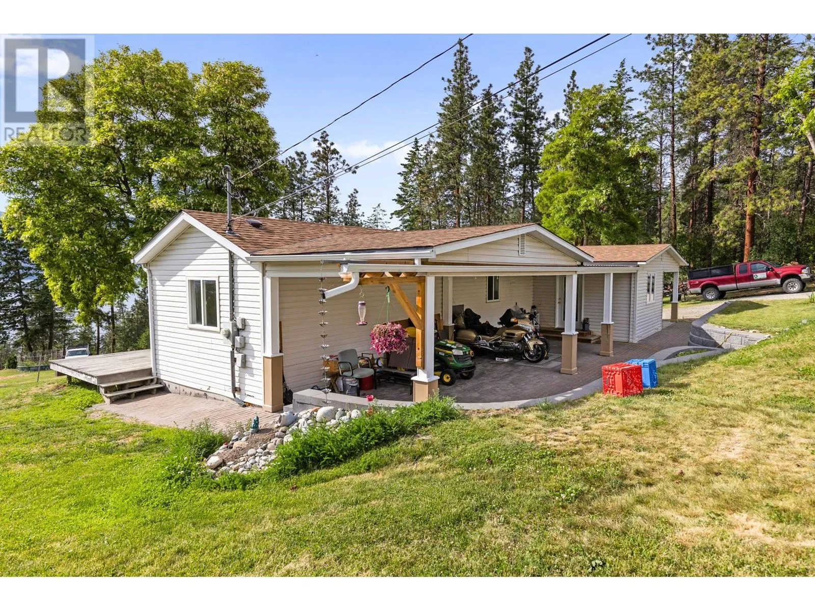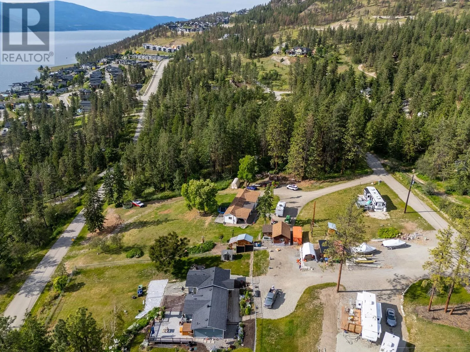 1.1 acre property in the Okanagan Centre area of Lake Country! The property is outfitted with a 980 sq.ft. 2 bedroom, 1 bathroom residence with a large covered patio space to enjoy the lake-views of Okanagan Lake ahead.This could be the perfect opportunity to potentially build on a large 1+ acre lot while having a spot to stay while you build your home. Location is key here, with Stubbs being on a quiet no-thru road, and being located just to the South of the prestigious Lakestone development. You are located just minutes from all of Lake Country's amenities and a quick drive to downtown Kelowna via Glenmore Road, but are still situated on an absolutely private lot in a rural area. There is also frontage off of Finch Road below, leading to a rare opportunity to potentially choose your desired access point. On septic and city water! (id:27476)