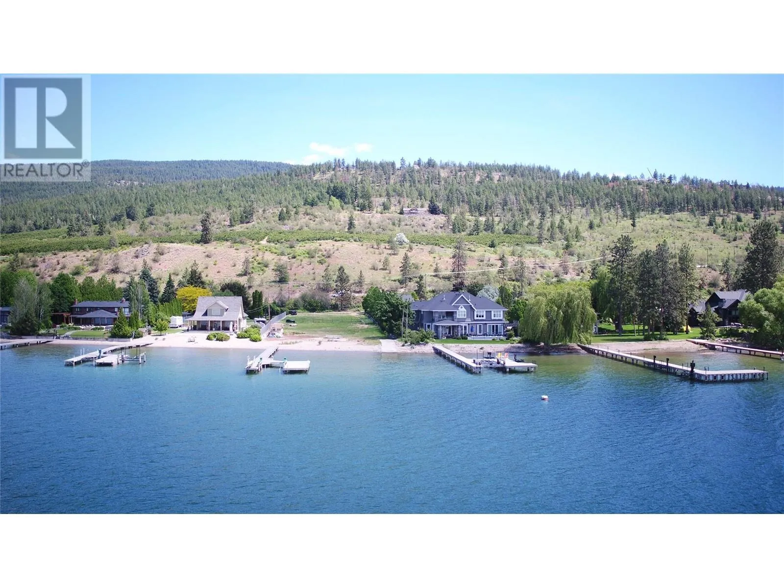 Introducing Whisky Cove, an unparalleled gem nestled in the coveted landscape of the Okanagan region. This exceptional lakefront property boasts 1.18 acres of pristine, flat land with a remarkable 100 feet of private beachfront on the stunning Okanagan Lake. Highlighting its exclusivity is a rare 140' cement boat launch alongside a 155' dock featuring an extra wide landing area and a 10,000 lb hydraulic boat lift. Please note, due to updated regulations only allowing one license, you must choose to license either the dock or the boat launch. Utilities such as septic, power, and water licenses for domestic and irrigation purposes are readily available. The property also features a convenient utility shed housing the panel box for electricity, as well as a pump and pressure system designed for lake intake water. The scenic drive to Whisky Cove through the picturesque Vineyards offers a breathtaking experience. Nearby, renowned wineries including 50th Parallel, O'Rourke's Peek Cellars, Ex Nihilo Vineyards, and Arrowleaf Cellars await your exploration. With just an 18-minute drive to Lake Country for your shopping needs, and convenient access to attractions like Kelowna International Airport (19 minutes away), Predator Ridge Golf (14 minutes away), and Sparkling Hills Resort, this location seamlessly combines luxury and convenience. For further details and a personal tour of this exceptional property, kindly contact the listing agent.. (id:27476)