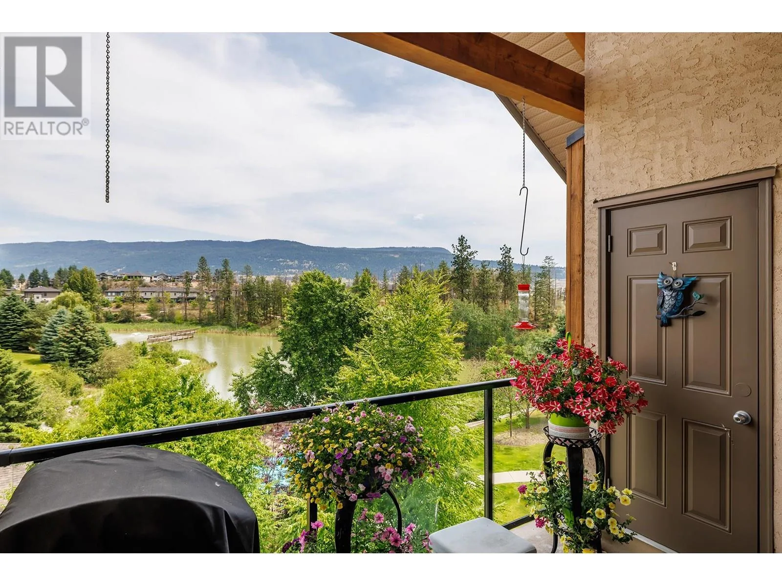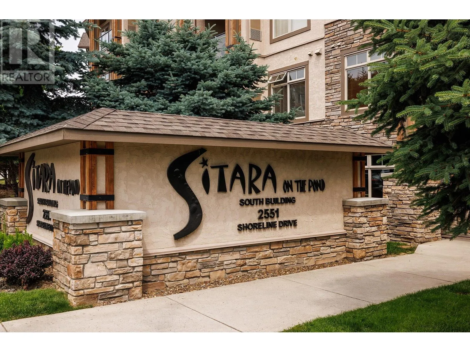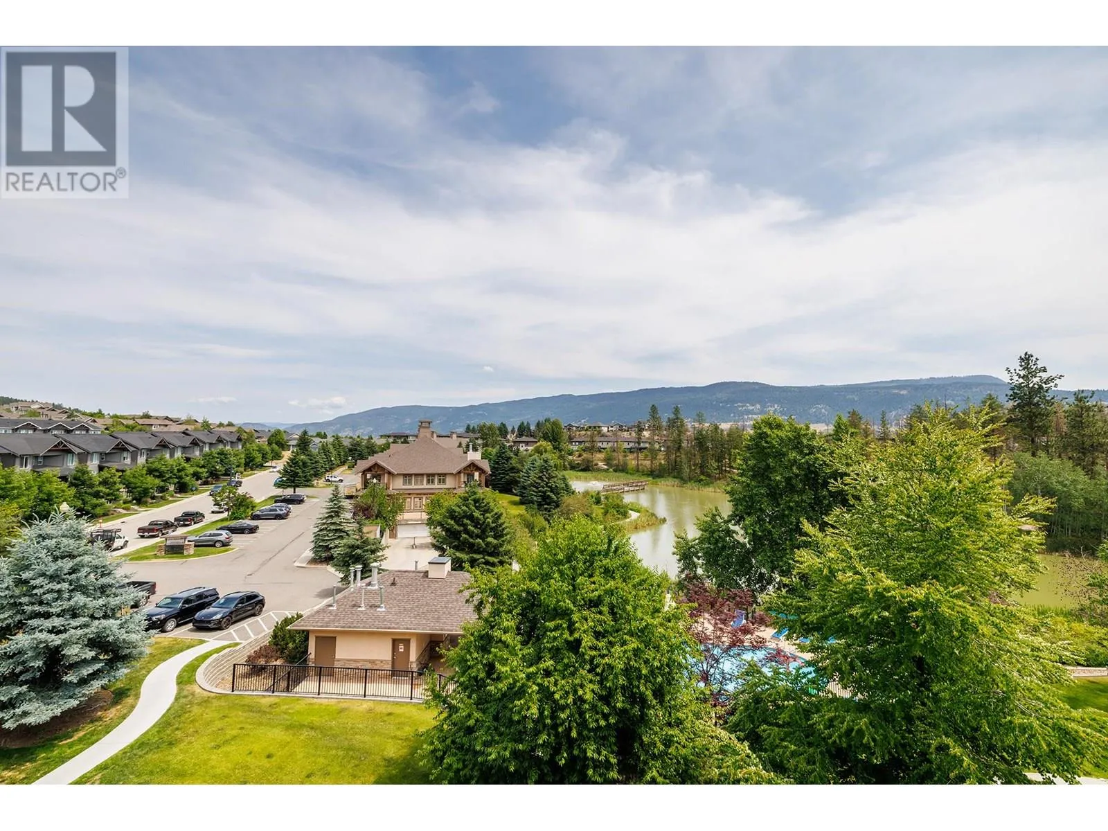 Contemporary and timeless design at Sitara on the Pond's top floor backing onto Pollards Pond. This 2 bed, 2 bath Lake Country condo boasts a cool neutral palette, large windows framing picturesque pond, pool, and mountain views. Featuring newer stainless steel appliances, pantry, cozy gas fireplace, newer vinyl plank flooring and private patio. The primary bedroom features an ensuite and walk-in closet & ample storage. Central heating and cooling provide year-round comfort. Take advantage of amenities like a pool, hot tub, pool table, and relax in the lounge with library and fireplace. Explore nearby walking, hiking, and biking trails while relishing the rural feel with urban conveniences close by. Underground parking, bike storage, storage unit, in-suite laundry and pet-friendly atmosphere provides the perfect blend of serenity and convenience. (id:27476)