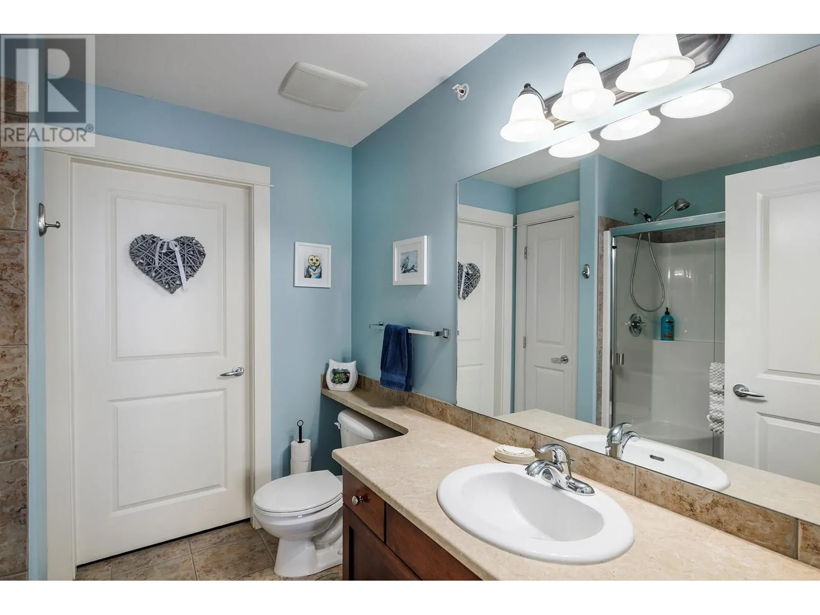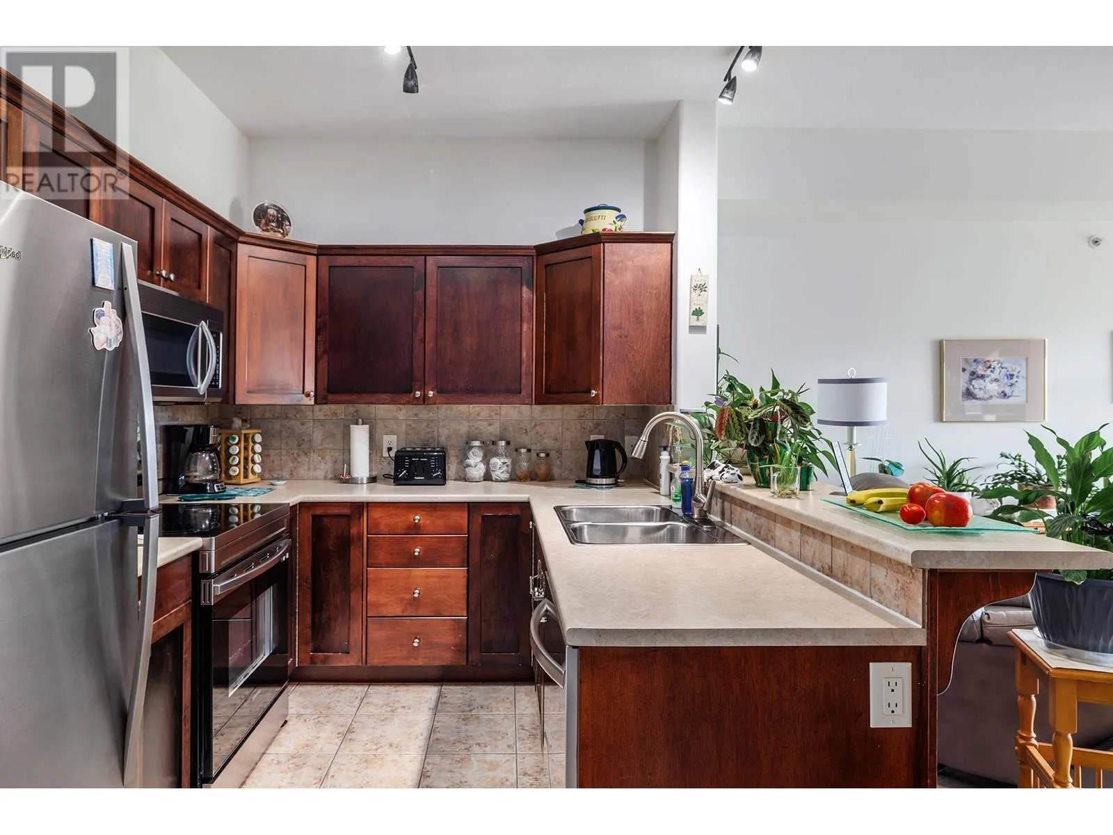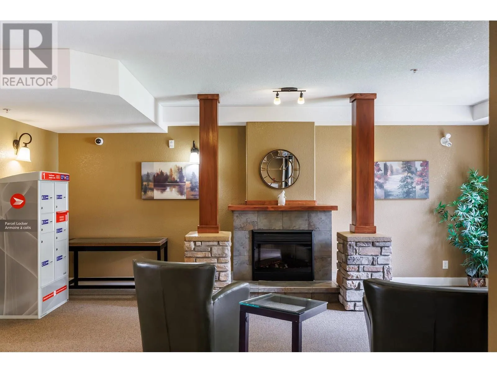 Contemporary and timeless design at Sitara on the Pond's top floor backing onto Pollards Pond. This 2 bed, 2 bath Lake Country condo boasts a cool neutral palette, large windows framing picturesque pond, pool, and mountain views. Featuring newer stainless steel appliances, pantry, cozy gas fireplace, newer vinyl plank flooring and private patio. The primary bedroom features an ensuite and walk-in closet & ample storage. Central heating and cooling provide year-round comfort. Take advantage of amenities like a pool, hot tub, pool table, and relax in the lounge with library and fireplace. Explore nearby walking, hiking, and biking trails while relishing the rural feel with urban conveniences close by. Underground parking, bike storage, storage unit, in-suite laundry and pet-friendly atmosphere provides the perfect blend of serenity and convenience. (id:27476)