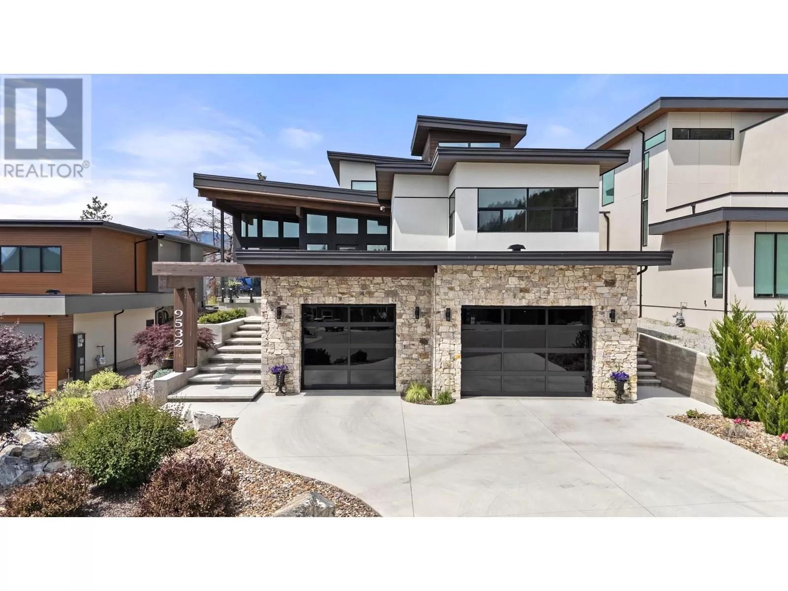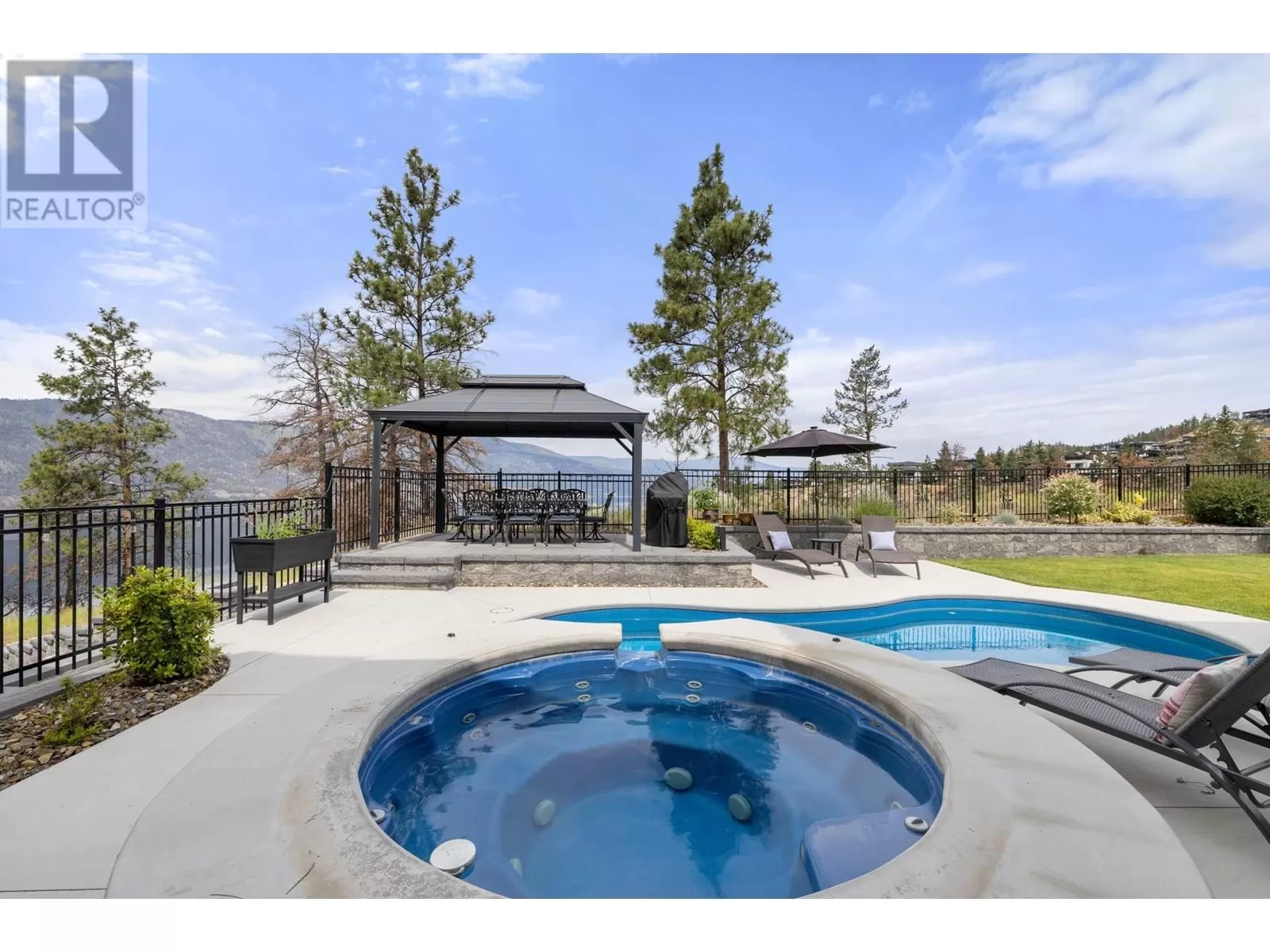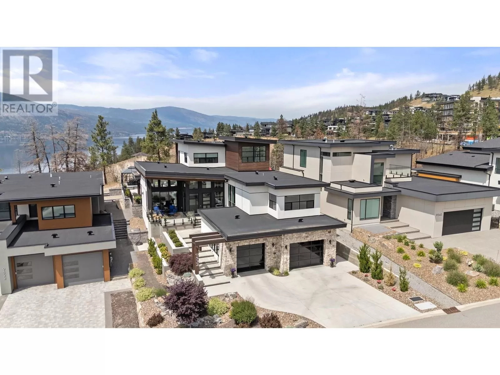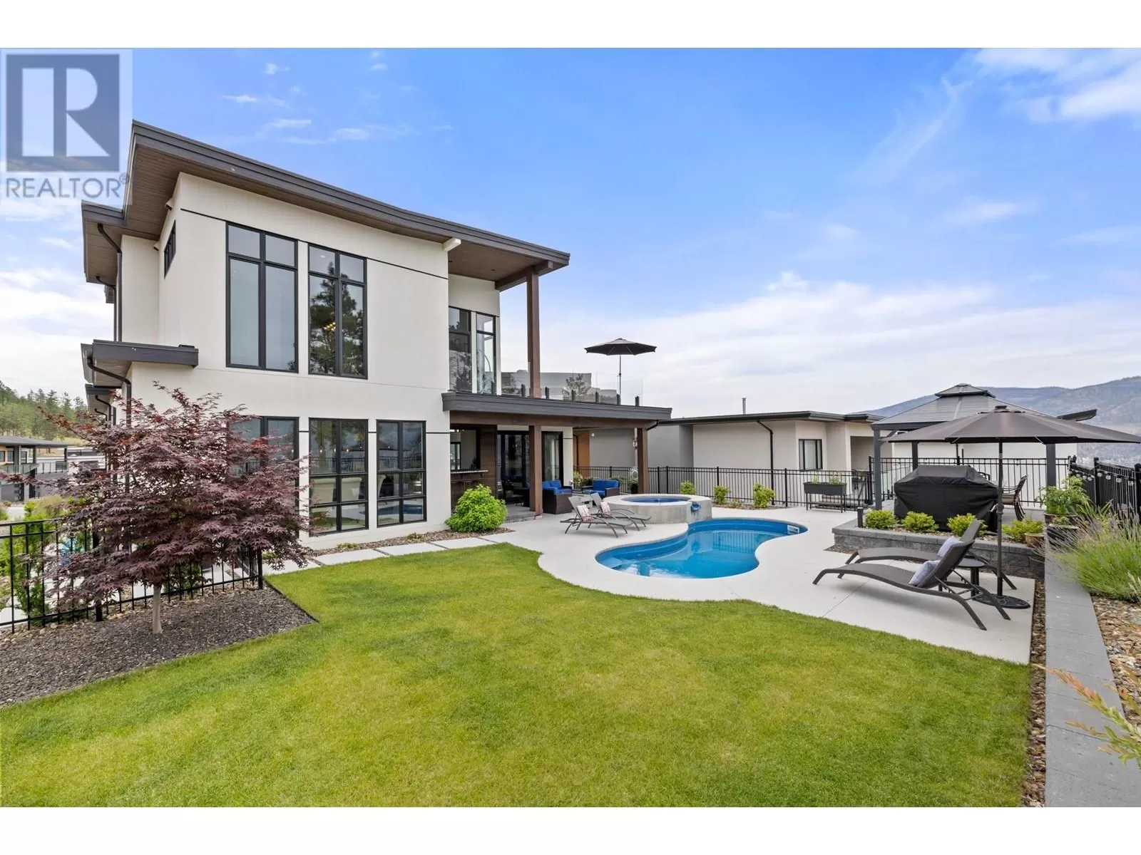 This exceptional residence in the coveted Lakestone community is an architectural masterpiece crafted for luxurious living and entertaining, showcasing breathtaking front and back views. Step into a grand foyer with soaring ceilings, rich hardwood floors, and dramatic wood staircases with sleek glass railings. Sunlight fills every space through walls of windows. The upper-level great room features a modern fireplace and opens onto a covered deck with sweeping lake and mountain views. The gourmet kitchen impresses with a massive island, gas range, custom hood, dual sinks, breakfast bar, wine bar, coffee station with sink, and walk-in pantry. A sliding pass-through connects to the outdoor dining area for effortless hosting. The backyard is a private retreat with a heated pool, hot tub, sun lounges, gazebo dining area, and covered patio for year-round enjoyment. The elegant primary suite offers a private view deck, spacious walk-in closet, and a spa-inspired ensuite with double vanity, rain shower, and soaking tub with stunning vistas. The lower level includes a large rec room, gym, and full bath. The oversized garage provides workshop space, one-way glass doors, and abundant light. Enjoy Lakestoneâs resort-style amenities include pools, hot tubs, fitness centres, sport courts, and lake access all just just minutes from Kelowna, UBCO, and the airport. (id:27476)
