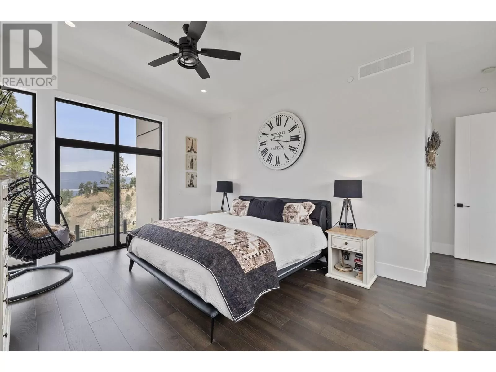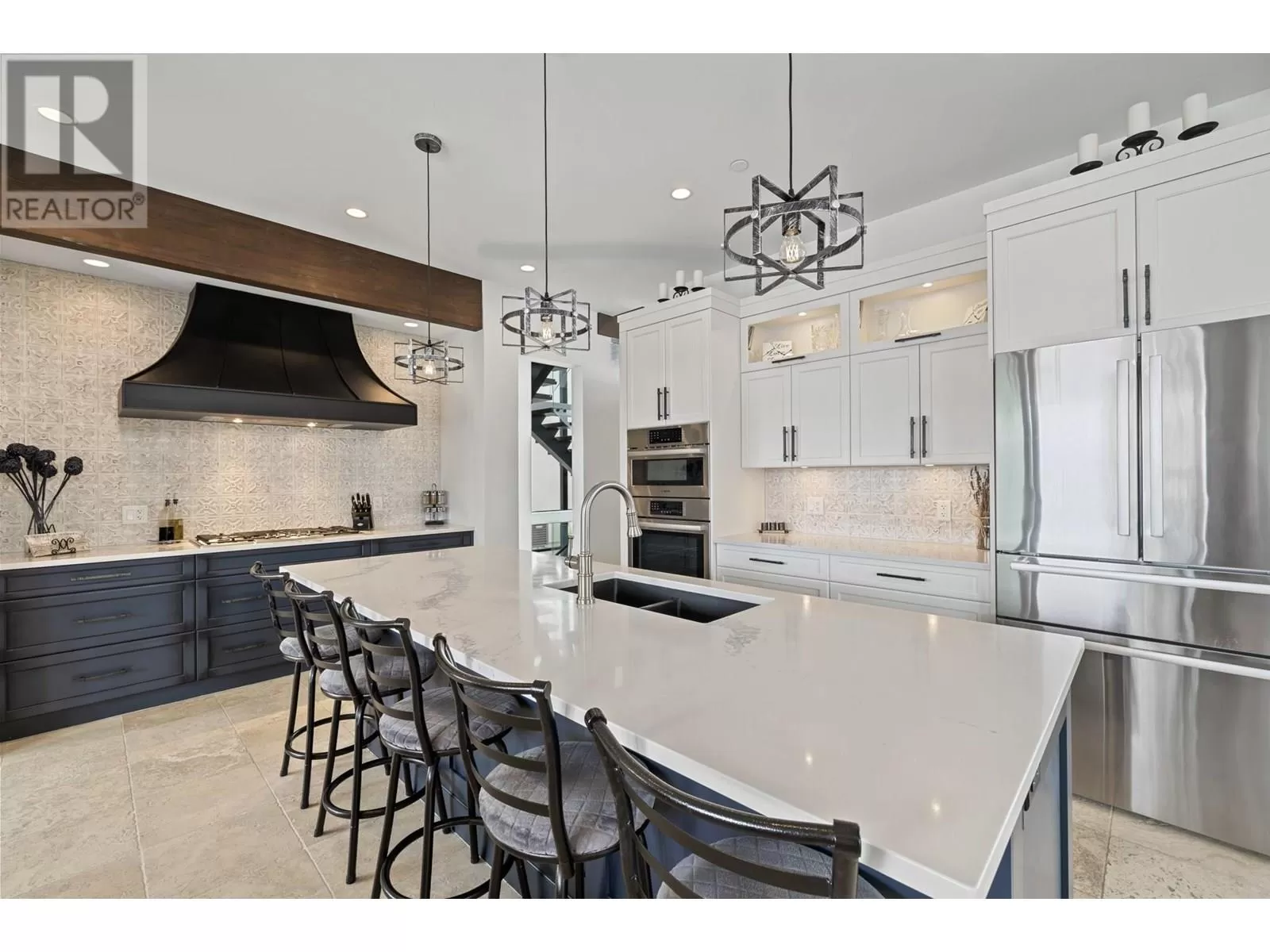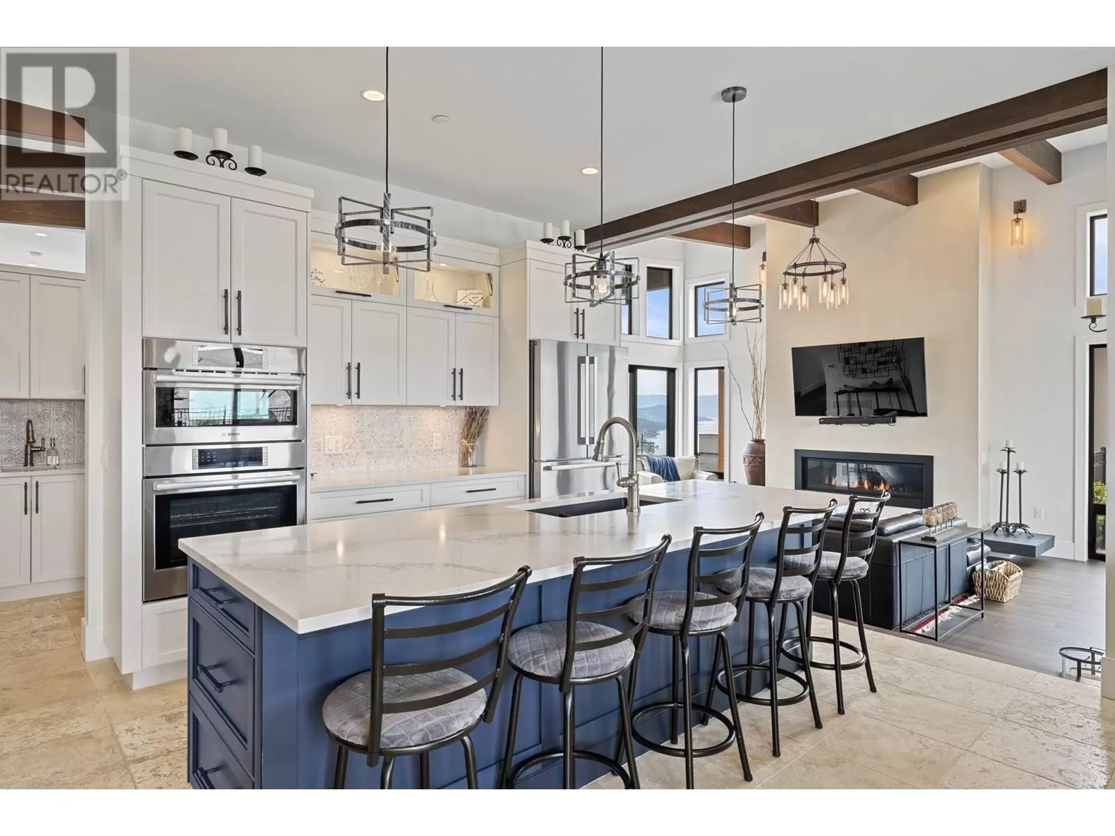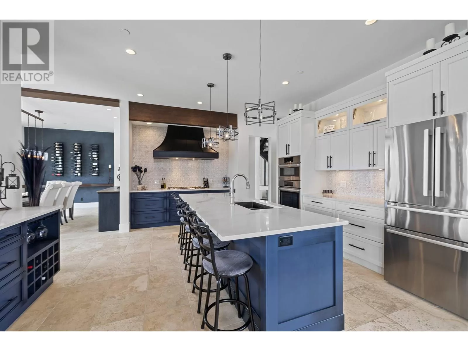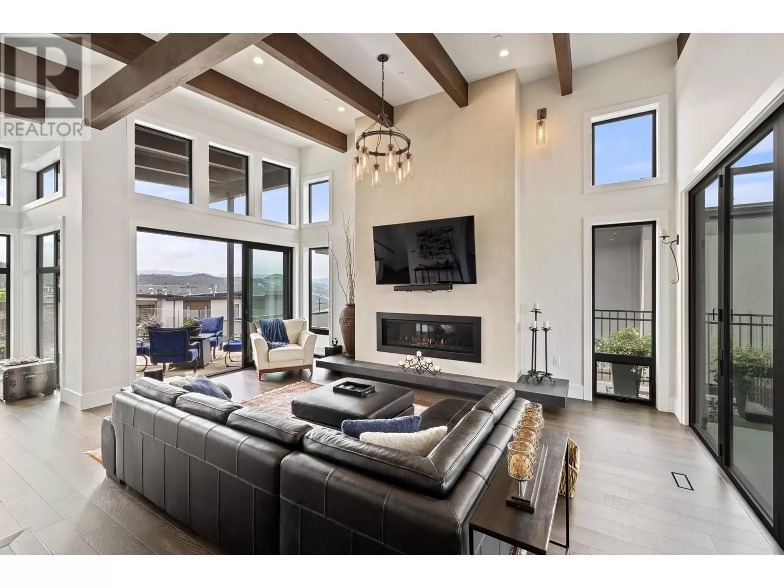 This exceptional residence in the coveted Lakestone community is an architectural masterpiece crafted for luxurious living and entertaining, showcasing breathtaking front and back views. Step into a grand foyer with soaring ceilings, rich hardwood floors, and dramatic wood staircases with sleek glass railings. Sunlight fills every space through walls of windows. The upper-level great room features a modern fireplace and opens onto a covered deck with sweeping lake and mountain views. The gourmet kitchen impresses with a massive island, gas range, custom hood, dual sinks, breakfast bar, wine bar, coffee station with sink, and walk-in pantry. A sliding pass-through connects to the outdoor dining area for effortless hosting. The backyard is a private retreat with a heated pool, hot tub, sun lounges, gazebo dining area, and covered patio for year-round enjoyment. The elegant primary suite offers a private view deck, spacious walk-in closet, and a spa-inspired ensuite with double vanity, rain shower, and soaking tub with stunning vistas. The lower level includes a large rec room, gym, and full bath. The oversized garage provides workshop space, one-way glass doors, and abundant light. Enjoy Lakestoneâs resort-style amenities include pools, hot tubs, fitness centres, sport courts, and lake access all just just minutes from Kelowna, UBCO, and the airport. (id:27476)