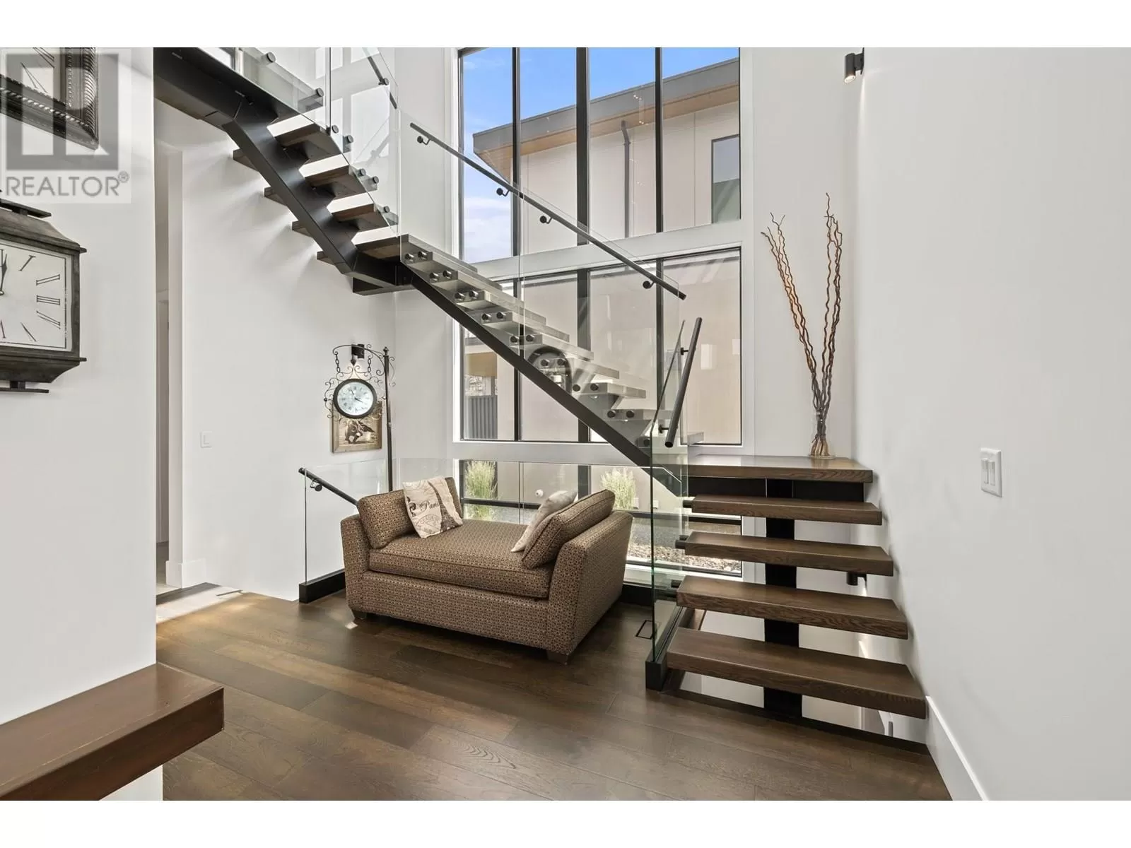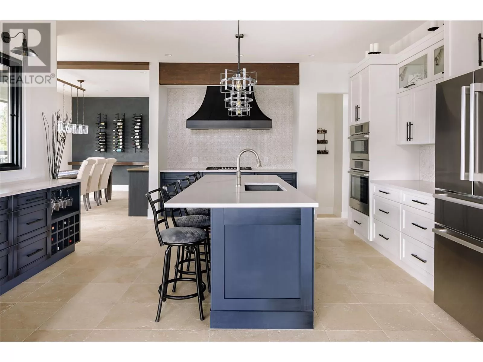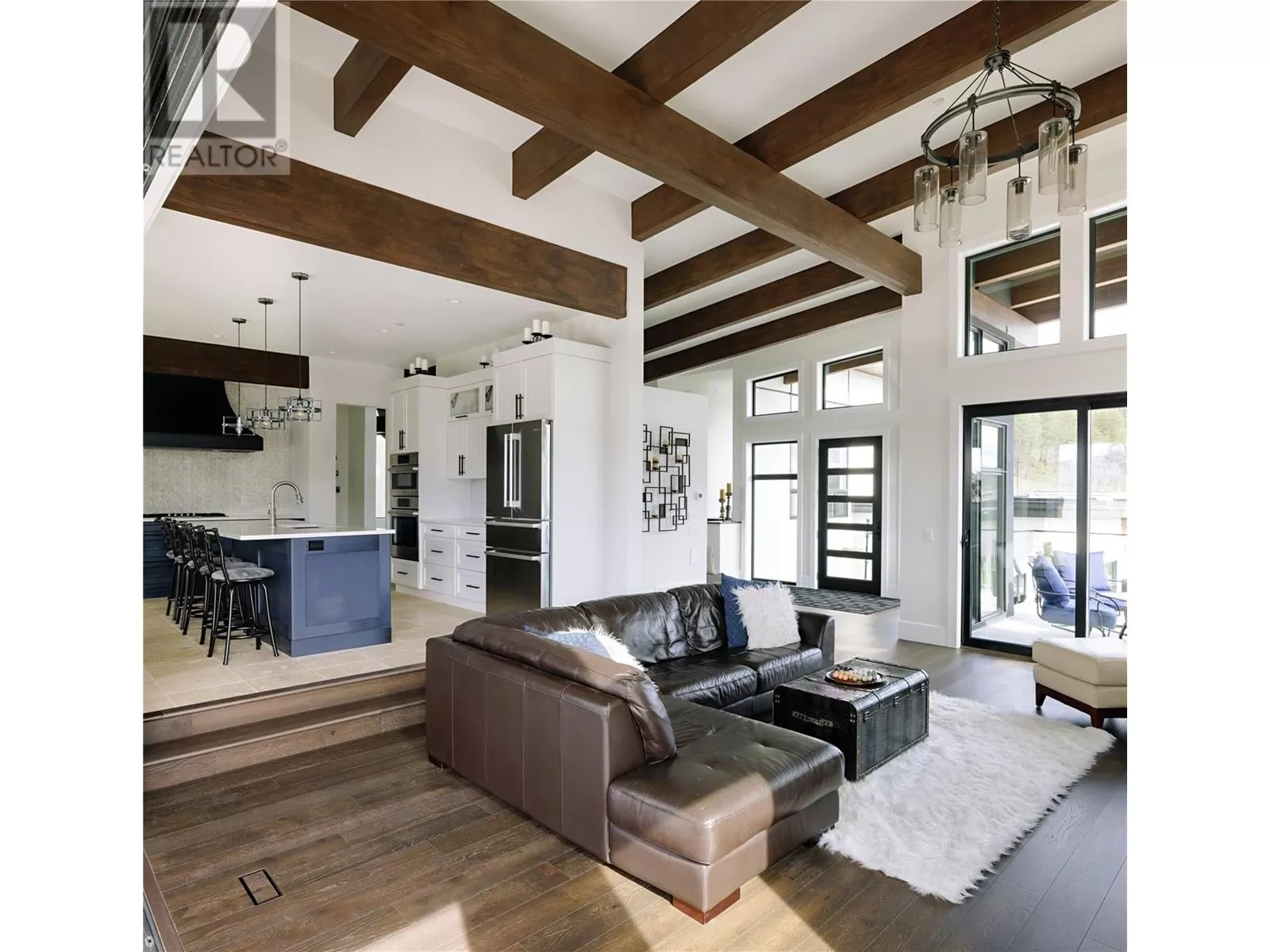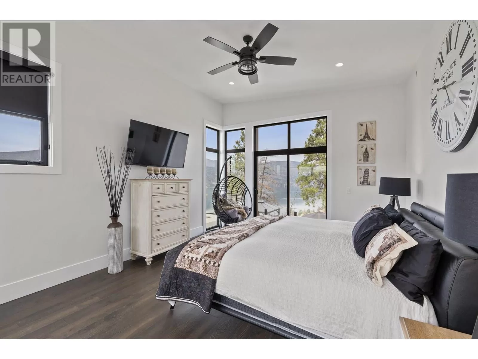 This exceptional residence in the coveted Lakestone community is an architectural masterpiece crafted for luxurious living and entertaining, showcasing breathtaking front and back views. Step into a grand foyer with soaring ceilings, rich hardwood floors, and dramatic wood staircases with sleek glass railings. Sunlight fills every space through walls of windows. The upper-level great room features a modern fireplace and opens onto a covered deck with sweeping lake and mountain views. The gourmet kitchen impresses with a massive island, gas range, custom hood, dual sinks, breakfast bar, wine bar, coffee station with sink, and walk-in pantry. A sliding pass-through connects to the outdoor dining area for effortless hosting. The backyard is a private retreat with a heated pool, hot tub, sun lounges, gazebo dining area, and covered patio for year-round enjoyment. The elegant primary suite offers a private view deck, spacious walk-in closet, and a spa-inspired ensuite with double vanity, rain shower, and soaking tub with stunning vistas. The lower level includes a large rec room, gym, and full bath. The oversized garage provides workshop space, one-way glass doors, and abundant light. Enjoy Lakestoneâs resort-style amenities include pools, hot tubs, fitness centres, sport courts, and lake access all just just minutes from Kelowna, UBCO, and the airport. (id:27476)