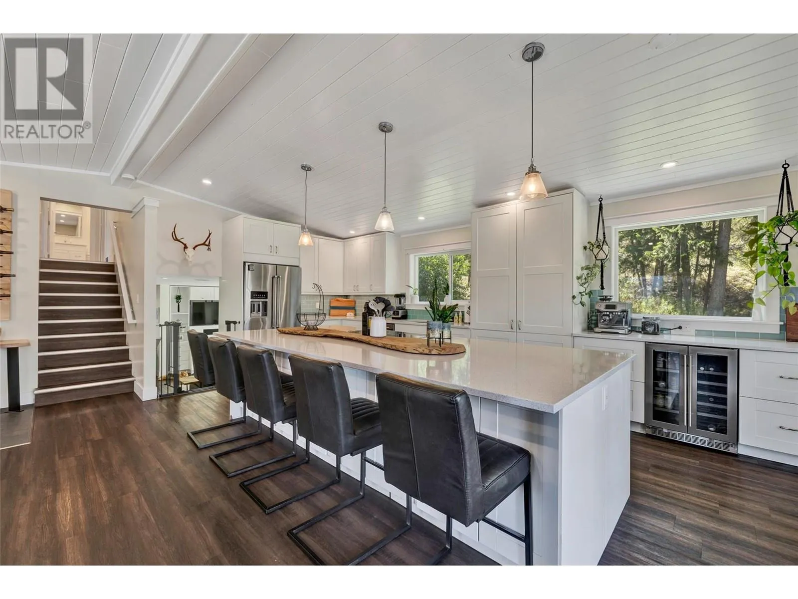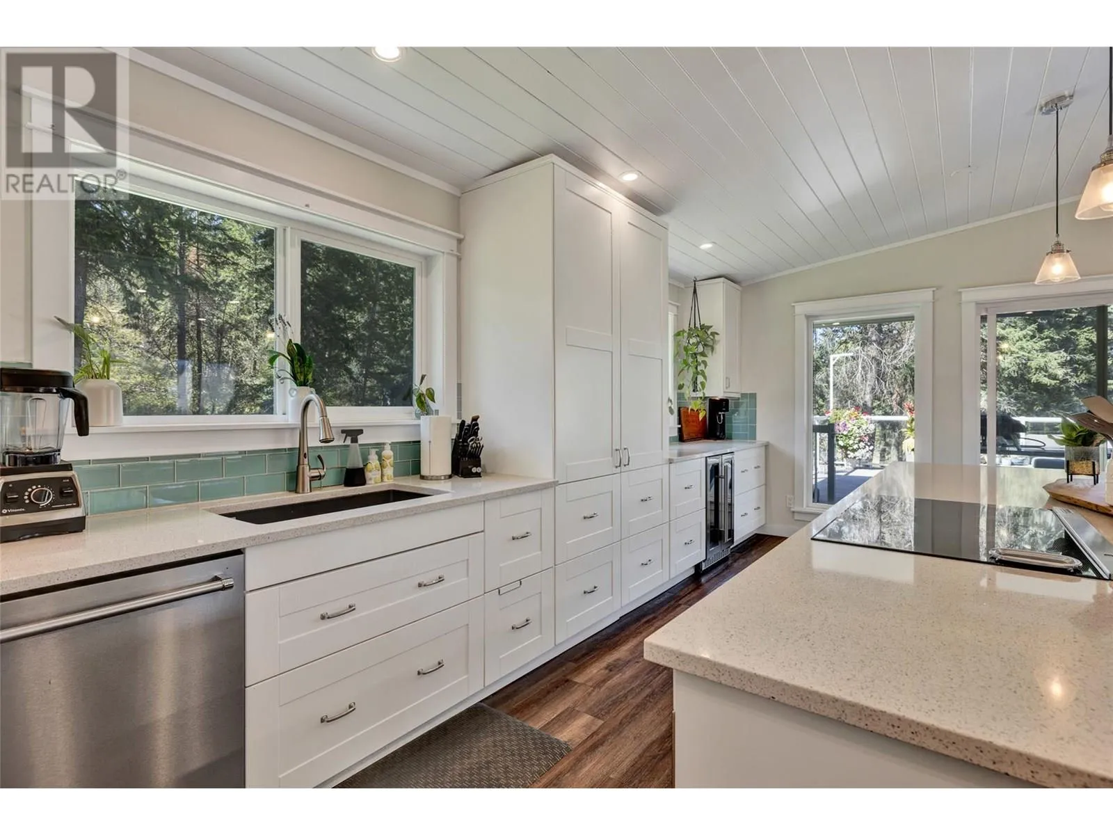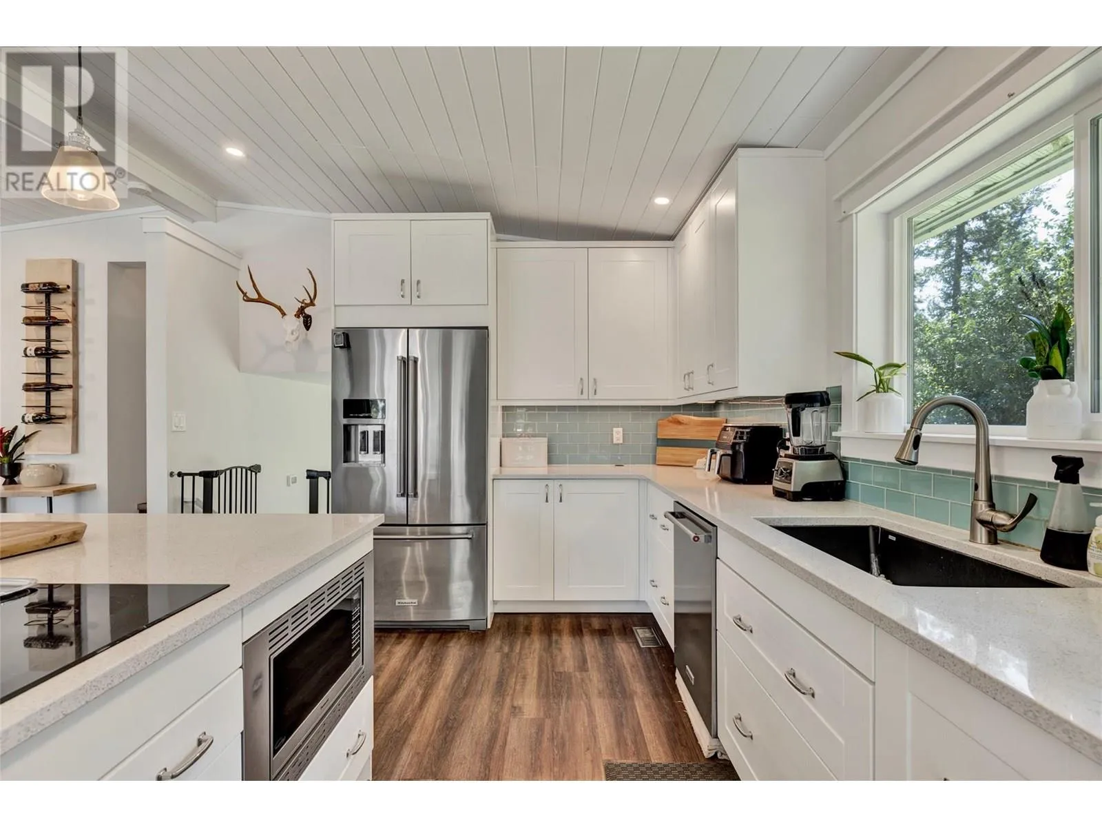 This professionally renovated four bedroom, three bathroom split-level home is nestled on a private and expansive 3.5 acre lot in Lake Country. The open concept layout features a large kitchen with quartz countertops and top of the line stainless steel appliances, including a fridge, microwave, wine fridge, dishwasher, dual convection ovens, induction cooktop, and downdraft exhaustâperfect for cooking enthusiasts and entertainers alike. This home offers unparalleled bonus features, where the family room includes a custom-built entertainment unit with surround sound speakers, and the cooking and dining level of the home features ten foot sliding doors to the spacious deck with a private hot tub, expanding your entertainment options. The primary bedroom serves as a peaceful retreat, complete with a luxurious ensuite that includes dual sinks, a soaker tub, and a glass-encased shower with dual nozzle body spray and rain head. The property also includes a two car garage and a large shop outbuilding with recreational vehicle parking, providing ample space for vehicles, recreational toys, or even horses. This property offers a unique combination of luxury, functionality, and future potential. Whether youâre seeking a family home, a rural escape, or an investment, this Lake Country residence is a must-see. Schedule your private viewing today and explore all that this exceptional home has to offer. (id:27476)