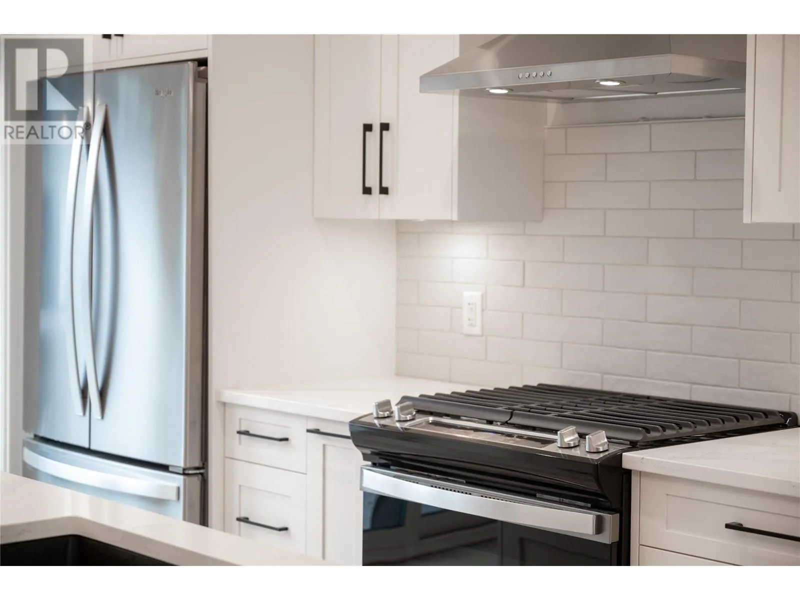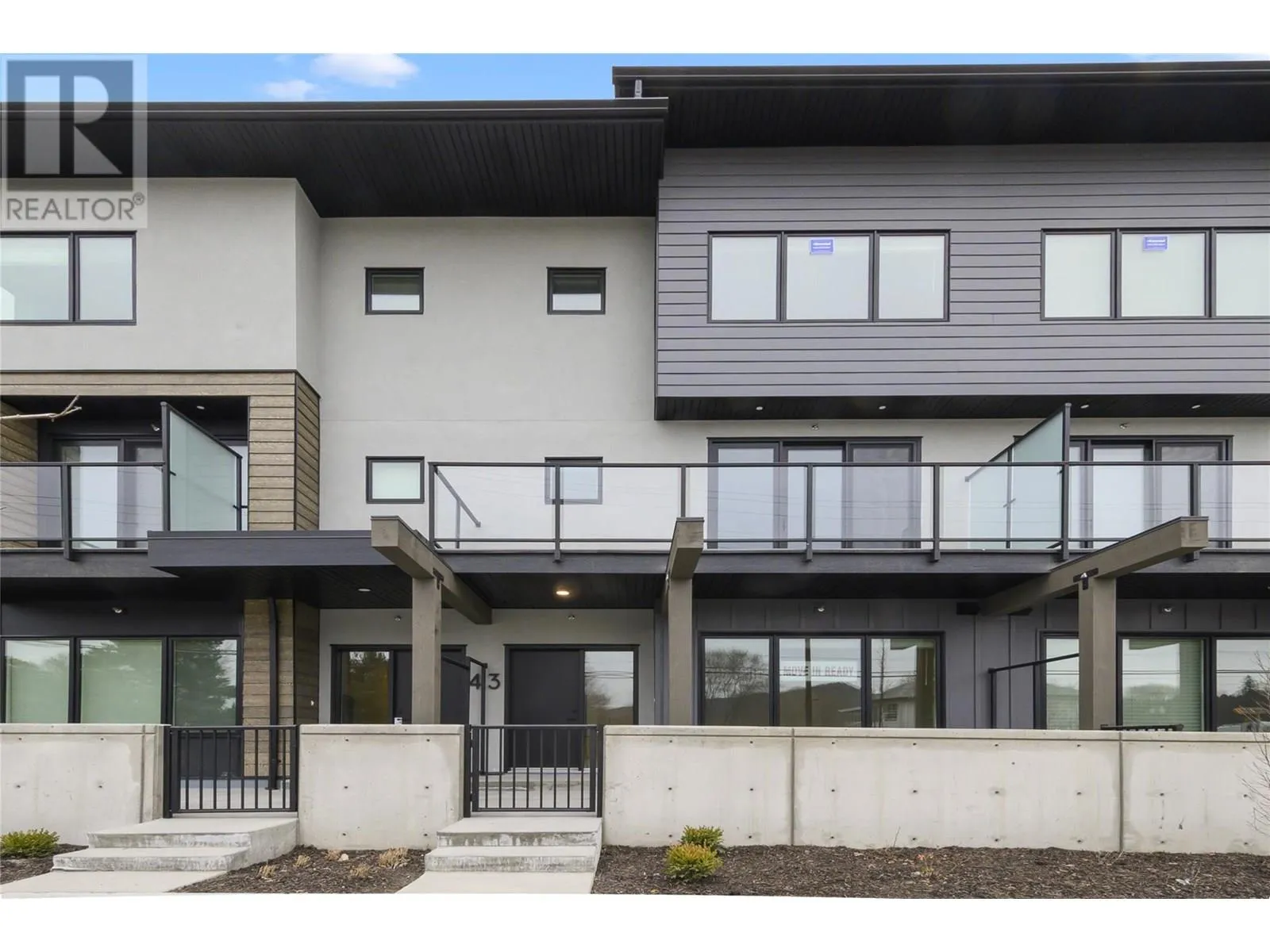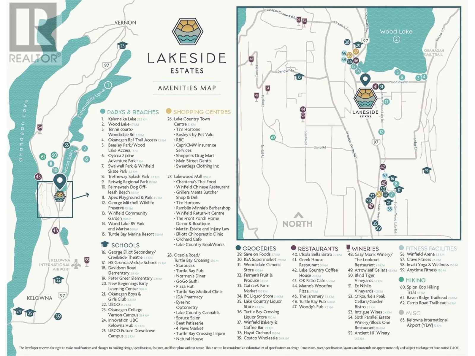 Welcome to Lakeside Estates. THIS HOME IS NOW MOVE-IN READY! Spend the entire Okanagan Summer in your Brand New Home! TH#3-B1 Floor Plan w/ 3 Bedrooms+Large Den+2.5 Baths. 1591sf indoor living, 3 separate patios+444sf double side-by-side garage (includes EV outlet!) that fits a truck. Plus large driveway for extra parking. TH#3 has a large walk-in closet w/organizers w/barn door in primary bedroom, ensuite has a walk-in shower+2 sinks. Blinds, Navien on-demand hot water system, all appliances incl. a natural gas range, & electric fireplace included. Outdoor living is a priority at Lakeside Estates. Includes fenced front patio entrance, perfect for lounging, pets and kids and is the first of 3 patios in the home! You'll be welcomed home to sunshine filtering in from sliding glass doors of the 2 patios, one on either side of your living space (patio off the kitchen AND patio off the living area). Home has a spacious layout and features hints of Modern+West Coast design elements with the lake lifestyle right at your doorstep! Quick access to internal walkways, perfect for your pets! Only 200m from Wood Lake, quick access to Rail Trail. Close to Marinas, Boat launches, Beasley Park, Beaches, Dog Beach, Tennis Courts, shopping+dining nearby. Close to Okanagan Lake and Kalamalka Lake access. Only 10 mins to Kelowna Airport+15 mins to UBCO. Location gives you the benefits of a lakeside vacation with the conveniences of city amenities. Disclosure Statement available. GST Applicable. (id:27476)