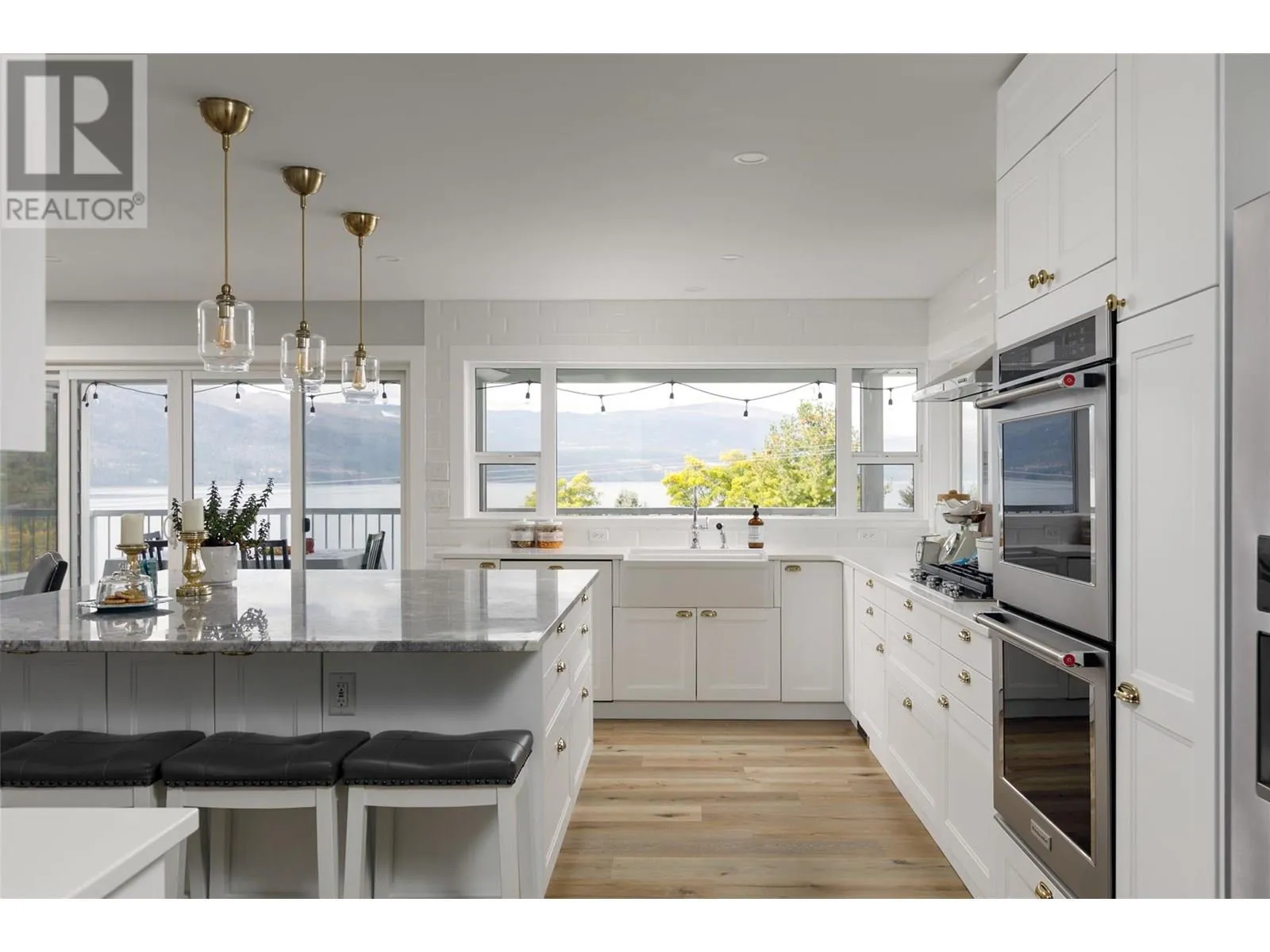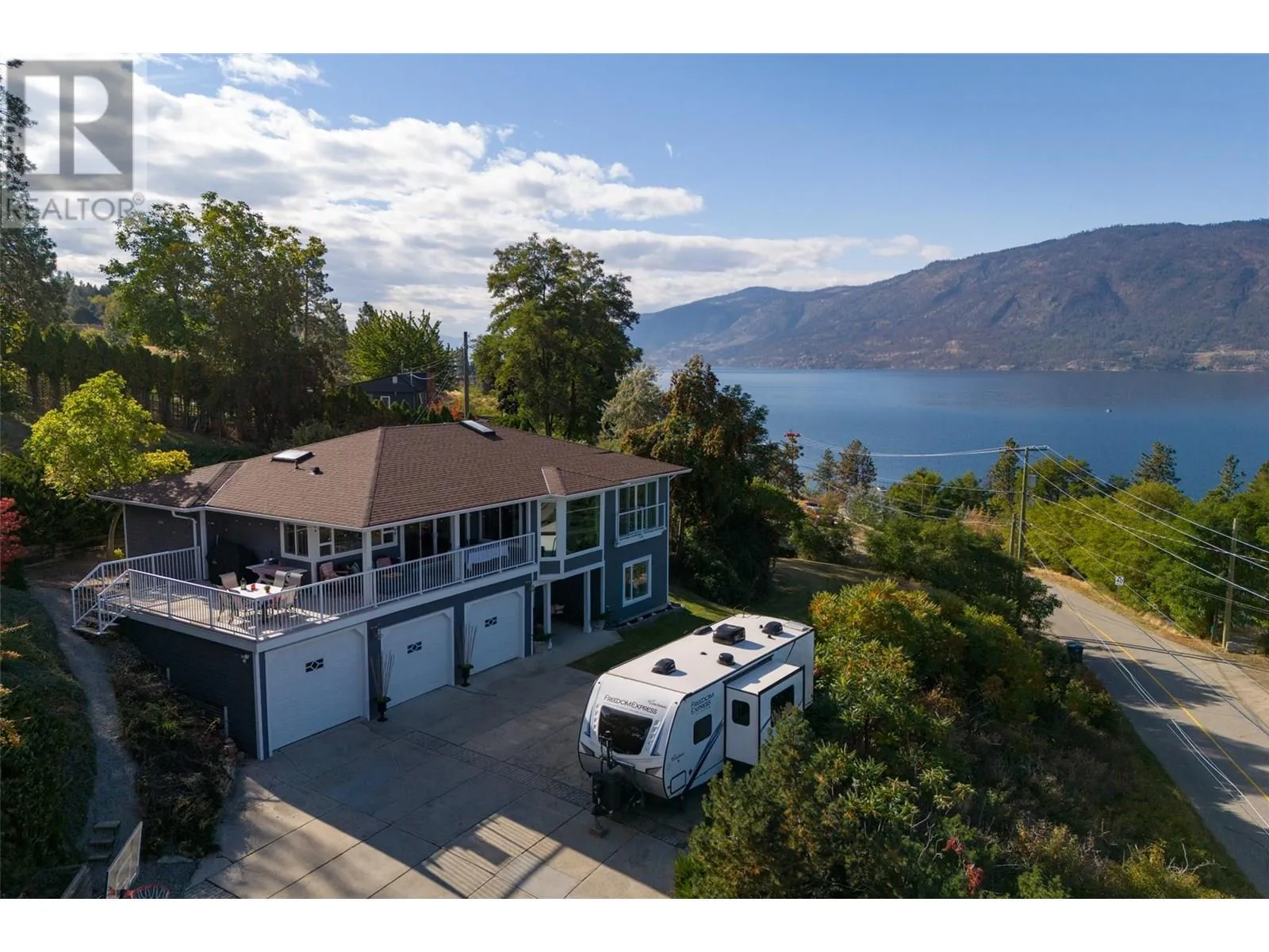 Unrivaled Lake Okanagan Views â A Rare Gem! Boasting 244 ft of road frontage directly facing Lake Okanagan, this exceptional 0.69-acre property is perched perfectly private and is surrounded by orchards, farmland, multi-million dollar waterfront estates and has lake views so close, it feels like you can touch the water from the deck. Discover this stunning 5-bed, 3-bath, 3033 sq ft home designed to showcase breathtaking lake views by day and relax on the expansive deck at night to take in starry night views from every angle from this semi rural lake centered setting. The updated gourmet island kitchen features premium stainless appliances and flows effortlessly to the expansive great room and outdoor decksâperfect for seamless indoor-outdoor living. Thoughtful updates include a spacious walk-in pantry/laundry room, custom built-ins, newer flooring, windows, bathrooms, furnace, A/C, and on-demand hot water. The lower-level summer kitchen offers an inlaw suite or summer kitchen, and ample RV parking meets every lifestyle need. Minutes to beaches, boat launches, world-class wineries, and only 15 minutes to Kelownaâs YLW Airport. This is luxurious lakeview living at its finest! (id:27476)