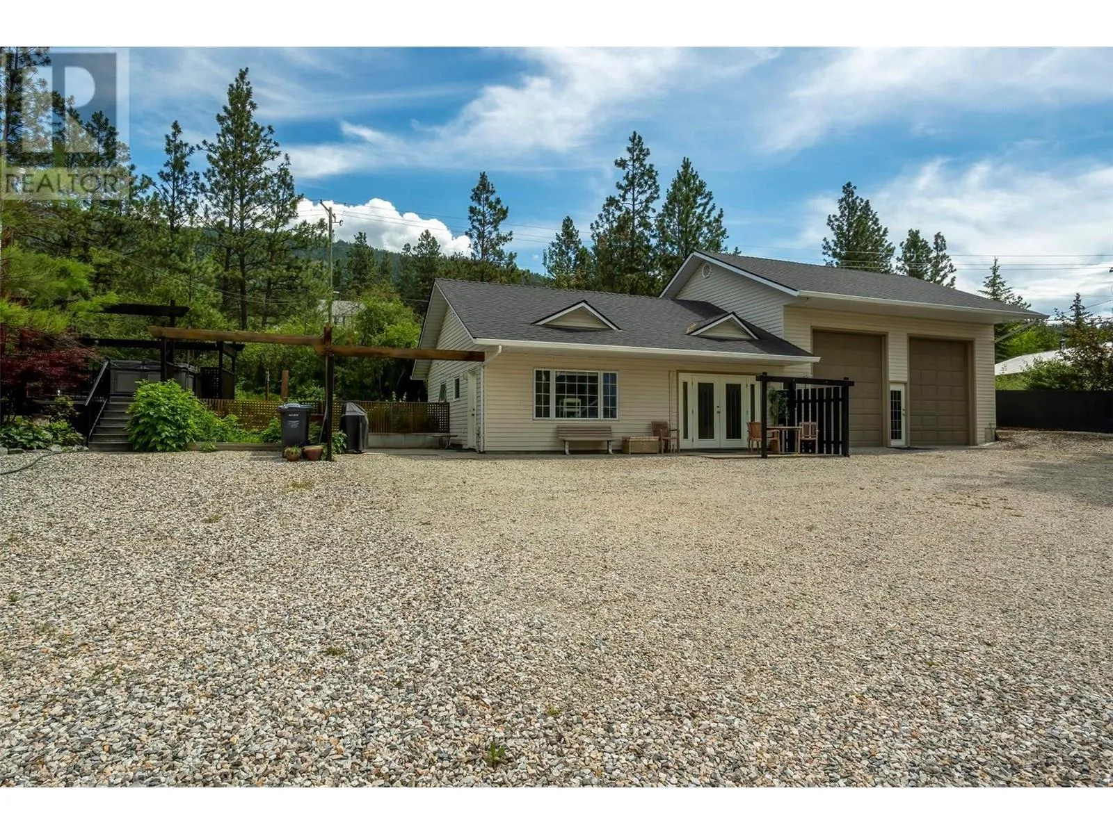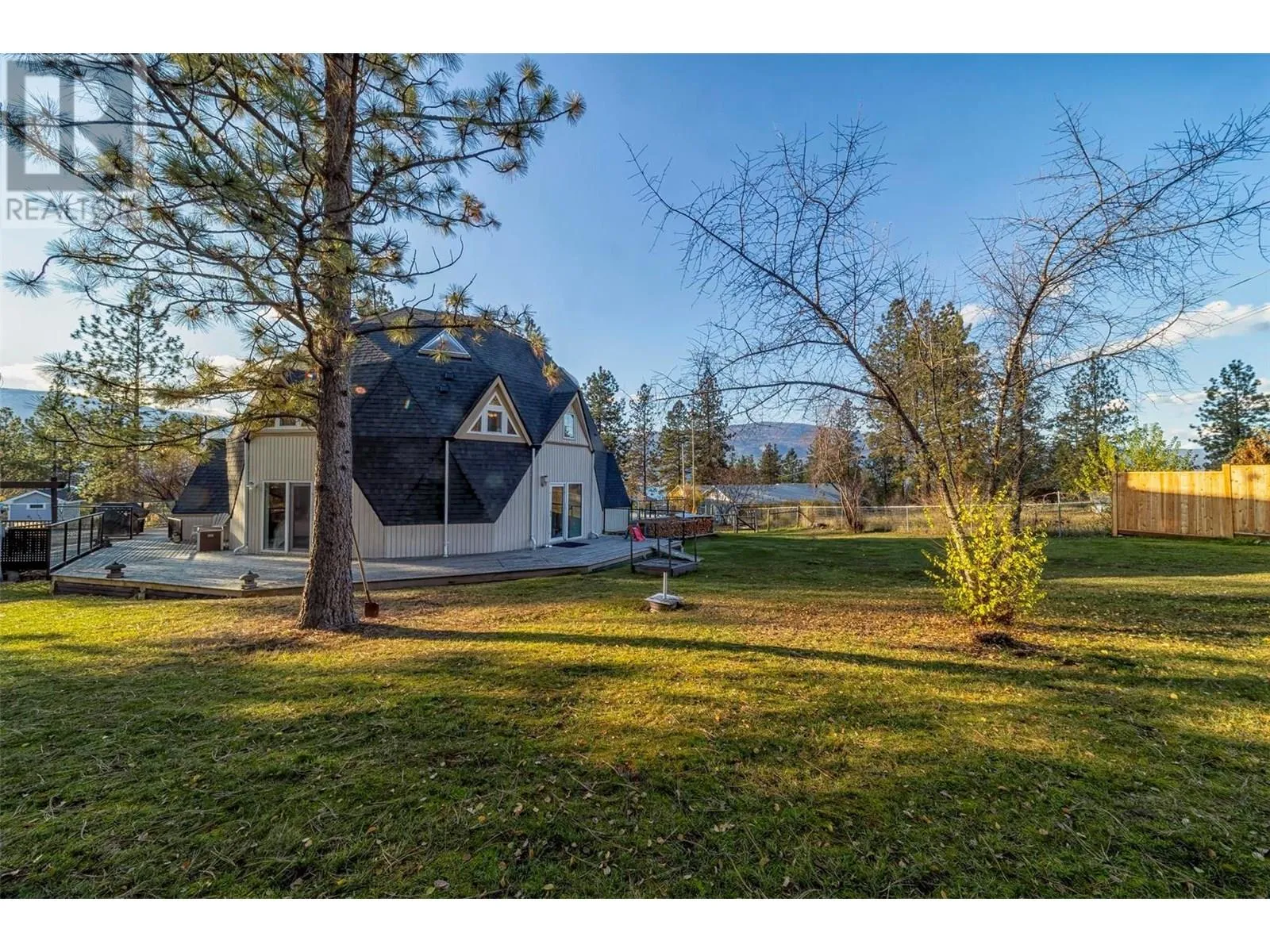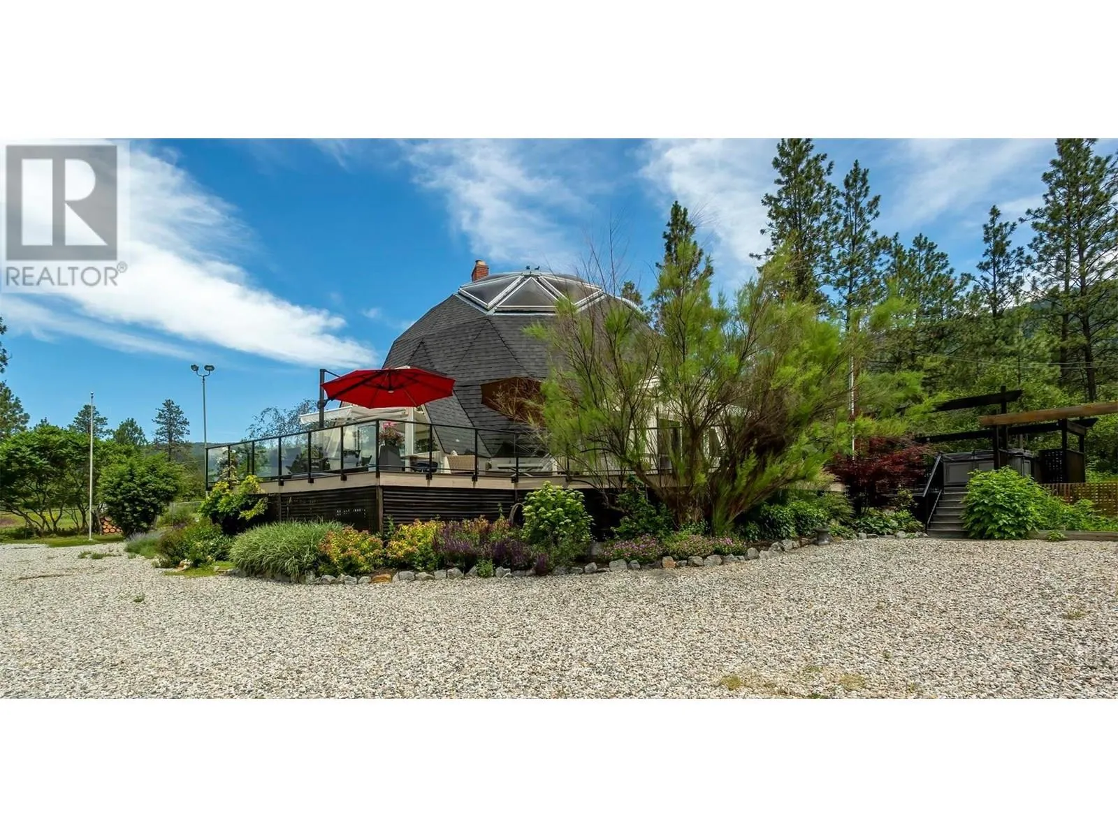 Highly sought after Carrs Landing location and just a short stroll from Okanagan Lake, this geodesic home offers stunning architecture on a private setting. Natural benefits are created with an abundance of natural light, better traffic flow and improved sociability! This picturesque 4 bedroom Monterey home offers a generous 2975 square feet of living space. Featuring a stone clad, high efficiency fireplace that extends through the 26' vaulted ceiling, this open concept floor plan offers contemporary features which include Euroline windows & doors, hardwood floors, stylish kitchen with Corian counters, S/S appliances and modern bathrooms. The wrap around cedar deck offers numerous outdoor entertainment areas for those beautiful Okanagan summer nights. Separate 27âx 30â 2 bay RV height garage with self contained 800 sq ft cottage. This cottage provides an open concept living/dining/kitchen space, full size bedroom, 4pce bath, 2pce bath & laundry. RV parking and a fully fenced yard add to this amazing package. Just minutes from world class wineries, Predator Ridge Golf Resort, public boat launch, parks and local beaches. NOTE: Guest house measurements are displayed as L3 in the property detail and are included in the total square footage of the home. (id:27476)