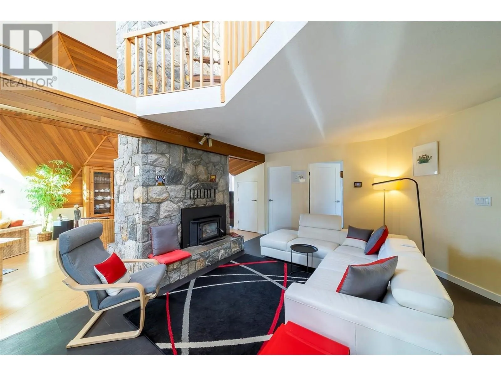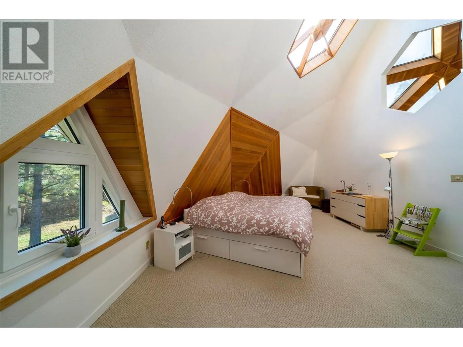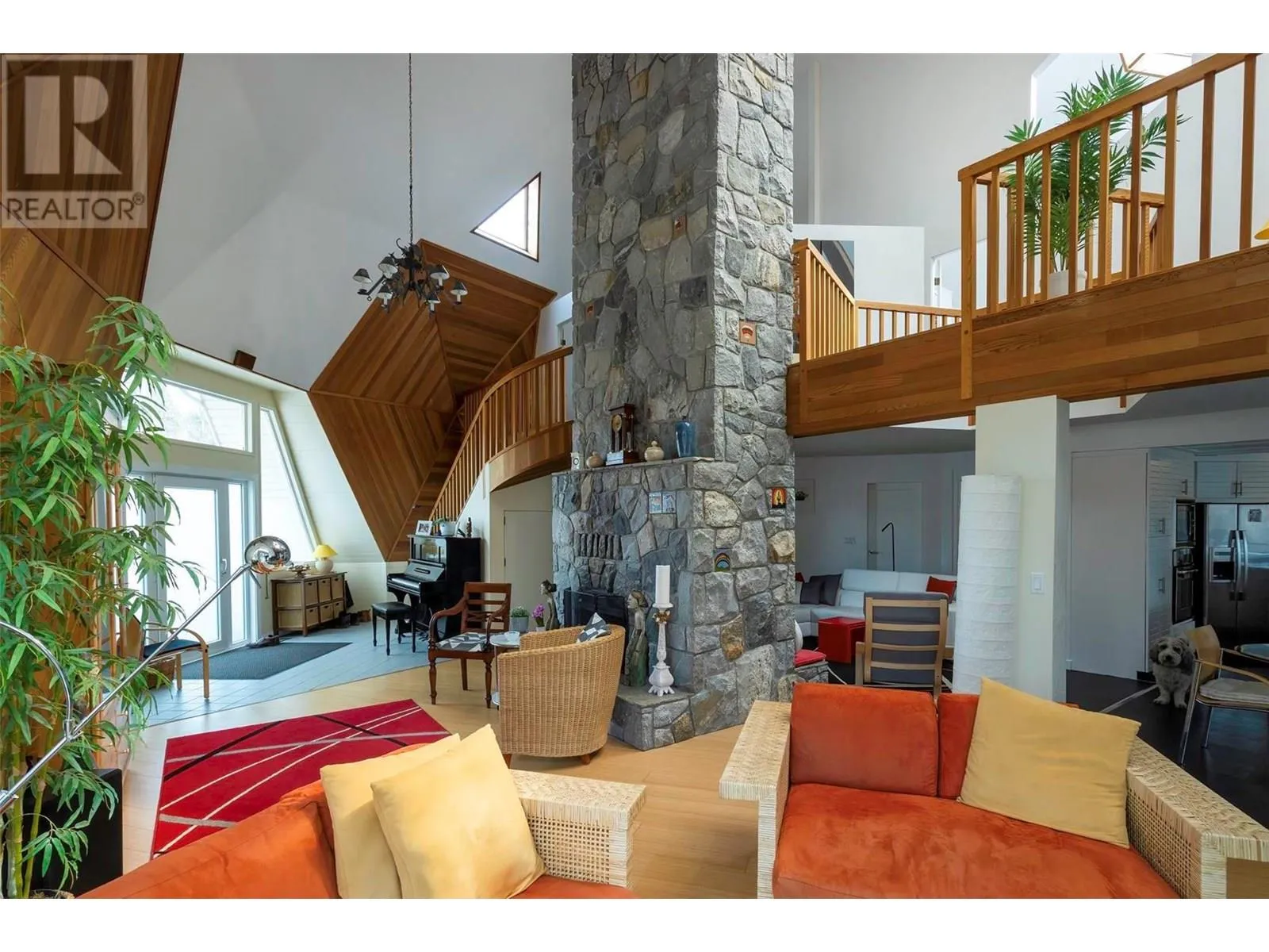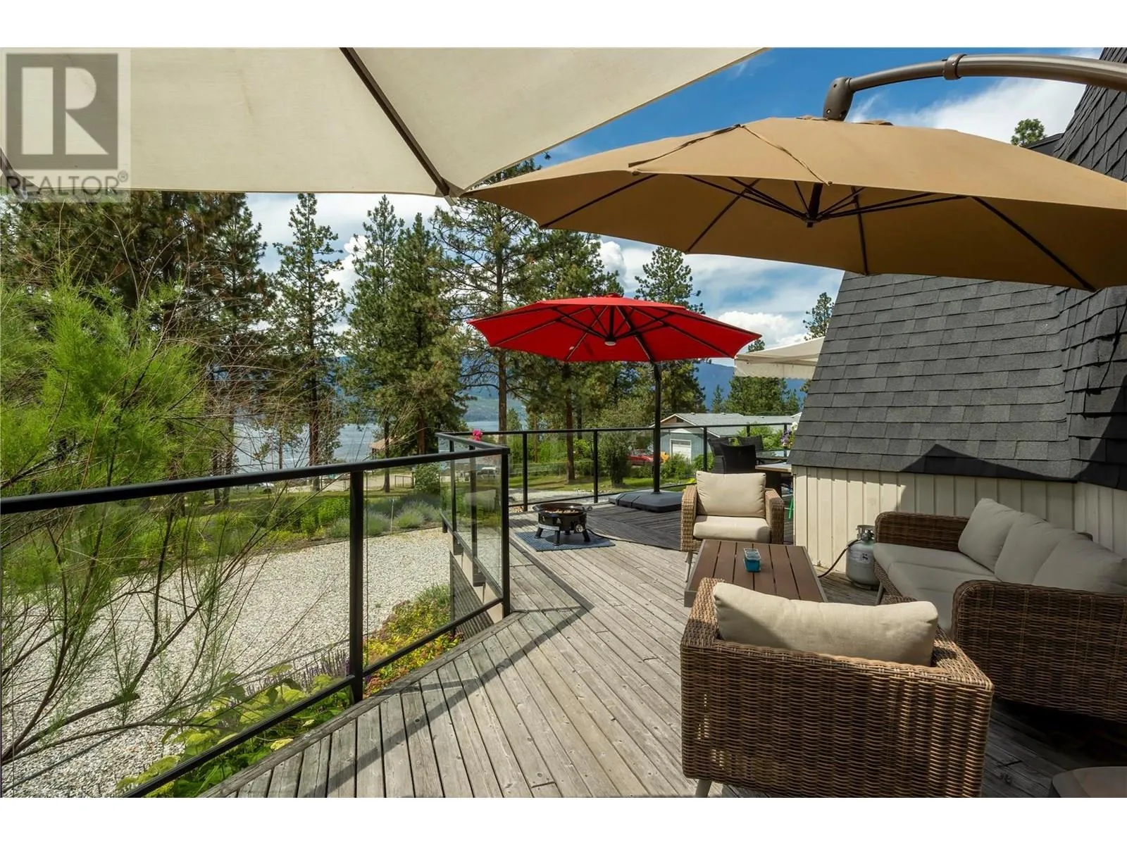 Highly sought after Carrs Landing location and just a short stroll from Okanagan Lake, this geodesic home offers stunning architecture on a private setting. Natural benefits are created with an abundance of natural light, better traffic flow and improved sociability! This picturesque 4 bedroom Monterey home offers a generous 2975 square feet of living space. Featuring a stone clad, high efficiency fireplace that extends through the 26' vaulted ceiling, this open concept floor plan offers contemporary features which include Euroline windows & doors, hardwood floors, stylish kitchen with Corian counters, S/S appliances and modern bathrooms. The wrap around cedar deck offers numerous outdoor entertainment areas for those beautiful Okanagan summer nights. Separate 27âx 30â 2 bay RV height garage with self contained 800 sq ft cottage. This cottage provides an open concept living/dining/kitchen space, full size bedroom, 4pce bath, 2pce bath & laundry. RV parking and a fully fenced yard add to this amazing package. Just minutes from world class wineries, Predator Ridge Golf Resort, public boat launch, parks and local beaches. NOTE: Guest house measurements are displayed as L3 in the property detail and are included in the total square footage of the home. (id:27476)