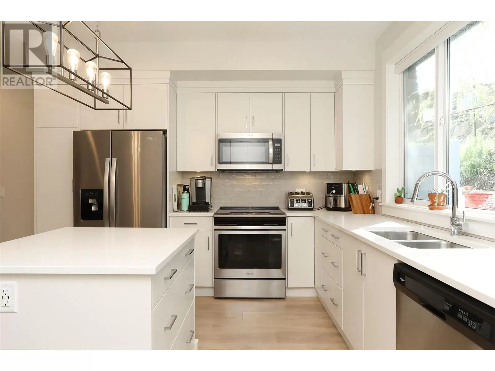 Come home to the Village at Still Water - Lake Country with this 3 bedroom, 3 bathroom home, featuring a modern kitchen with quartz counters, island, and private patio off the kitchen. The large windows invite an abundance of natural light for a bright and airy feel. Enjoy the spacious primary bedroom with ensuite and walk-in closet, along with laundry upstairs, a 2-car garage, and ample storage. Enjoy the convenience of being a 10-minute drive to 3 lakes, surrounded by orchards and vineyards for farm-fresh produce. It also boasts proximity to golf, trails and schools including UBCO, Kelowna airport, and is pet-friendly. With air conditioning, this home offers both luxury and comfort for your ideal lifestyle. 2 pets any size allowed. THIS ONE IS AVAILABLE AND EASY TO SHOW! (id:27476)