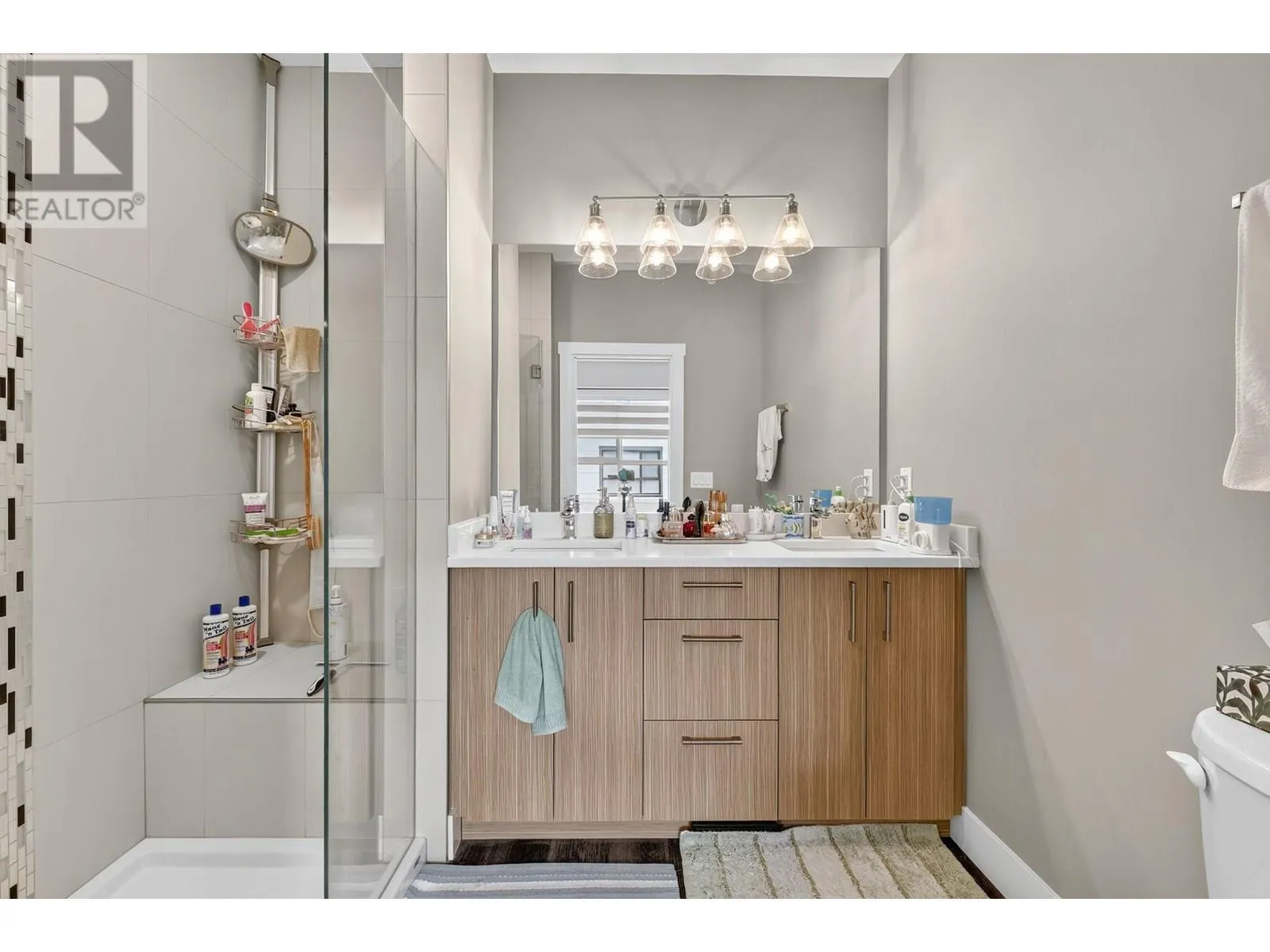 Welcome to your dream home in beautiful Lake Country, BC! This spacious 3-bedroom, 2.5-bathroom townhome offers modem comfort and style. The bright, open main floor features a sleek kitchen with quartz countertops, a large island, stainless steel appliances, and a gas range. Custom paint and a well-appointed pantry add a touch of charm, while the main floor powder room boasts a generous vanity for added convenience. Dimmer switches throughout create the perfect ambiance. Upstairs, you'll find three generously sized bedrooms, including a primary suite with a spacious walk-in closet and a luxurious ensuite featuring dual sinks and a shower. The second full bathroom includes a bathtub and shower combo, ideal for relaxing. Step outside to enjoy your morning coffee on the south-facing balcony, basking in the Okanagan sun, or host friends and family on the expansive rear deck, complete with a natural gas BBQ hookup. Stay comfortable year-round with central air conditioning, and store all your gear in the double car tandem garage. Just steps away-less than 100 meters-you'll find Wood Lake for water activities, the scenic Rail Trail for biking or strolling, and nearby sports fields, courts, and parks. Schools, restaurants, shopping, beaches, and recreation are all close by, making this the perfect spot to enjoy the best of Lake Country living. Open House Saturday and Sunday Aug. 23rd and 24th from 1-3pm! ""Open House Saturday and Sunday Aug. 23rd and 24th from 1-3pm!"" (id:27476)