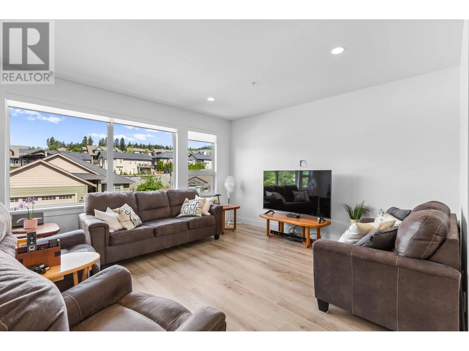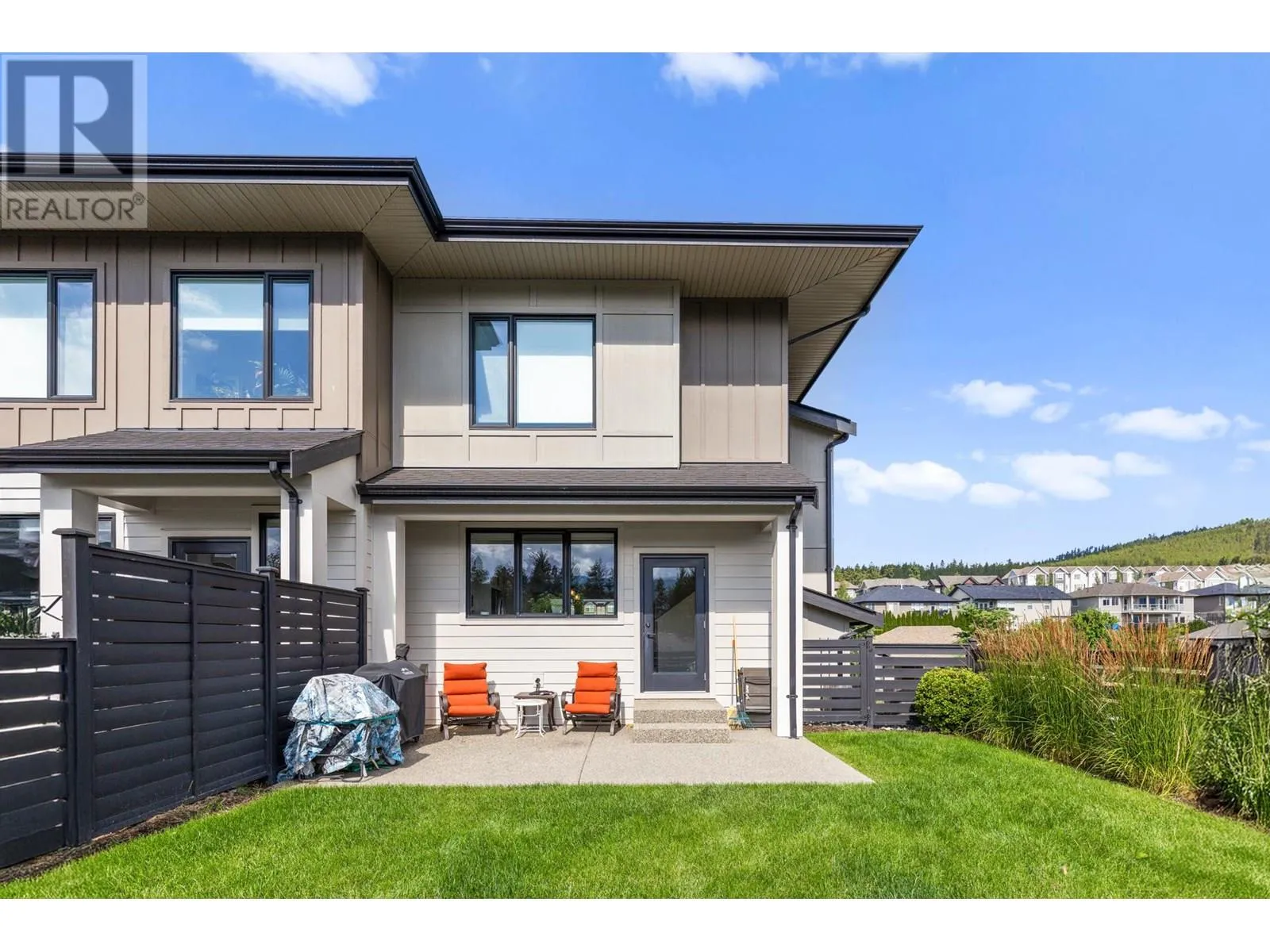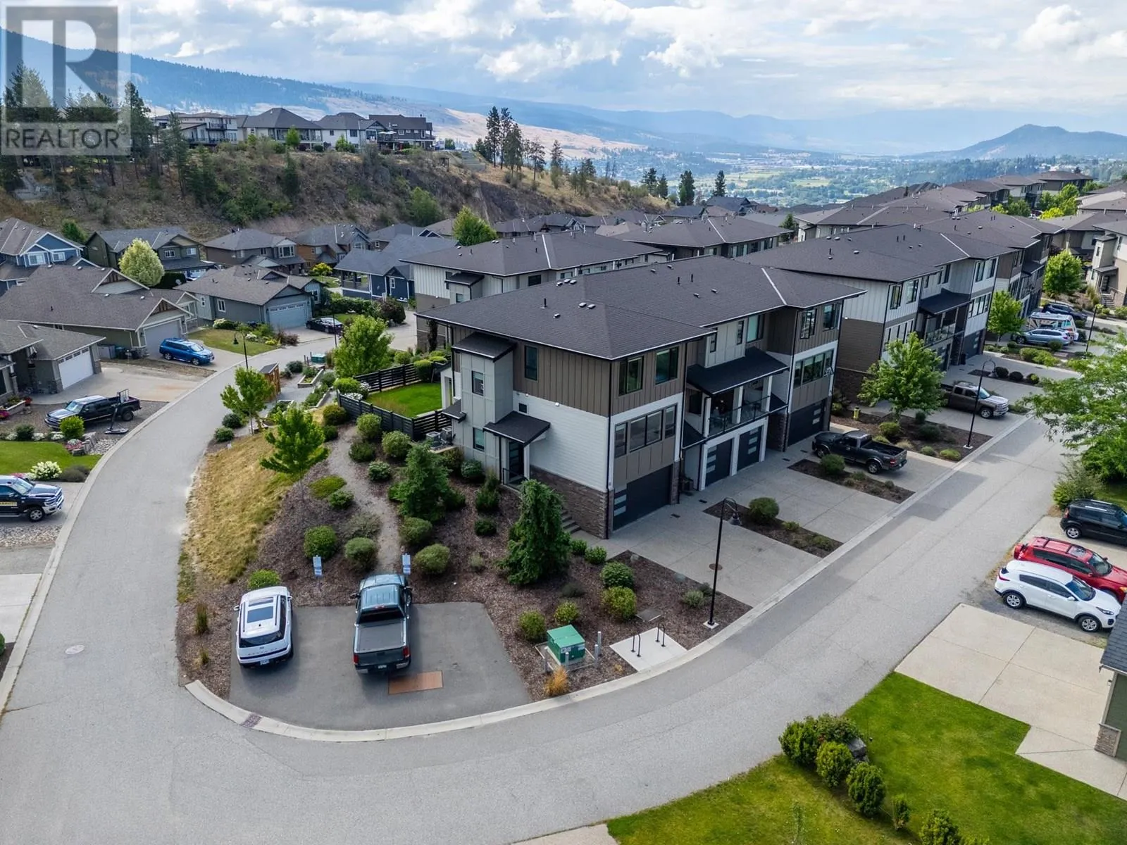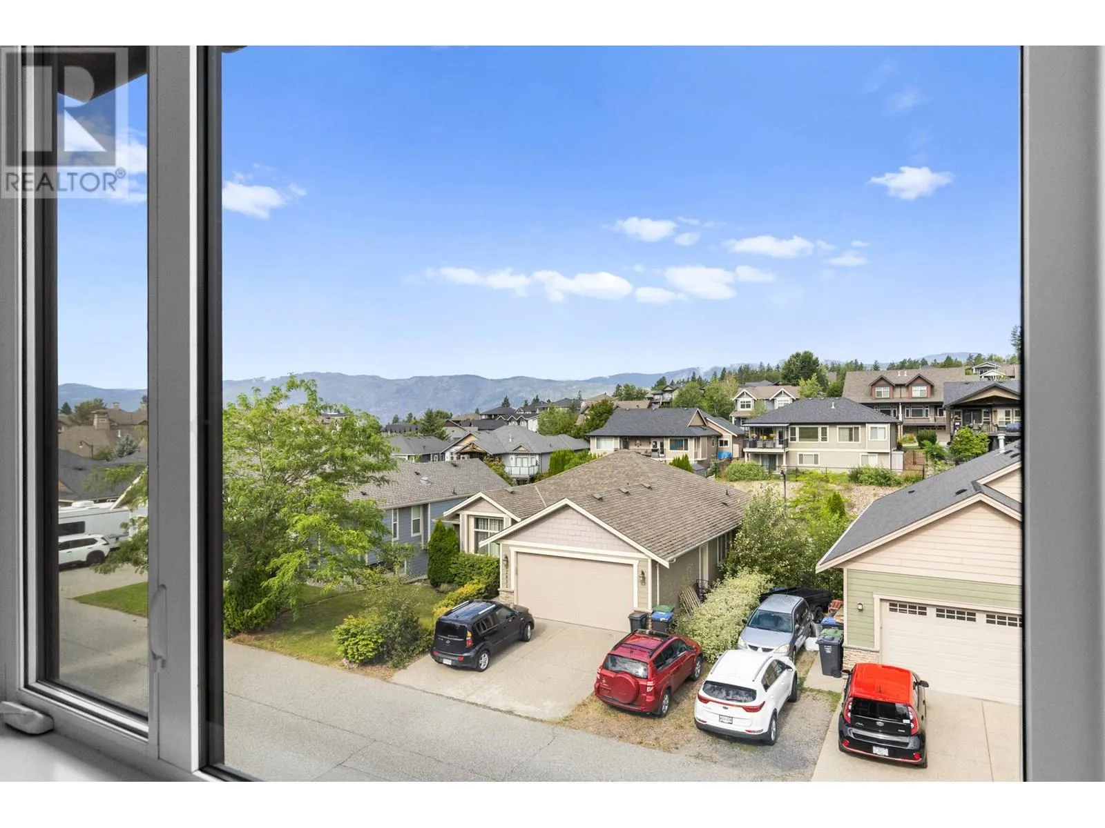 Bright & Modern End Unit in Rockridge at The Lakes. A vibrant and family/pet friendly townhome community in the heart of Lake Country. This stylish 3-bedroom + den/flex, 3-bathroom end unit offers the perfect blend of space, functionality, and comfort. Flooded with natural light, the main floor showcases a modern open-concept design with large windows throughout. The kitchen is a true highlight, featuring quartz countertops, a gas range, sit-up island, and cozy eating nook. The layout flows seamlessly into a spacious dining area and bright living roomâperfect for everyday living and entertaining. Step out from the kitchen to your private, elevated backyard oasis with panoramic Eastern Mountain views. With no units directly behind, youâll enjoy added privacy along with a gas hookup, power, and water connection. Upstairs youâll find three well-appointed bedrooms, including a generous primary suite with a 4-piece ensuite. The laundry is conveniently located on this level as well. The lower level adds valuable flexibility with a den/flex room â perfect for a home office, gym, or guest space. Additional features include a double car garage, a full-length 26 ft driveway that easily accommodates most vehicles, and close proximity to visitor parkingâmaking hosting friends and family a breeze. This home truly has it allâmodern comfort, unbeatable functionality, and a fantastic location. (id:27476)