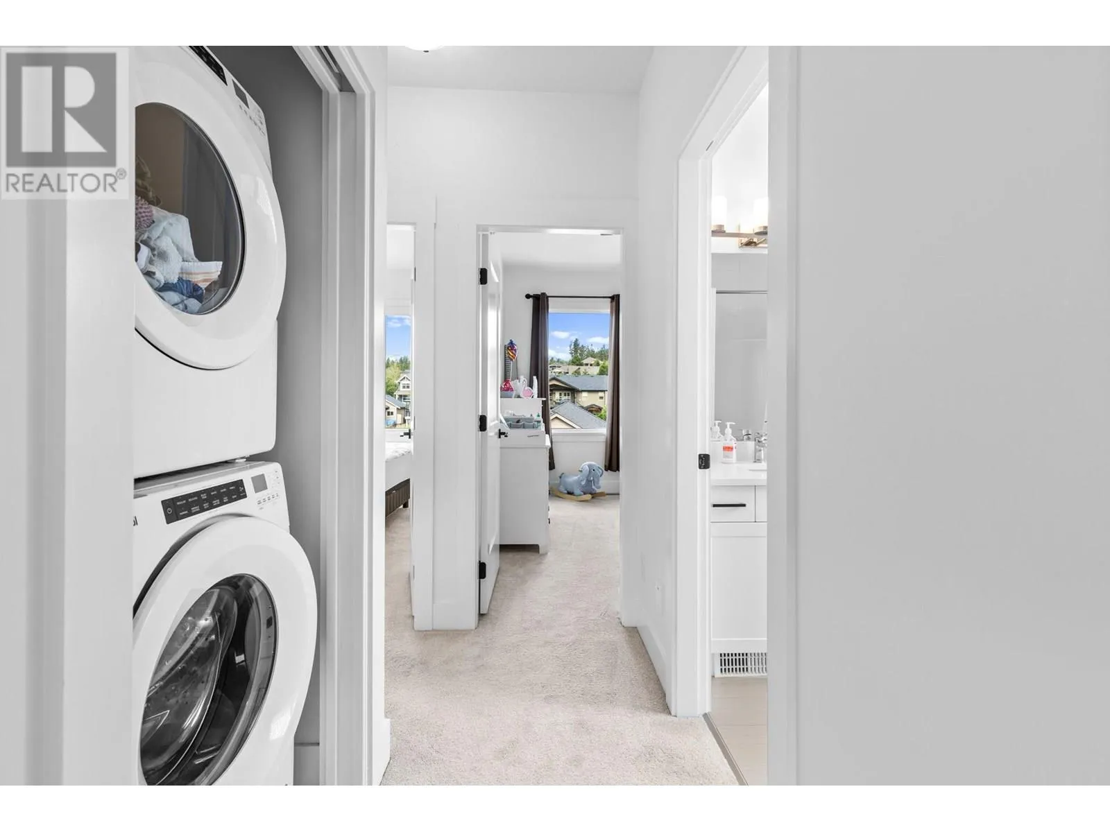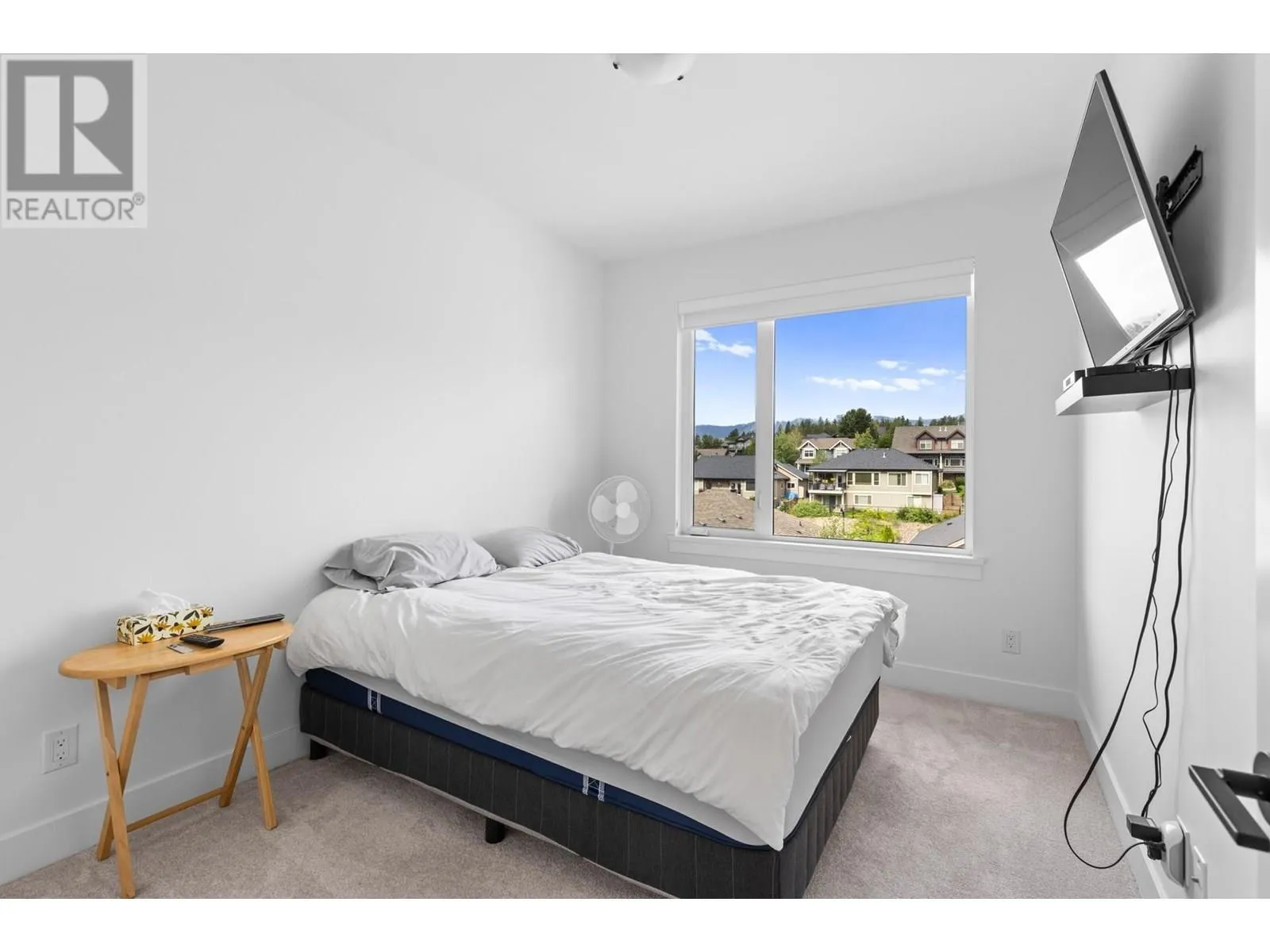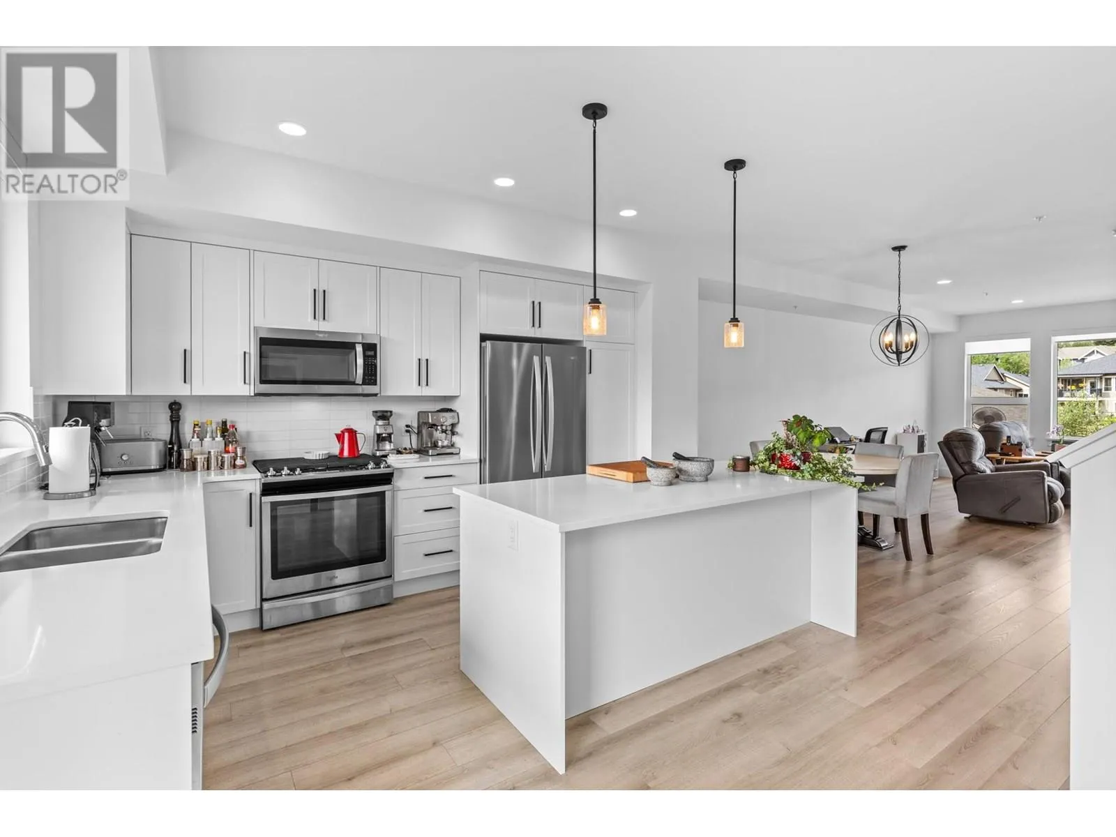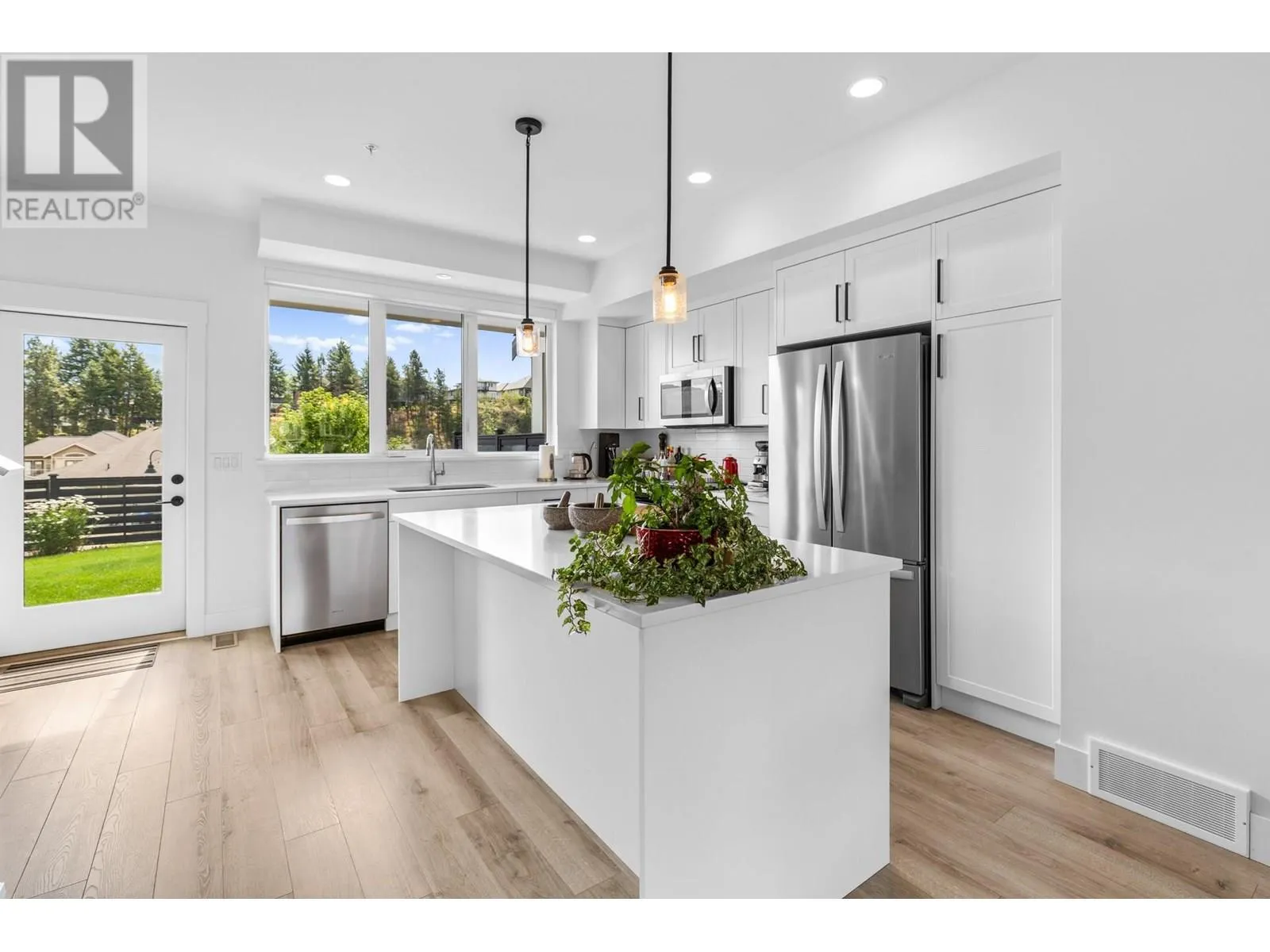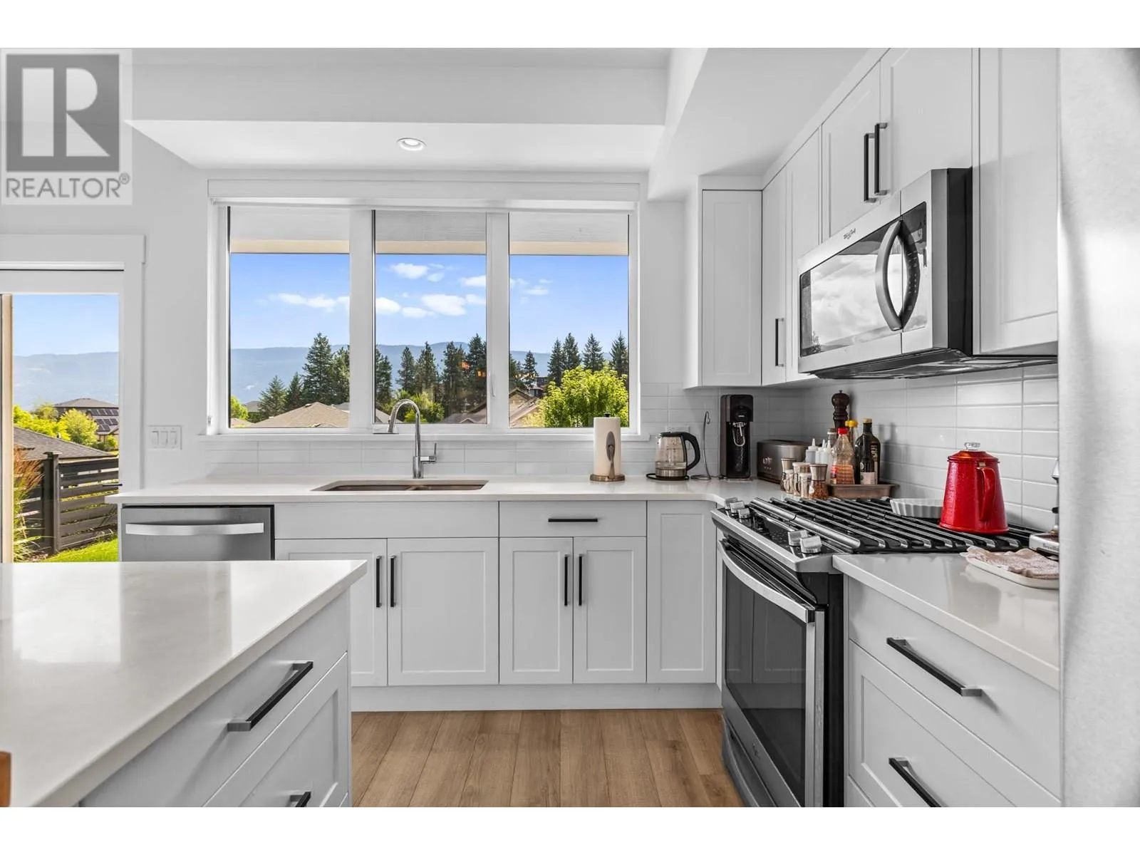 Bright & Modern End Unit in Rockridge at The Lakes. A vibrant and family/pet friendly townhome community in the heart of Lake Country. This stylish 3-bedroom + den/flex, 3-bathroom end unit offers the perfect blend of space, functionality, and comfort. Flooded with natural light, the main floor showcases a modern open-concept design with large windows throughout. The kitchen is a true highlight, featuring quartz countertops, a gas range, sit-up island, and cozy eating nook. The layout flows seamlessly into a spacious dining area and bright living roomâperfect for everyday living and entertaining. Step out from the kitchen to your private, elevated backyard oasis with panoramic Eastern Mountain views. With no units directly behind, youâll enjoy added privacy along with a gas hookup, power, and water connection. Upstairs youâll find three well-appointed bedrooms, including a generous primary suite with a 4-piece ensuite. The laundry is conveniently located on this level as well. The lower level adds valuable flexibility with a den/flex room â perfect for a home office, gym, or guest space. Additional features include a double car garage, a full-length 26 ft driveway that easily accommodates most vehicles, and close proximity to visitor parkingâmaking hosting friends and family a breeze. This home truly has it allâmodern comfort, unbeatable functionality, and a fantastic location. (id:27476)