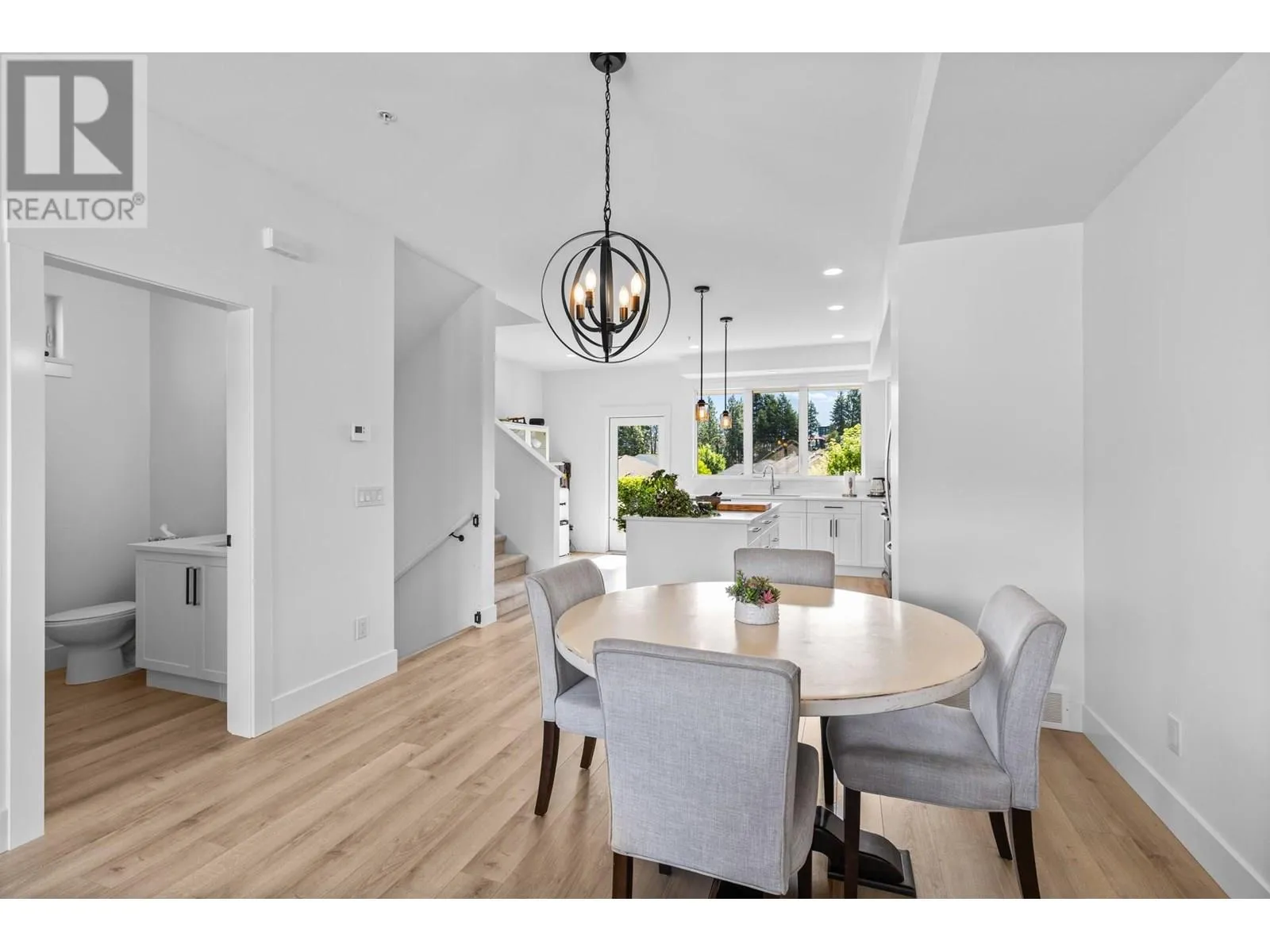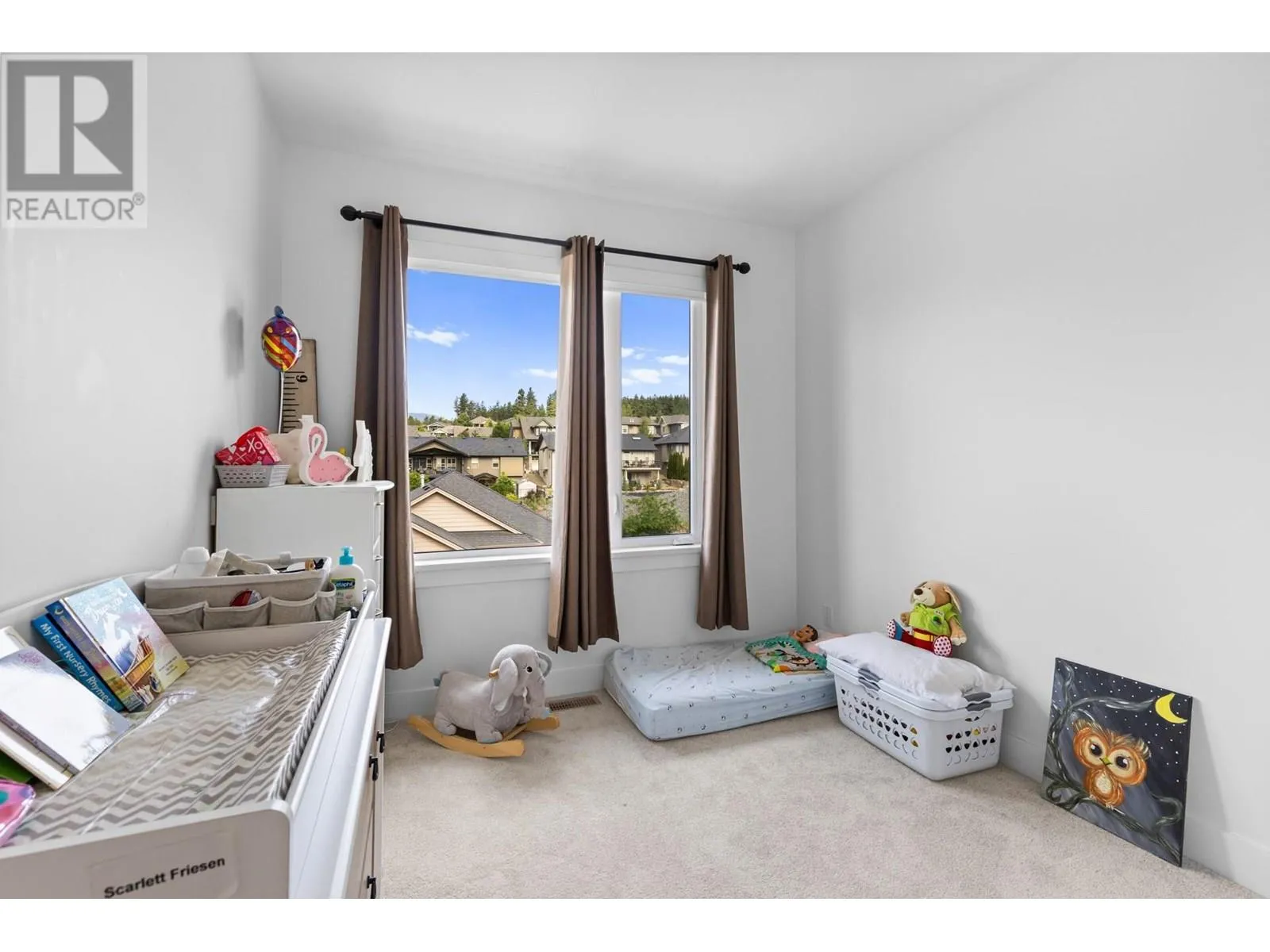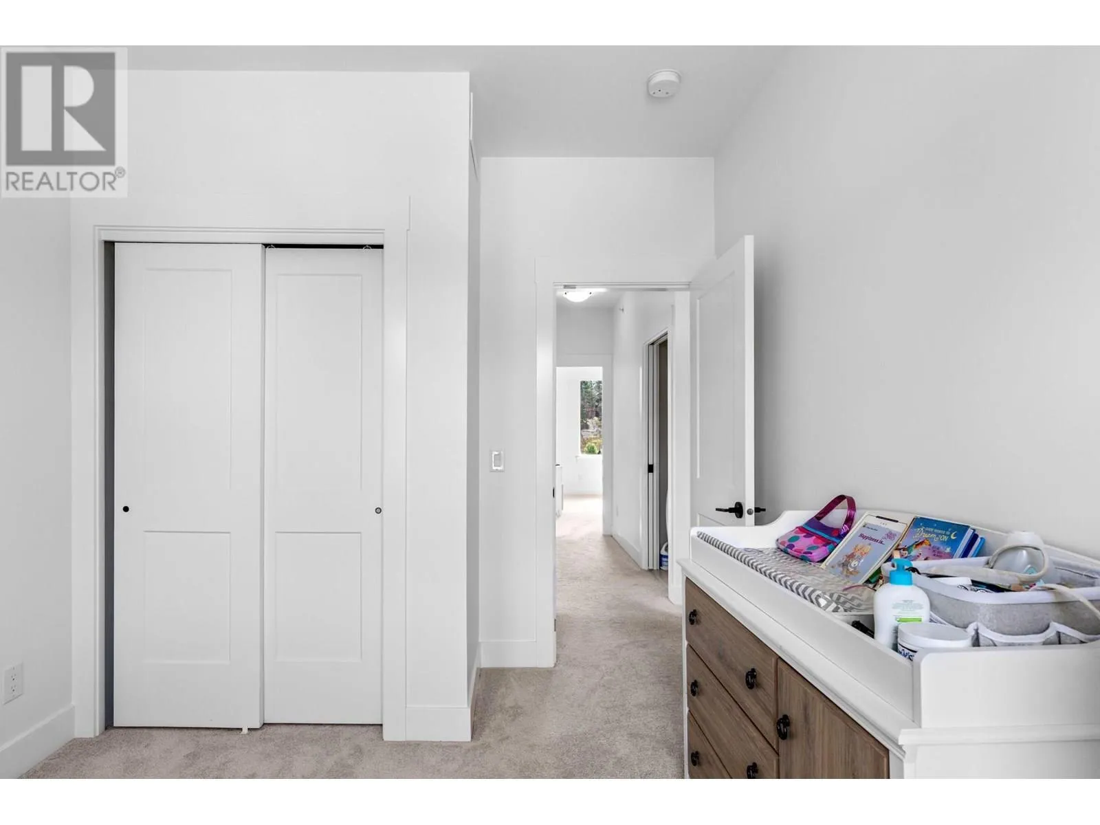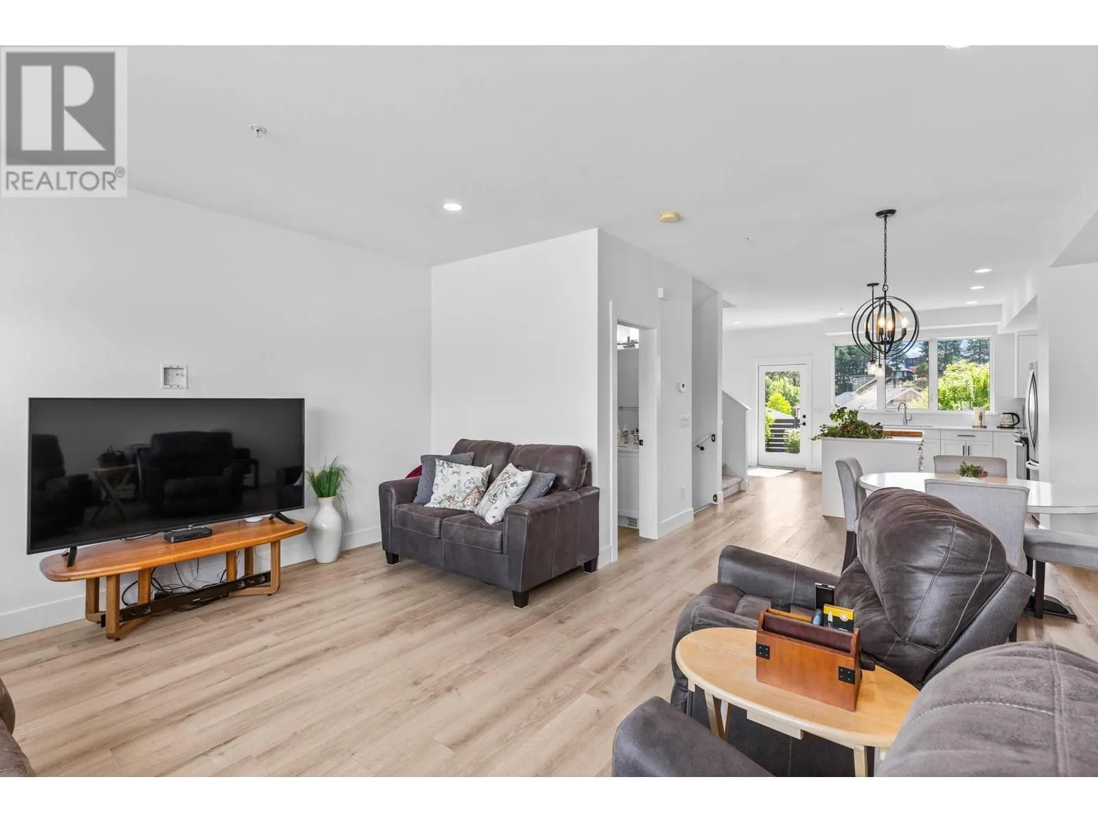 Bright & Modern End Unit in Rockridge at The Lakes. A vibrant and family/pet friendly townhome community in the heart of Lake Country. This stylish 3-bedroom + den/flex, 3-bathroom end unit offers the perfect blend of space, functionality, and comfort. Flooded with natural light, the main floor showcases a modern open-concept design with large windows throughout. The kitchen is a true highlight, featuring quartz countertops, a gas range, sit-up island, and cozy eating nook. The layout flows seamlessly into a spacious dining area and bright living roomâperfect for everyday living and entertaining. Step out from the kitchen to your private, elevated backyard oasis with panoramic Eastern Mountain views. With no units directly behind, youâll enjoy added privacy along with a gas hookup, power, and water connection. Upstairs youâll find three well-appointed bedrooms, including a generous primary suite with a 4-piece ensuite. The laundry is conveniently located on this level as well. The lower level adds valuable flexibility with a den/flex room â perfect for a home office, gym, or guest space. Additional features include a double car garage, a full-length 26 ft driveway that easily accommodates most vehicles, and close proximity to visitor parkingâmaking hosting friends and family a breeze. This home truly has it allâmodern comfort, unbeatable functionality, and a fantastic location. (id:27476)