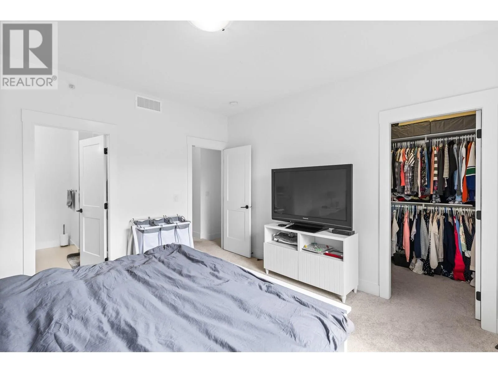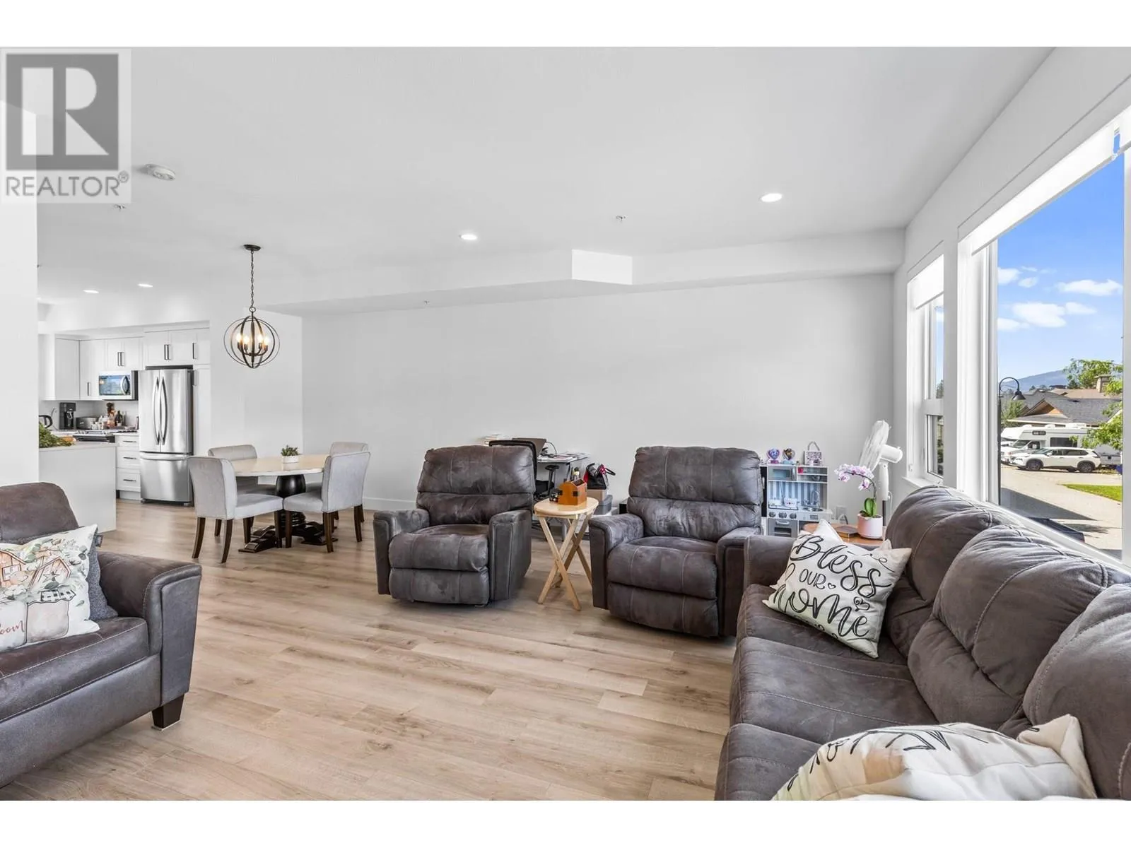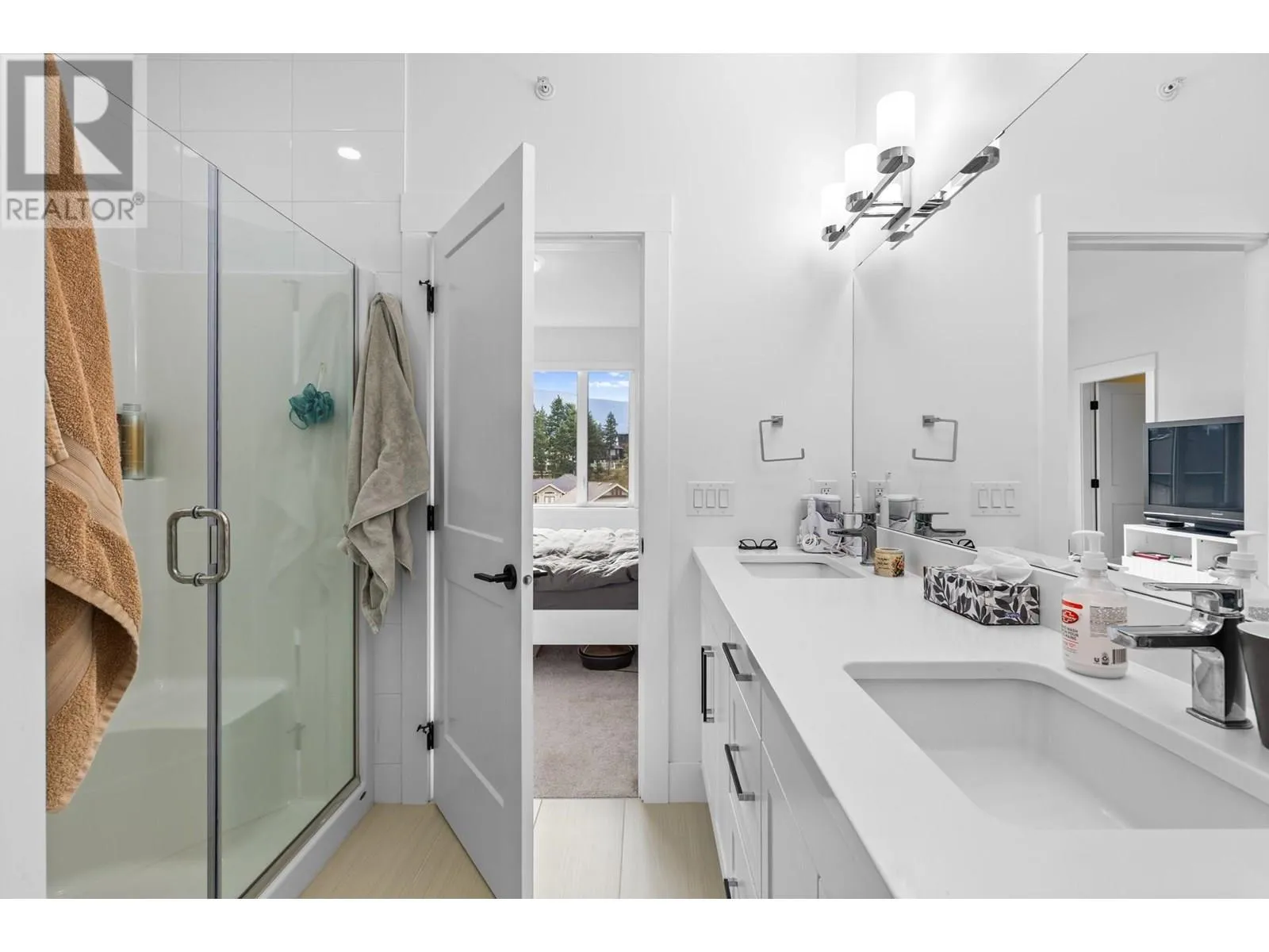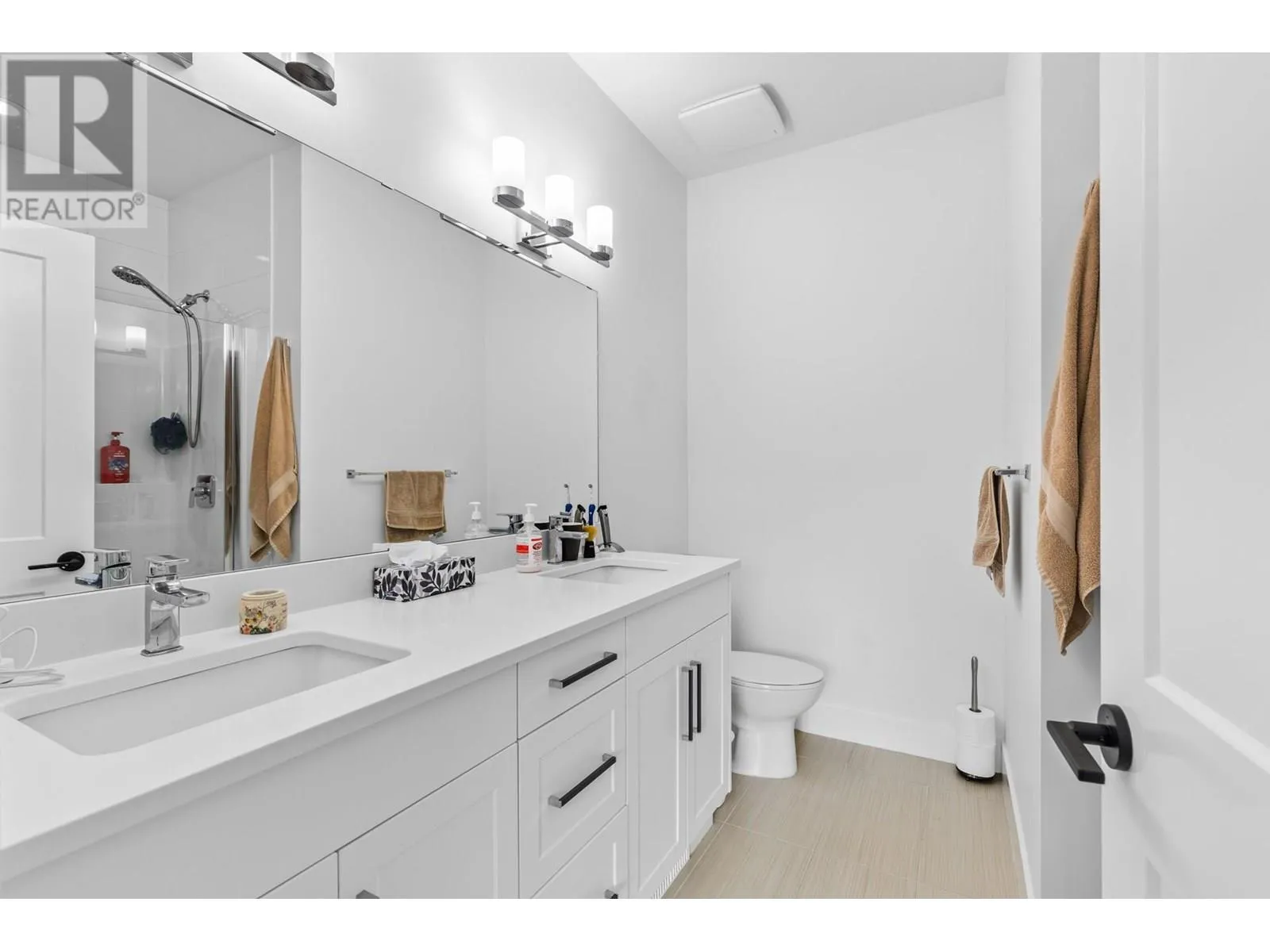 Bright & Modern End Unit in Rockridge at The Lakes. A vibrant and family/pet friendly townhome community in the heart of Lake Country. This stylish 3-bedroom + den/flex, 3-bathroom end unit offers the perfect blend of space, functionality, and comfort. Flooded with natural light, the main floor showcases a modern open-concept design with large windows throughout. The kitchen is a true highlight, featuring quartz countertops, a gas range, sit-up island, and cozy eating nook. The layout flows seamlessly into a spacious dining area and bright living roomâperfect for everyday living and entertaining. Step out from the kitchen to your private, elevated backyard oasis with panoramic Eastern Mountain views. With no units directly behind, youâll enjoy added privacy along with a gas hookup, power, and water connection. Upstairs youâll find three well-appointed bedrooms, including a generous primary suite with a 4-piece ensuite. The laundry is conveniently located on this level as well. The lower level adds valuable flexibility with a den/flex room â perfect for a home office, gym, or guest space. Additional features include a double car garage, a full-length 26 ft driveway that easily accommodates most vehicles, and close proximity to visitor parkingâmaking hosting friends and family a breeze. This home truly has it allâmodern comfort, unbeatable functionality, and a fantastic location. (id:27476)