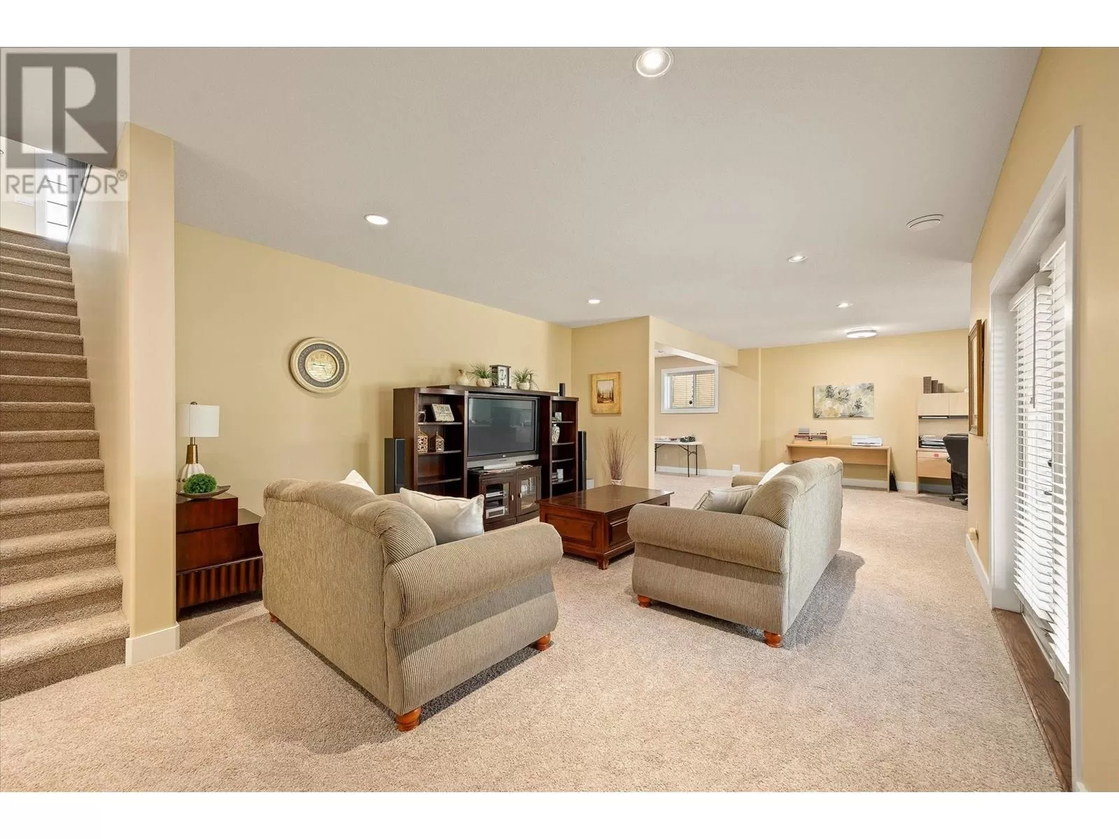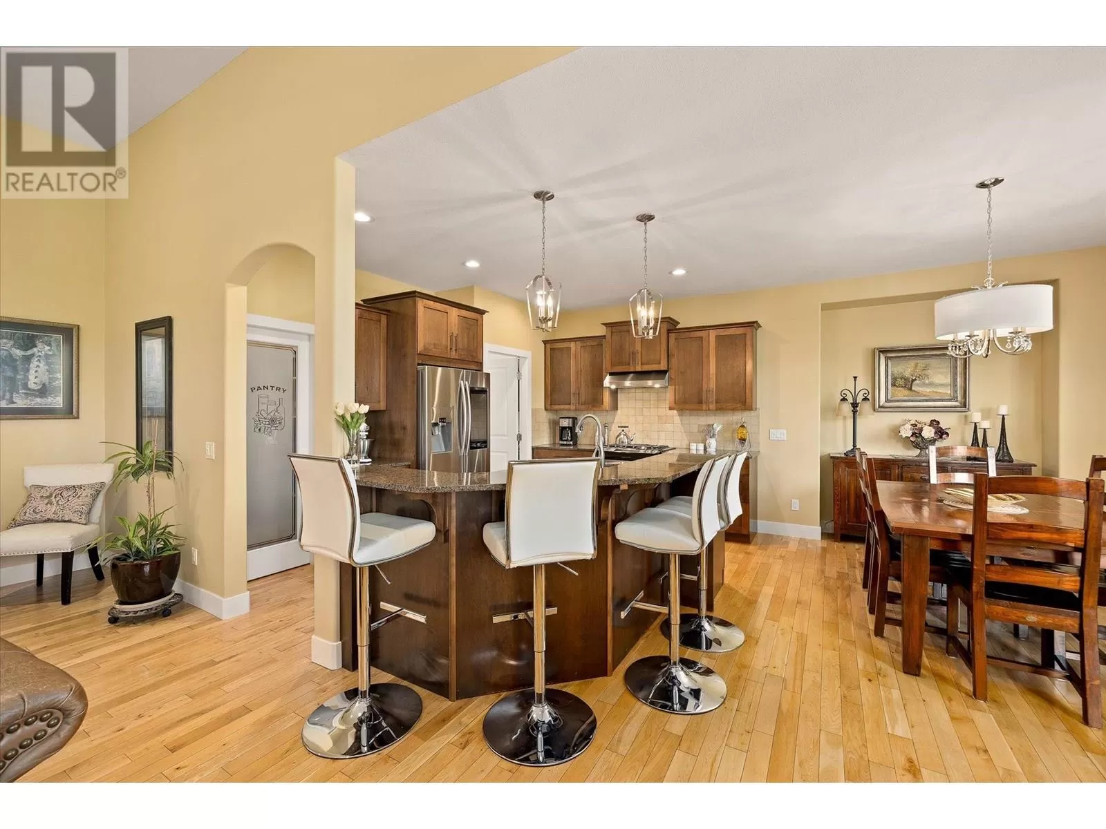Welcome to 12860 Cliffshore Drive ~ nestled on a quiet street in Lake Countryâs sought-after Lakes community. This home blends style, function and location. This inviting 4-bedroom home (2 bedrooms up & 2 down) allows ample space for family, guests, or a potential future suite (thanks to a separate basement entrance & spacious layout). The large main floor primary bedroom has a 5-piece ensuite and a walk-in closet. This open-concept home features high ceilings, white oak hardwood floors, large windows that allow for natural light, and a welcoming atmosphere. The kitchen is ideal for daily living and entertaining, complete with richly coloured cabinetry, granite countertops, a bar-height island, a large walk-in pantry, and stainless steel appliances. The main floor laundry room adds everyday convenience and includes an LG washer & dryer set. All appliances are within 5 to 7 years old. Double closets throughout the home for plenty of storage. Downstairs offers a cozy family room with a bonus room, and a very large storage/mechanical area (248 sq. ft) provides extra storage space. Additional features include central vacuum, gas fireplace, security system, gas BBQ hookup, irrigation, and a double garage! A large upper deck and lower/patio provide outdoor enjoyment with mountain views, including fully landscaped lawns and gardens. Located minutes from UBC & local bus stops, walking trails, beaches, wineries, and shopping, this home offers the best of the Okanagan lifestyle. (id:27476)