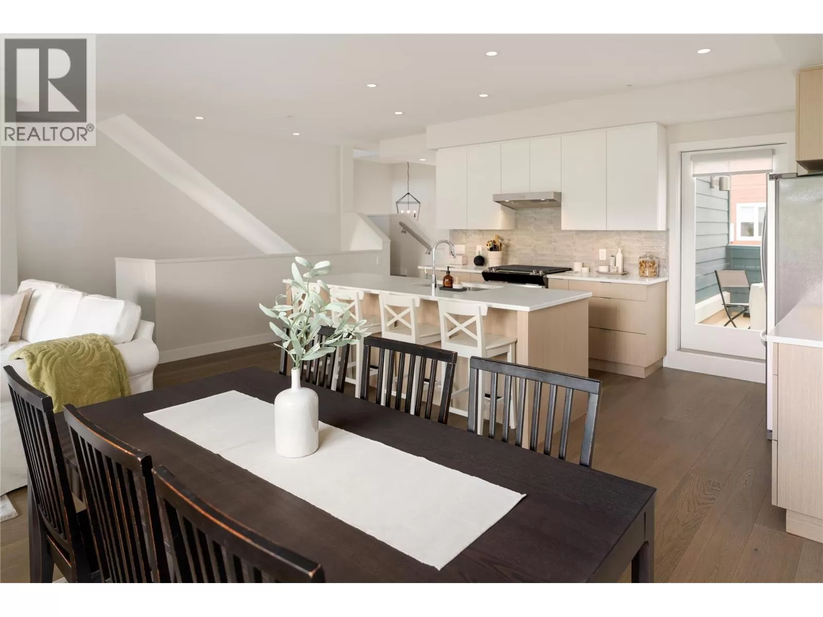 Experience bright, modern living in this 3-bedroom, 4-bathroom townhome with over 2000 sq. ft. of space, unobstructed views from the main level & a private rooftop deck overlooking gorgeous sunsets & slight lake views. Built in 2023, this home is part of a boutique community designed for privacy with minimal shared walls & smart architectural design. The main level features oversized windows, wide-plank wood flooring & an open-concept kitchen with stainless steel appliances, gas range, white upper cabinetry, greenery out the windows & direct access to a patio. Upstairs, the primary suite includes a spa-inspired ensuite with in-floor heating, plus two additional bedrooms & full bath. The lower level offers a versatile family room that opens to a pet-friendly, fenced yard with grass & patio stoneâideal for pets, kids, or outdoor relaxing. The upgraded half bath doubles as a utility room with potential for a pet wash or added storage. The rooftop deck is a true highlightâperfect for entertaining or soaking in the views. Additional features include central air, gas furnace, central vac, double garage with hose bib, upgraded lighting, dimmers & three outdoor spaces. Located right on the Rail Trail, offering easy biking around Wood Lake. Just across from the tennis courts and within walking distance to Beasley Park, Turtle Bay Pub, and the Greek House. A new gas station and Home Hardware are also coming soon.. Low-maintenance living in a friendly, well-connected community. (id:27476)