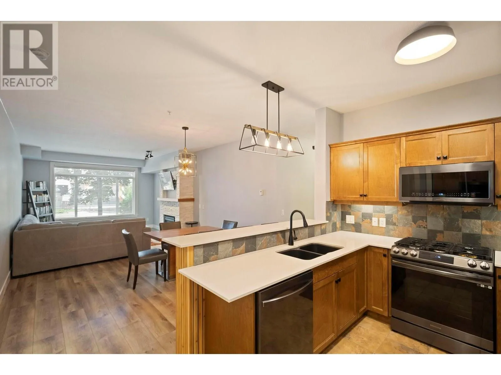 Come one come all! This beautifully updated pet friendly ground floor condo offers over 1100 sq. ft. of spacious living space, featuring 2 bedrooms and 2 bathroomsâperfect for comfortable living or a smart investment opportunity.Step inside to an open-concept layout that seamlessly connects the living, dining, and kitchen areas. Enjoy peaceful evenings by the gas fireplace, and the convenience of in-suite laundry. The kitchen is ready for you to host & cook up your amazing meals with ease, having a formal dining area, beautiful bar counter space & lots cupboard space to choose from.The covered patio welcomes you & includes a gas BBQ hookup for easy outdoor cooking or to just relax & unwind at the end or at the start of your day. Additional perks include a storage locker on the same floor, bike storage, and one secure underground parking spot.The Clubhouse features a full kitchen, fitness room, and guest suiteâideal for entertaining or hosting family or visitors. Located close to Okanagan & Kalamalka lake, multiple easy access scenic walking & hiking trails right out your front door, close to the Kelowna Airport, UBCO campus, local restaurants & amenities, boat launches & more! (id:27476)