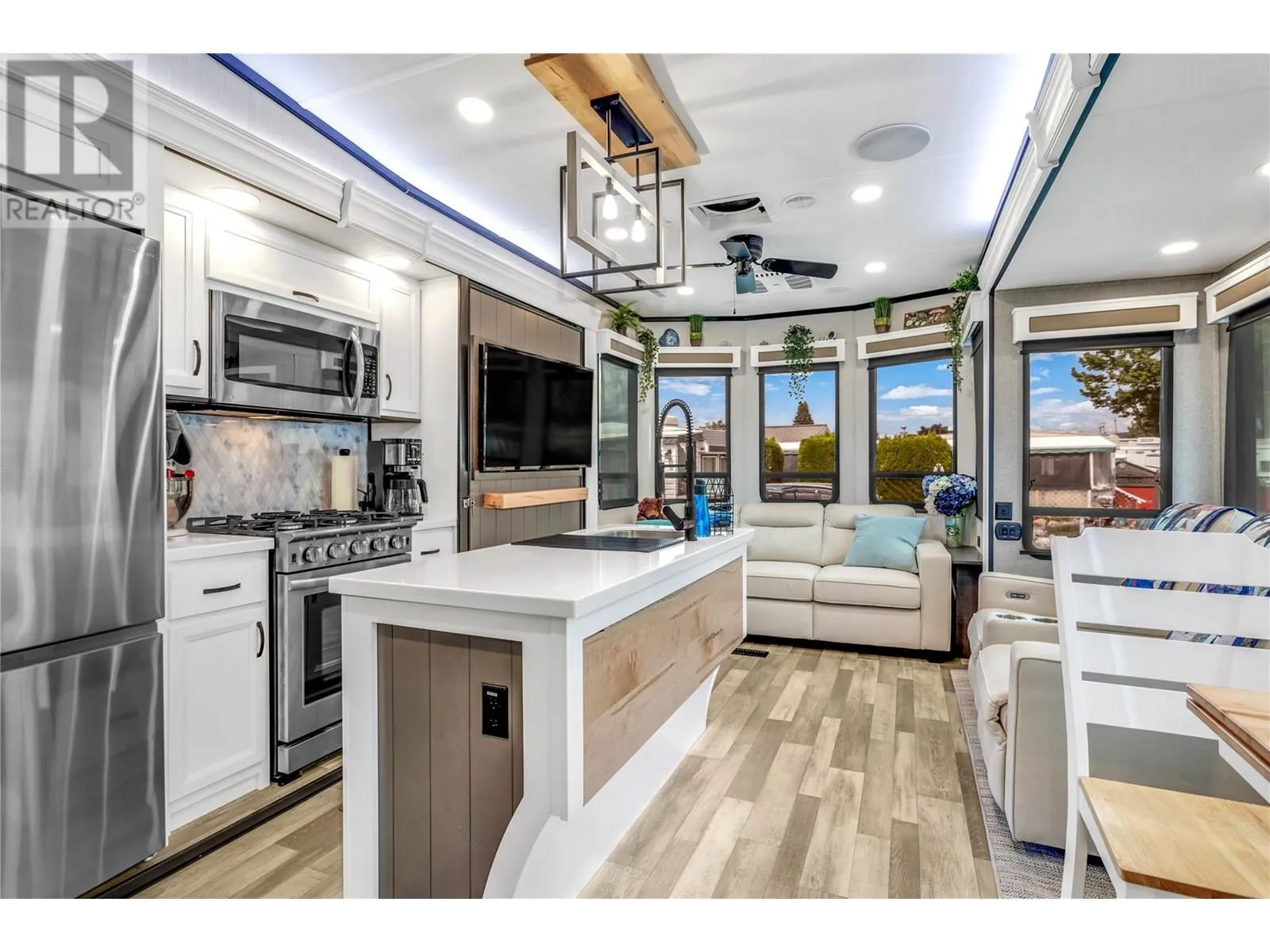Looking for a year round slice of ""Holiday Style"" living? This is your place! This Destination Model-COTTAGE by Cedar Creek is a FULLY WINTERIZED year round model. It is immaculate and features numerous upgrades: Custom built-in pantry, water softener/filtration throughout, central vac, dbl awnings, 2 A/C units, gorgeous laminate flooring and more. ""True"" Gelcoat Exterior (The Best), All Aluminum Superstructure & 3M Bonded sidewalls. This home is immaculate with 1 bedroom on the main floor and a loft area upstairs which is great for company, or added storage or a hobby area. Kitchen/Living GREAT room has a beautiful island, lots of seating and bright dbl pane windows, a fireplace and glamorous stainless steel appliances. Gorgeous outdoor patio and gazebo with an additional storage shed. Lots of parking nearby and close to the GOLF course, RECREATION complex where you will find the indoor POOL, hot tub, gym, hair salon, washrooms and sauna. Other amenities in Holiday Park Resort are pickleball court, pools, hot tubs, library, games room, shuffleboard, woodworking shop. Lease to 2046 which is registered with the Federal Government. Pet friendly park includes a fenced in, off-leash dog park. The Maintenance Fee, payable in January of each year is $4911.74. This includes security 24-7, water, sewer, use of the amenities, maintenance of the common areas and roads, snow removal and garbage disposal area. There is no Property Transfer Tax. Short & long term rentals allowed. (id:27476)