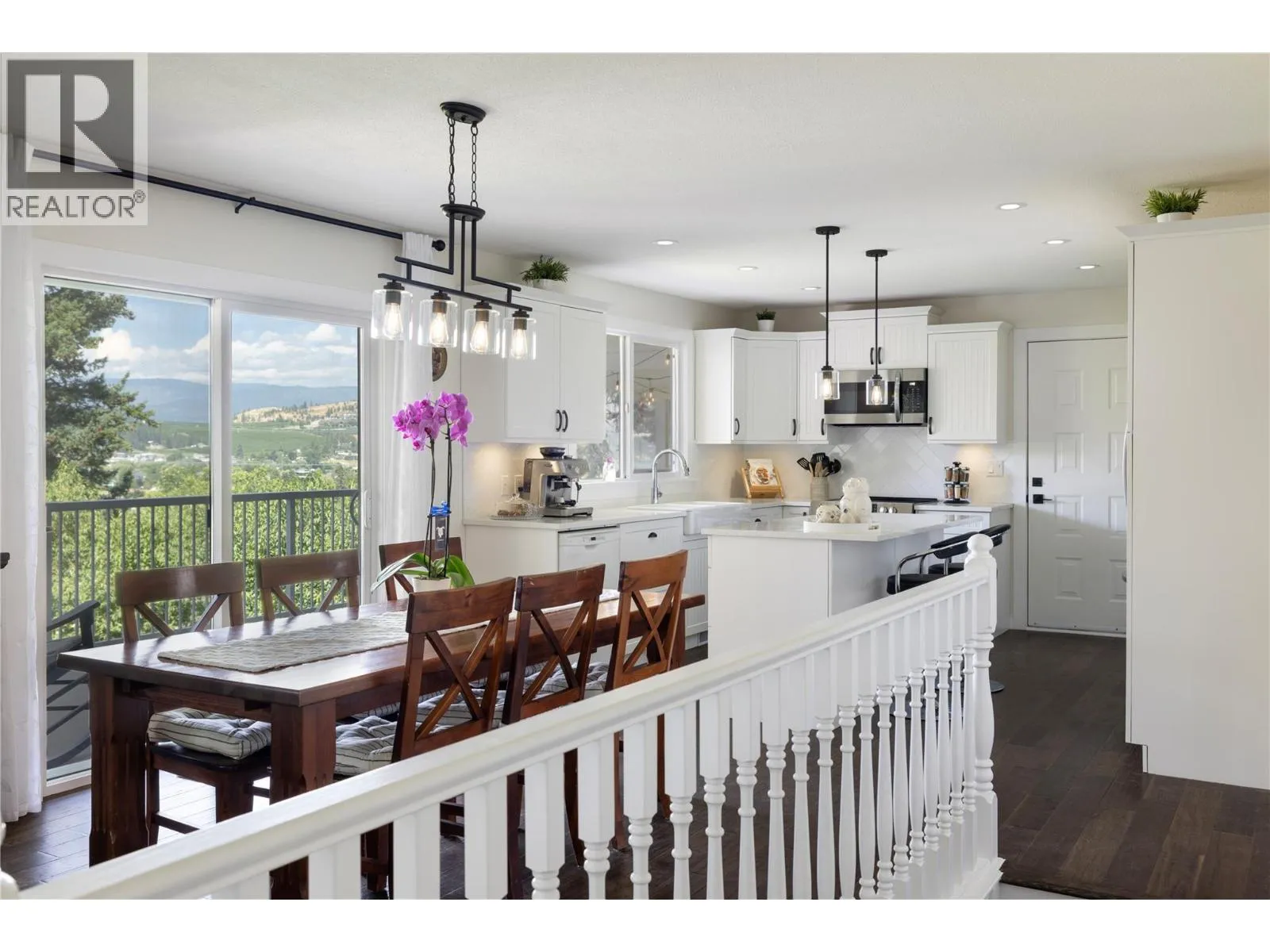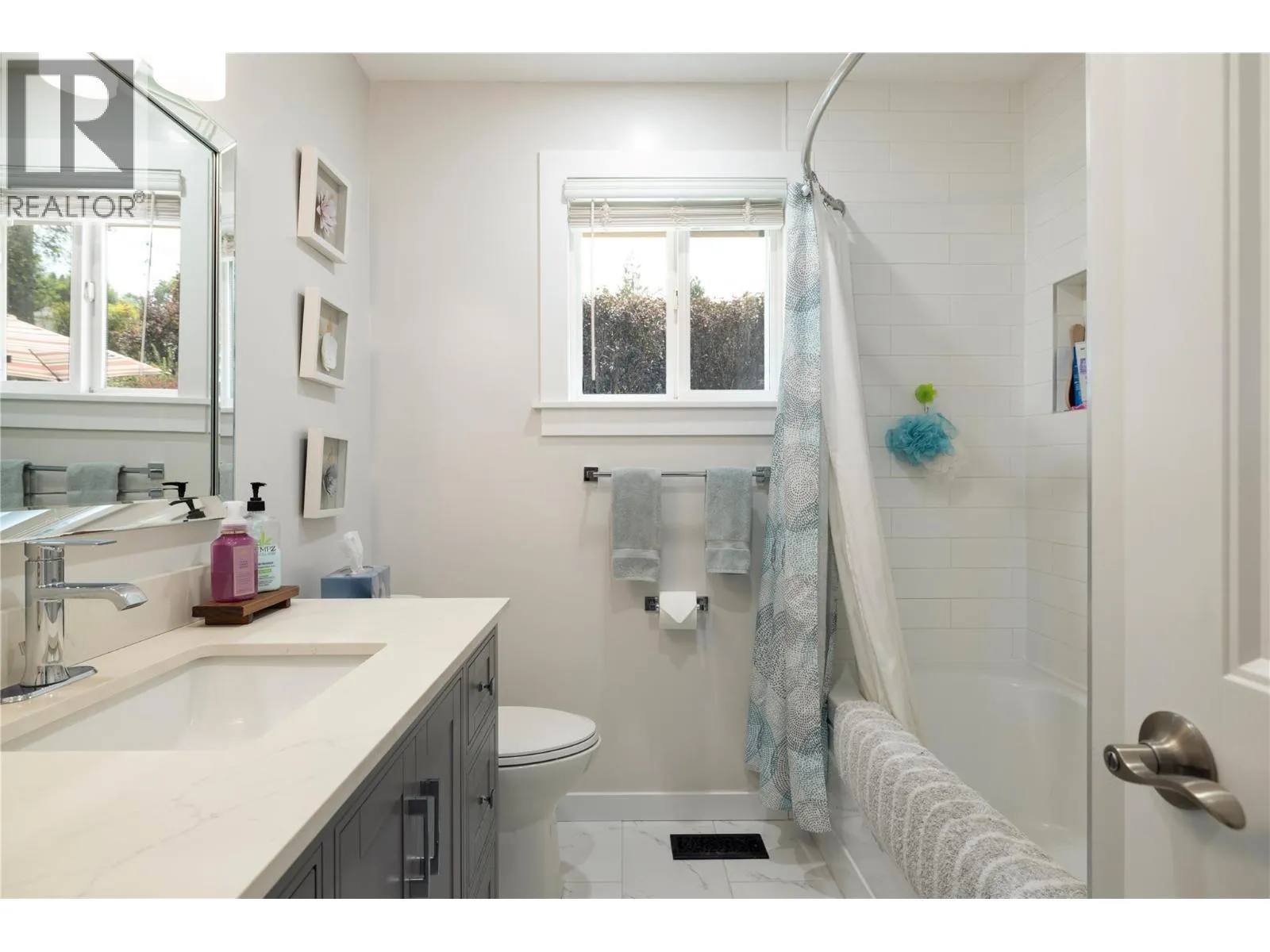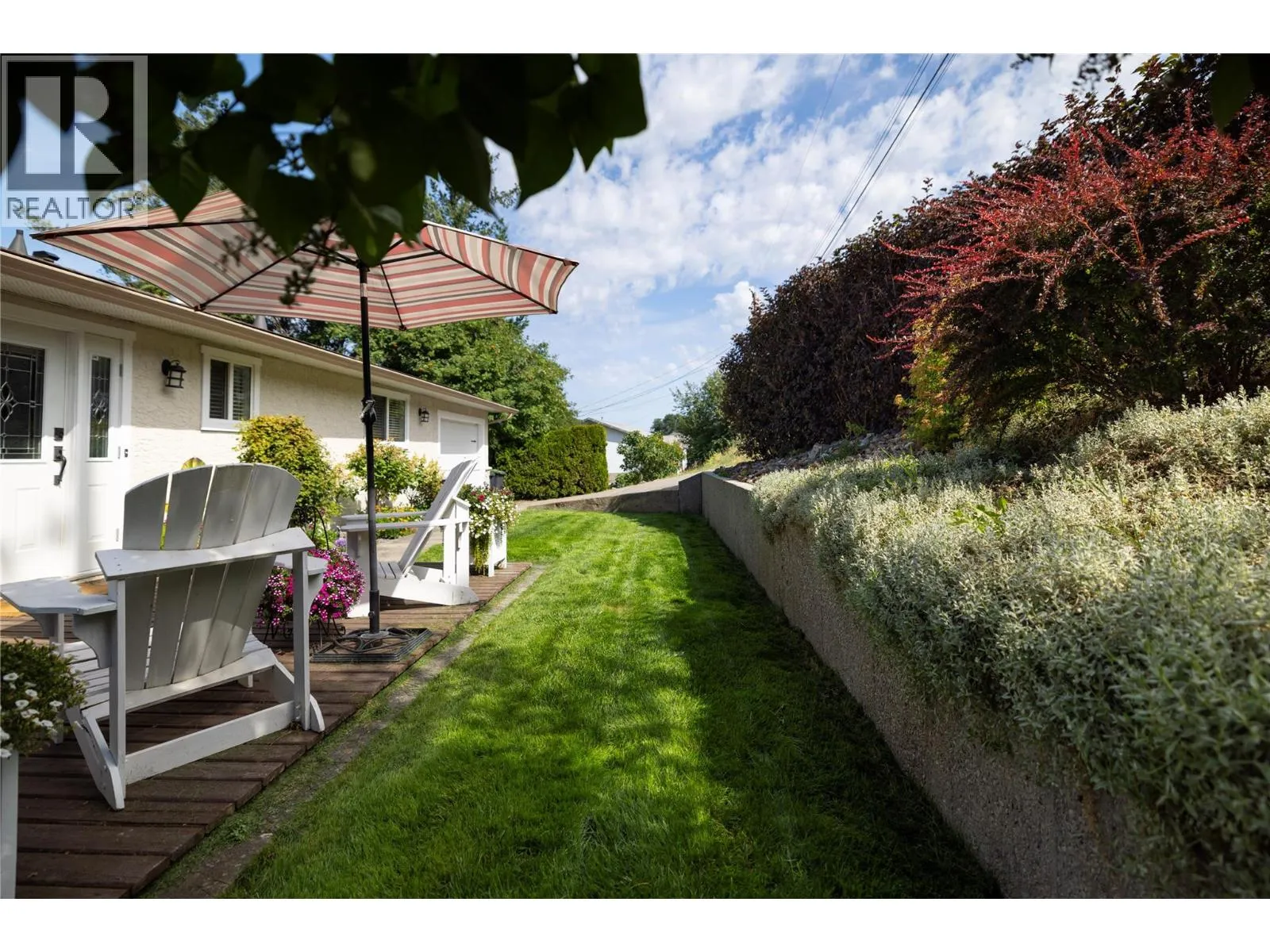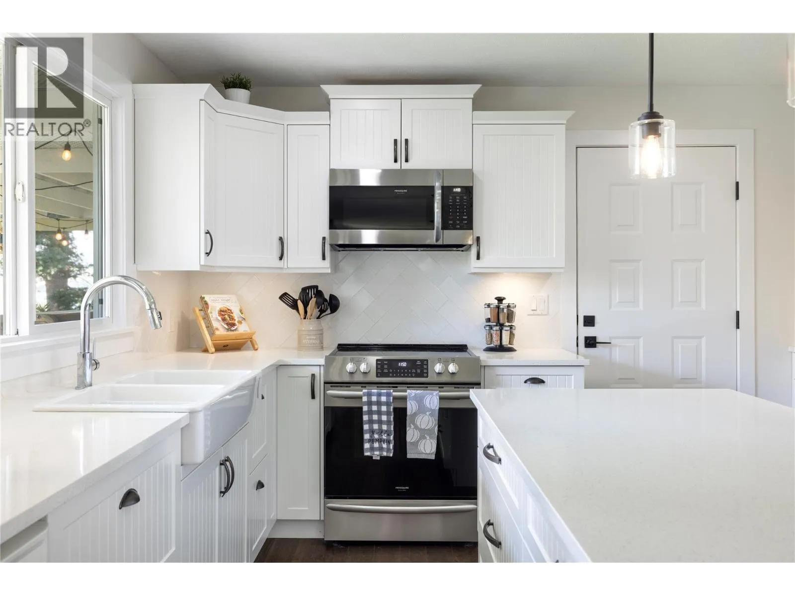 This beautifully updated 4-bedroom, 2-bathroom home offers over 2,200 sq ft of finished living space across two levels. A welcoming front patio leads you into the bright, open-concept main floor featuring a fully renovated kitchen with quartz countertops, custom cabinetry, under cabinet lighting, tile backsplash, and upgraded appliances (+brand new s/s dishwasher). Hardwood flooring, herringbone tile, upgraded trim, and custom window ledges add warmth and character throughout. Both main level bedrooms include built-in custom closet organizers. The main bathroom was fully renovated in 2022 and the lower bath in 2025. The lower level offers a spacious rec room, home office, large laundry room with storage, and two additional bedrooms. The professionally landscaped yard includes irrigation, a shed, and a powered workshop, with plenty of room for a pool. Outdoor living shines with three deck areas, including an upper deck off the main living space and a private lower patio leading to the yard. Additional upgrades include all new windows, stucco, paint, LED lighting, and a carport converted to a fully enclosed garage. Located in a quiet, family-friendly neighbourhood close to parks, schools, trails, and Okanagan Lake, this move-in ready home blends comfort, style, and convenience, offering the perfect space to relax, entertain, and enjoy the best of the Okanagan lifestyle, all within minutes of local wineries, golf, and stunning beaches. Detailed upgrade list available by request. (id:27476)