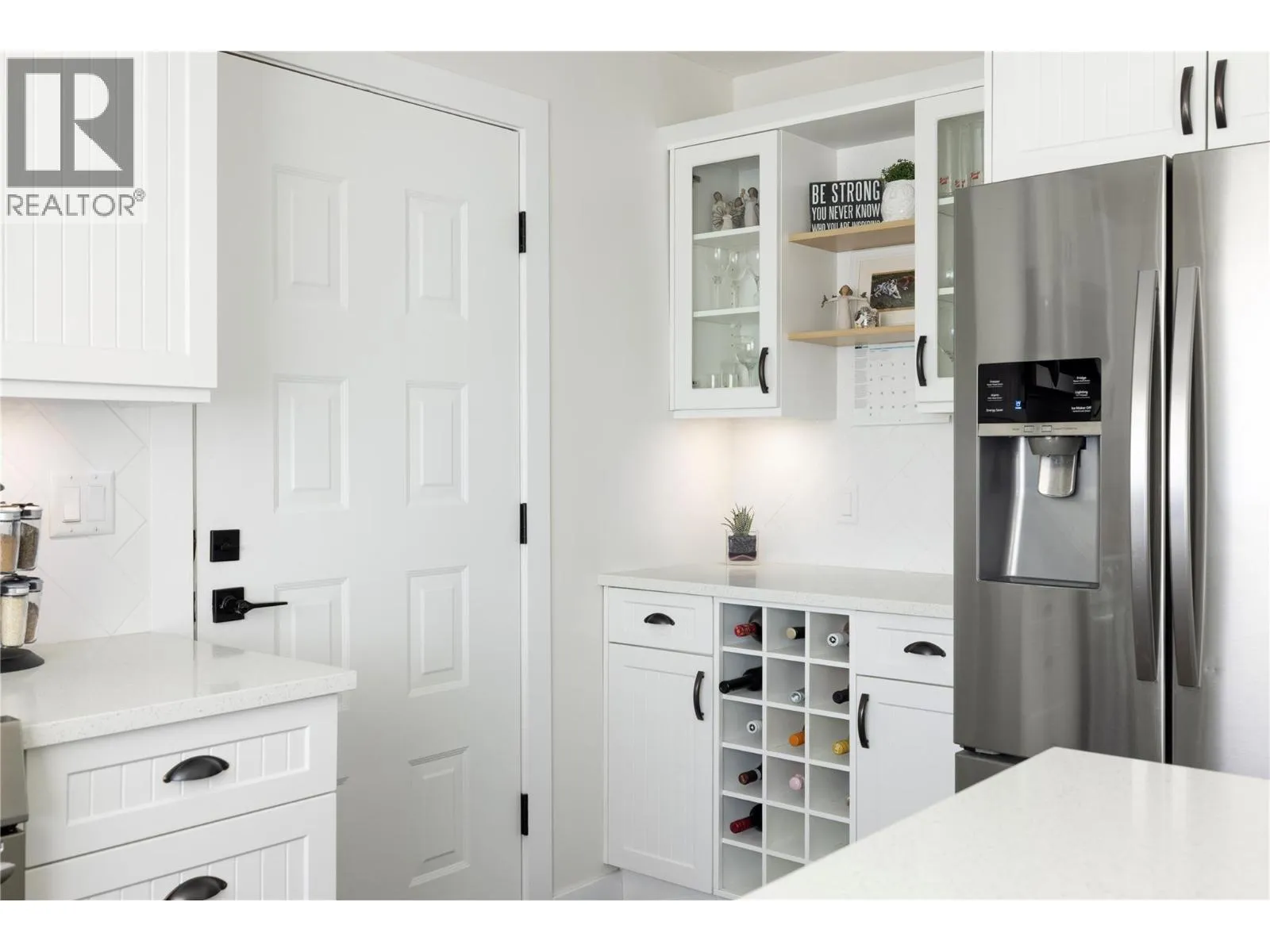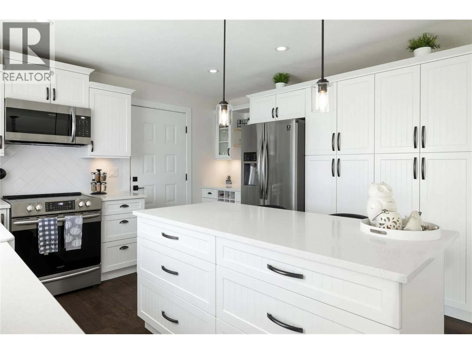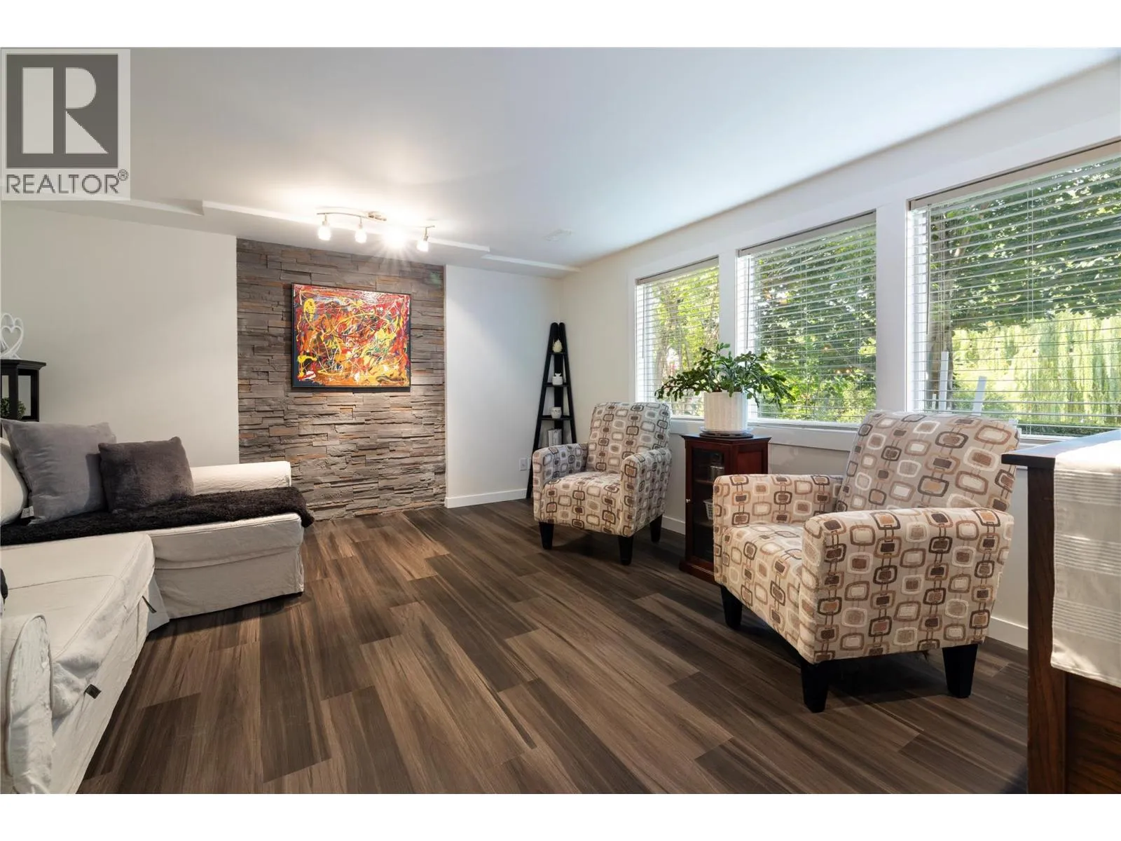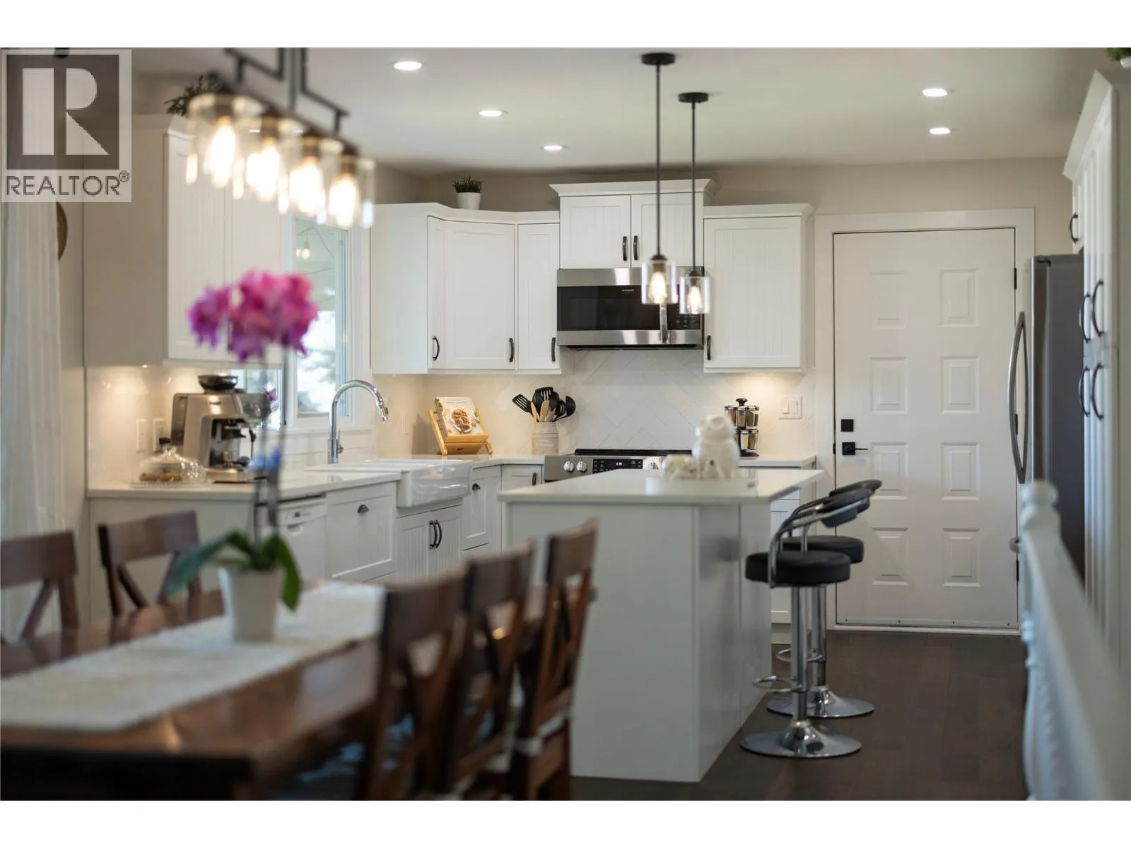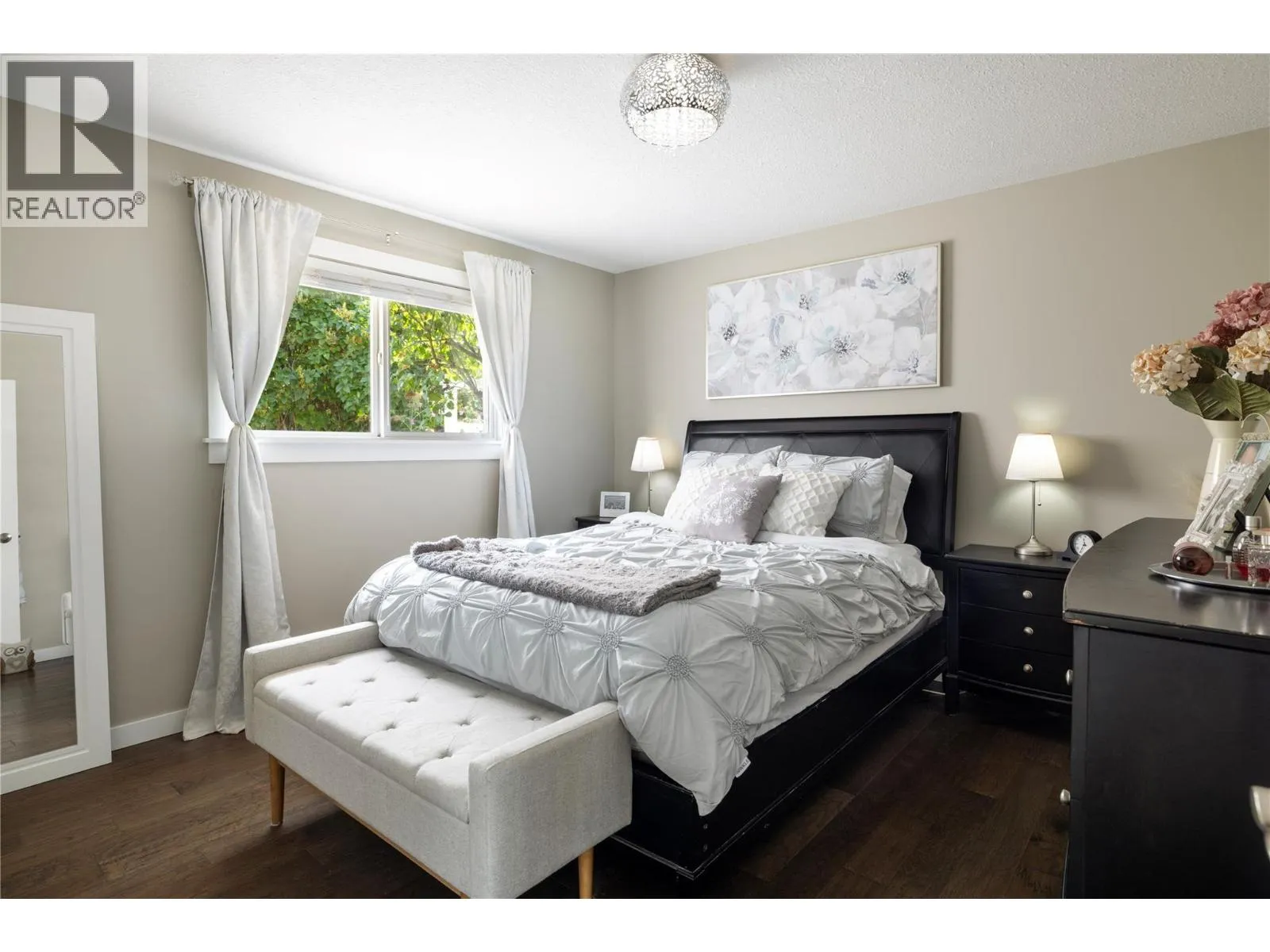 This beautifully updated 4-bedroom, 2-bathroom home offers over 2,200 sq ft of finished living space across two levels. A welcoming front patio leads you into the bright, open-concept main floor featuring a fully renovated kitchen with quartz countertops, custom cabinetry, under cabinet lighting, tile backsplash, and upgraded appliances (+brand new s/s dishwasher). Hardwood flooring, herringbone tile, upgraded trim, and custom window ledges add warmth and character throughout. Both main level bedrooms include built-in custom closet organizers. The main bathroom was fully renovated in 2022 and the lower bath in 2025. The lower level offers a spacious rec room, home office, large laundry room with storage, and two additional bedrooms. The professionally landscaped yard includes irrigation, a shed, and a powered workshop, with plenty of room for a pool. Outdoor living shines with three deck areas, including an upper deck off the main living space and a private lower patio leading to the yard. Additional upgrades include all new windows, stucco, paint, LED lighting, and a carport converted to a fully enclosed garage. Located in a quiet, family-friendly neighbourhood close to parks, schools, trails, and Okanagan Lake, this move-in ready home blends comfort, style, and convenience, offering the perfect space to relax, entertain, and enjoy the best of the Okanagan lifestyle, all within minutes of local wineries, golf, and stunning beaches. Detailed upgrade list available by request. (id:27476)