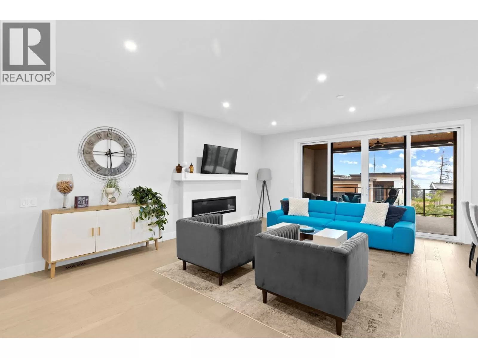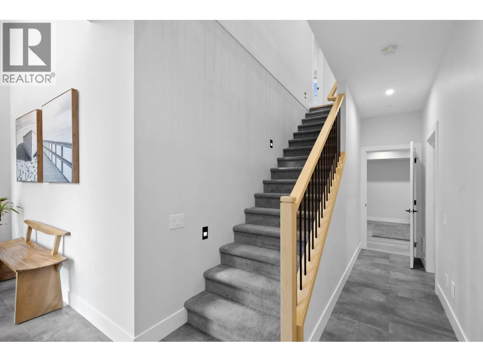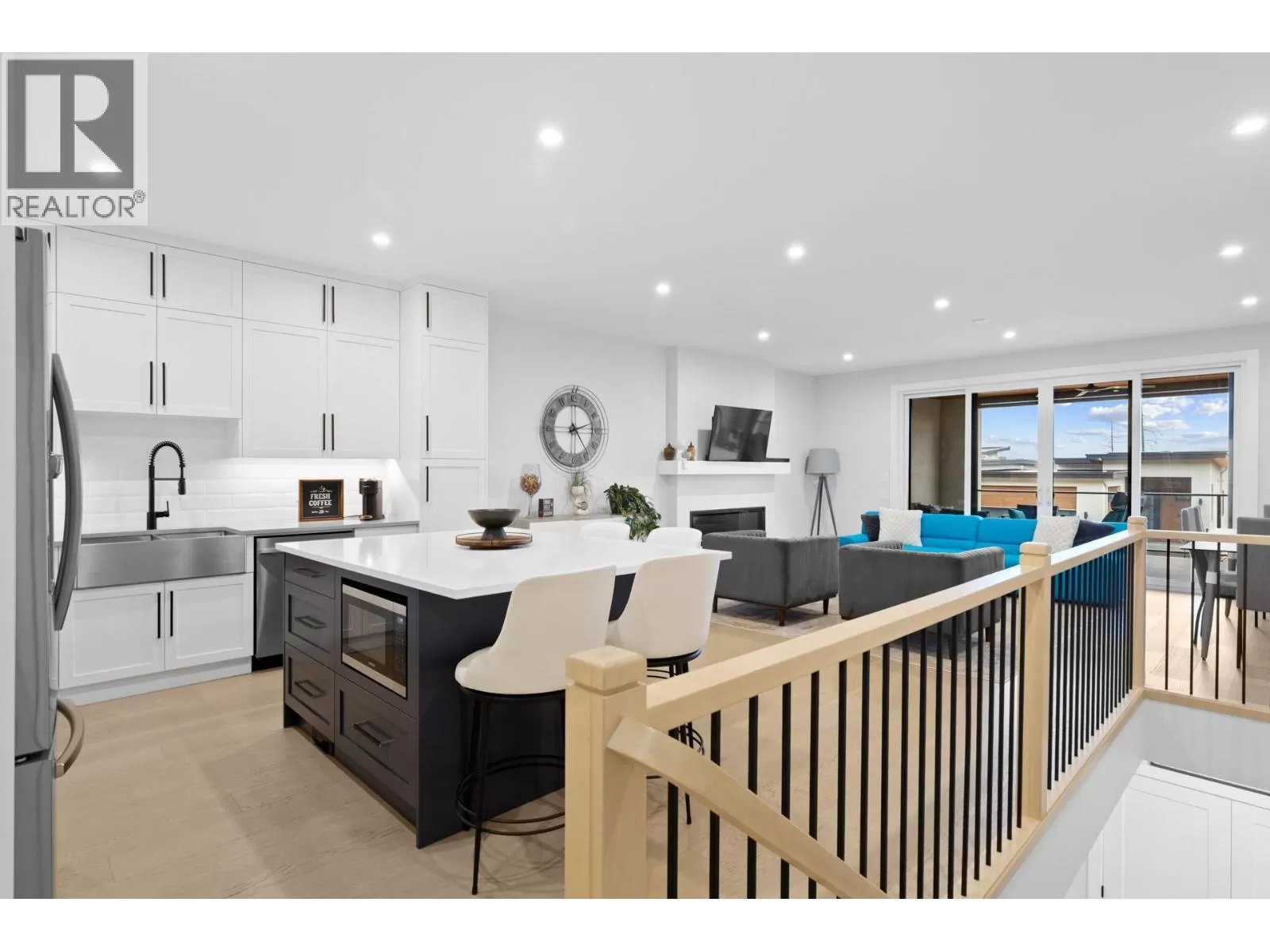 Experience the best of Okanagan living in Lakestone Villas, part of the stunning, amenity-rich Lakestone community. This contemporary 3-bedroom, 3-bathroom home, built by Carrington Homes, blends modern elegance with everyday convenience and is still covered under New Home Warranty. The open-concept main floor is both stylish and functional. The chef-inspired kitchen boasts quartz countertops, shaker-style cabinetry, stainless steel appliances, and an oversized island with a built-in wine fridgeâperfect for entertaining. The dining and living areas flow effortlessly into a spacious covered balcony, complete with a ceiling fan, remote-control privacy screens, and a gas BBQ hookup with peekaboo lake viewsâoffering true seamless indoor-outdoor living. The home is also professionally landscaped, adding a finished, well-maintained touch. Upstairs, youâll find two bedrooms and two bathrooms, including a luxurious primary suite with a spa-like ensuite featuring heated floors, a soaker tub, double vanity, and walk-in closet. The lower level includes an additional bedroom and full bathroom, ideal for guests or a home office, as well as a large rec room offering flexibility as a media room, games room, or additional living space. As a Lakestone resident, youâll enjoy resort-style amenities: multiple outdoor pools, hot tubs, fitness facilities, a yoga studio, pickleball and tennis courts, a basketball court, BBQ areas, a swim dock, and beach accessâall for a low monthly fee. Perfectly located, this sought-after community combines peace and privacy with close proximity to beaches, hiking trails, wineries, UBCO, the airport, and more. This home offers the ultimate balance of luxury, lifestyle, and location. (id:27476)