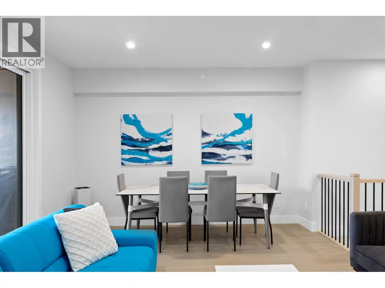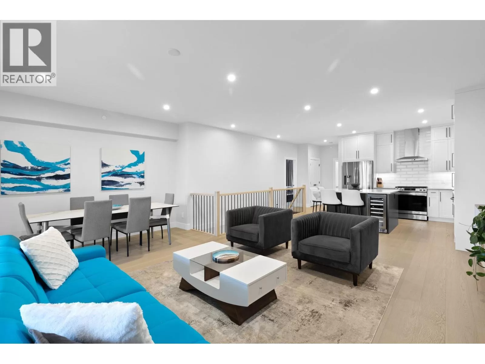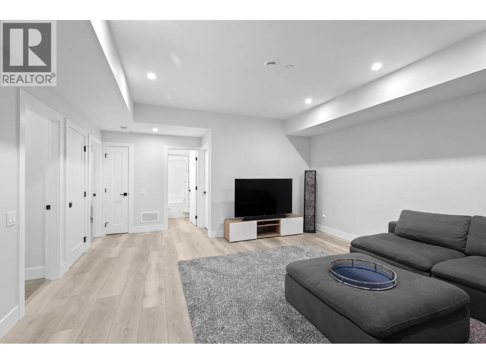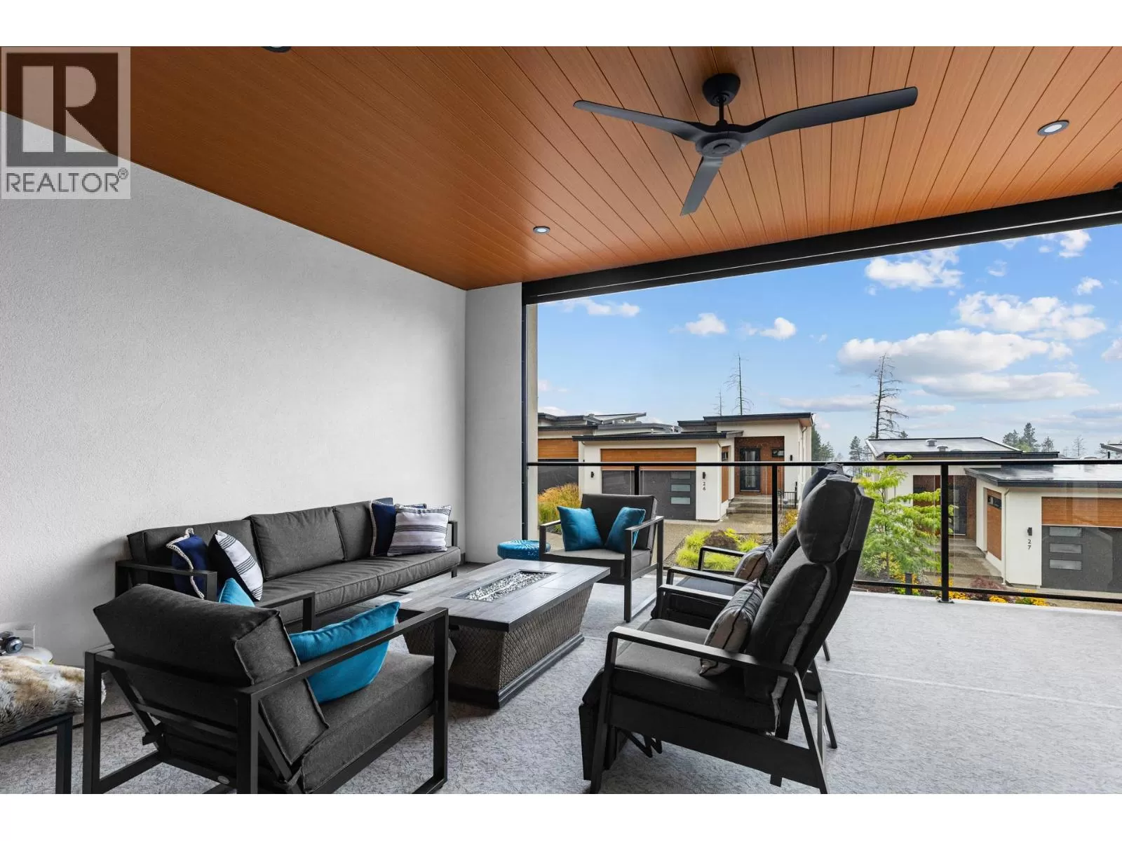 Experience the best of Okanagan living in Lakestone Villas, part of the stunning, amenity-rich Lakestone community. This contemporary 3-bedroom, 3-bathroom home, built by Carrington Homes, blends modern elegance with everyday convenience and is still covered under New Home Warranty. The open-concept main floor is both stylish and functional. The chef-inspired kitchen boasts quartz countertops, shaker-style cabinetry, stainless steel appliances, and an oversized island with a built-in wine fridgeâperfect for entertaining. The dining and living areas flow effortlessly into a spacious covered balcony, complete with a ceiling fan, remote-control privacy screens, and a gas BBQ hookup with peekaboo lake viewsâoffering true seamless indoor-outdoor living. The home is also professionally landscaped, adding a finished, well-maintained touch. Upstairs, youâll find two bedrooms and two bathrooms, including a luxurious primary suite with a spa-like ensuite featuring heated floors, a soaker tub, double vanity, and walk-in closet. The lower level includes an additional bedroom and full bathroom, ideal for guests or a home office, as well as a large rec room offering flexibility as a media room, games room, or additional living space. As a Lakestone resident, youâll enjoy resort-style amenities: multiple outdoor pools, hot tubs, fitness facilities, a yoga studio, pickleball and tennis courts, a basketball court, BBQ areas, a swim dock, and beach accessâall for a low monthly fee. Perfectly located, this sought-after community combines peace and privacy with close proximity to beaches, hiking trails, wineries, UBCO, the airport, and more. This home offers the ultimate balance of luxury, lifestyle, and location. (id:27476)