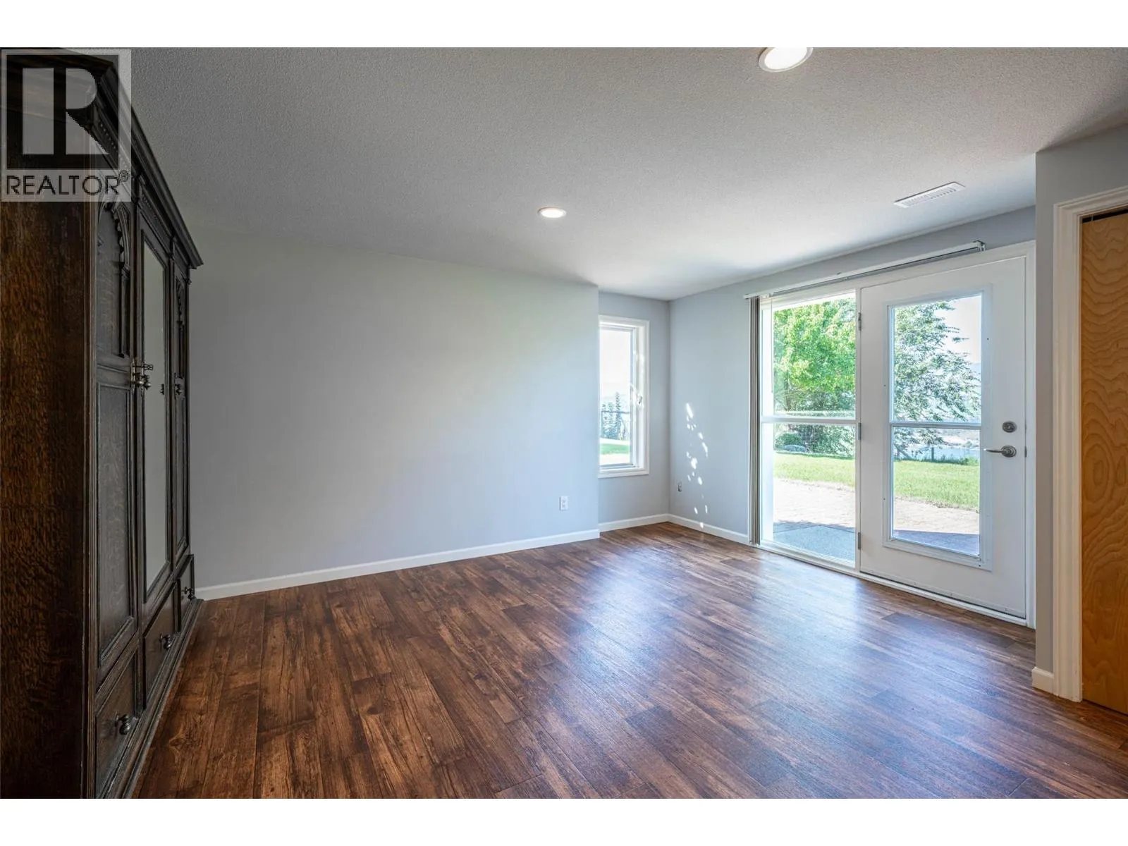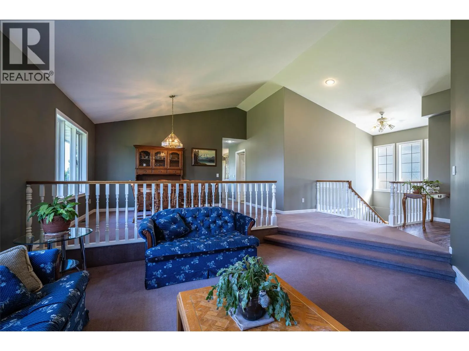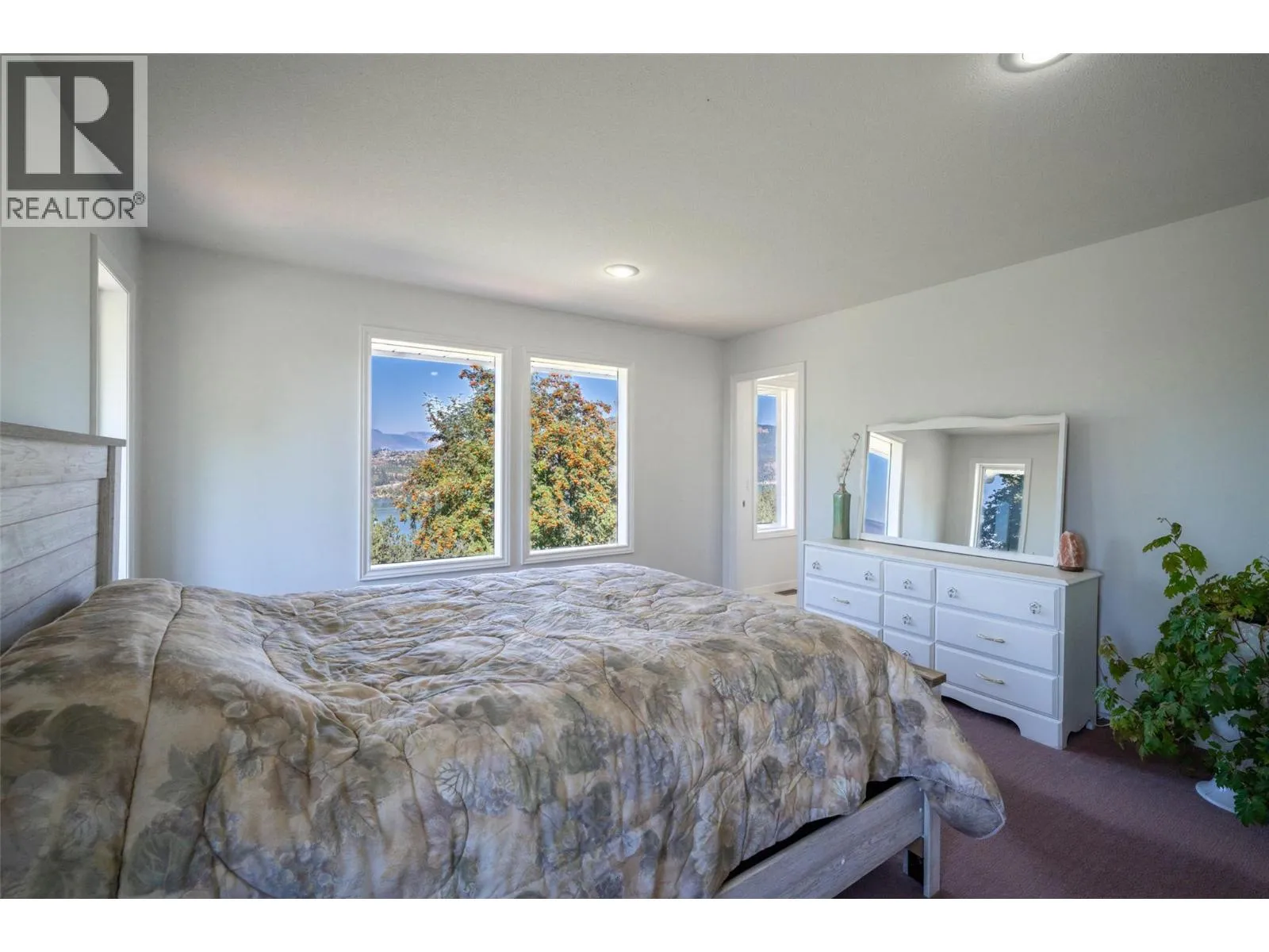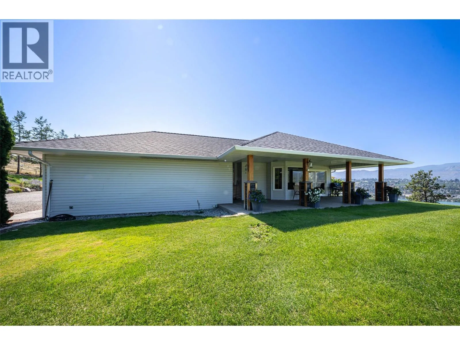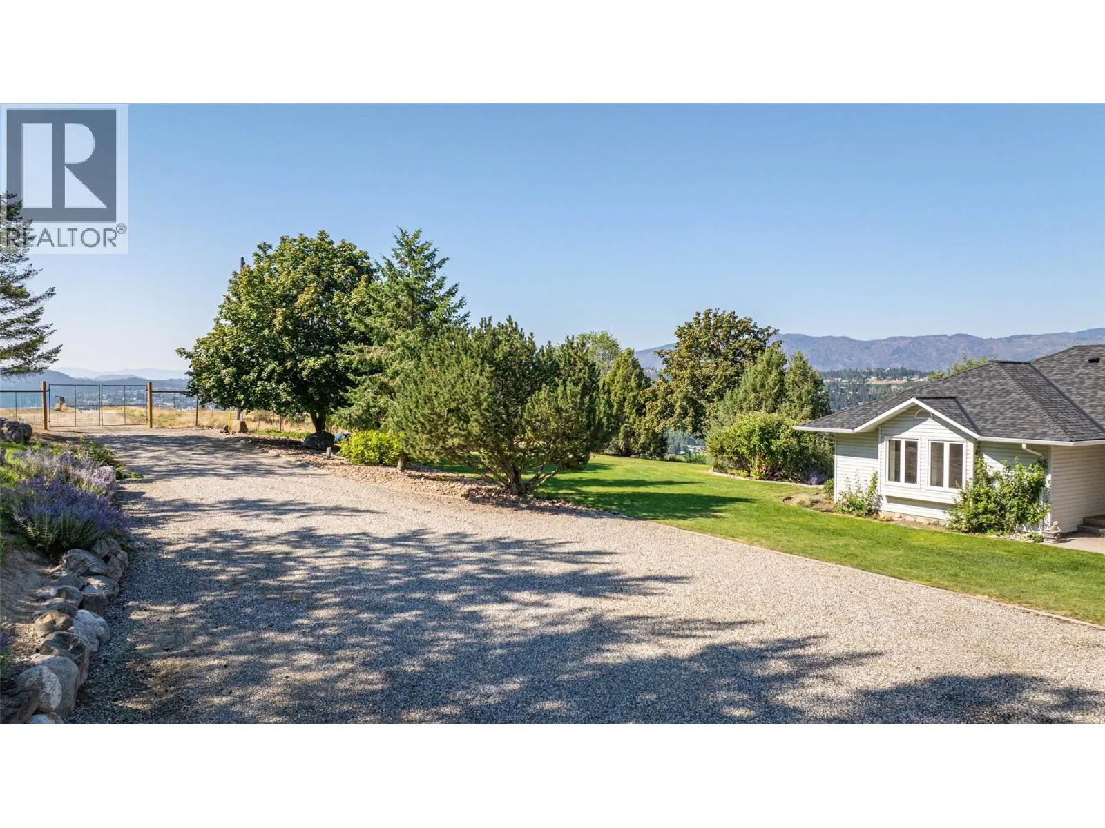 Come and enjoy the remarkable Valley views from this private 10 acre property overlooking Wood Lake. Large 4 bed/3 bath level entry rancher home with full walkout basement with self contained 1 bedroom suite. Backing onto a vineyard and located at the end of a no-through road this acreage allows you the privacy everyone desires with the convenience of being only 5 minutes to shopping, dining, rail trails and public beaches. The main level of the home has open kitchen / family room featuring a decorative gas fireplace and direct access to the covered patio to enjoy your morning coffee. Down the short hall is the dining room, sunken living room with vaulted ceilings along with ample windows to enjoy those views. At the south end of the home is the primary bedroom with a 3 pce. ensuite bath. 2 other bedrooms are located across the hall. Downstairs is the bright 1 bed/1 bath in-law suite with private rear entrance, vacant and ready for family or guests. Also on this lower level is a large family room, laundry, mechanical room with 200 amp service, gas furnace with central A/C. There is a detached, insulated double garage with covered breezeway 23'x23'. Easy maintenance mature landscaping and lawns surround the home with the convenience of underground sprinklers. Water is supplied by Alto Utilities with additional supply from a drilled well located at the bottom of the property off Oyama Rd. Access to the property at the end of Darlene Rd. (id:27476)