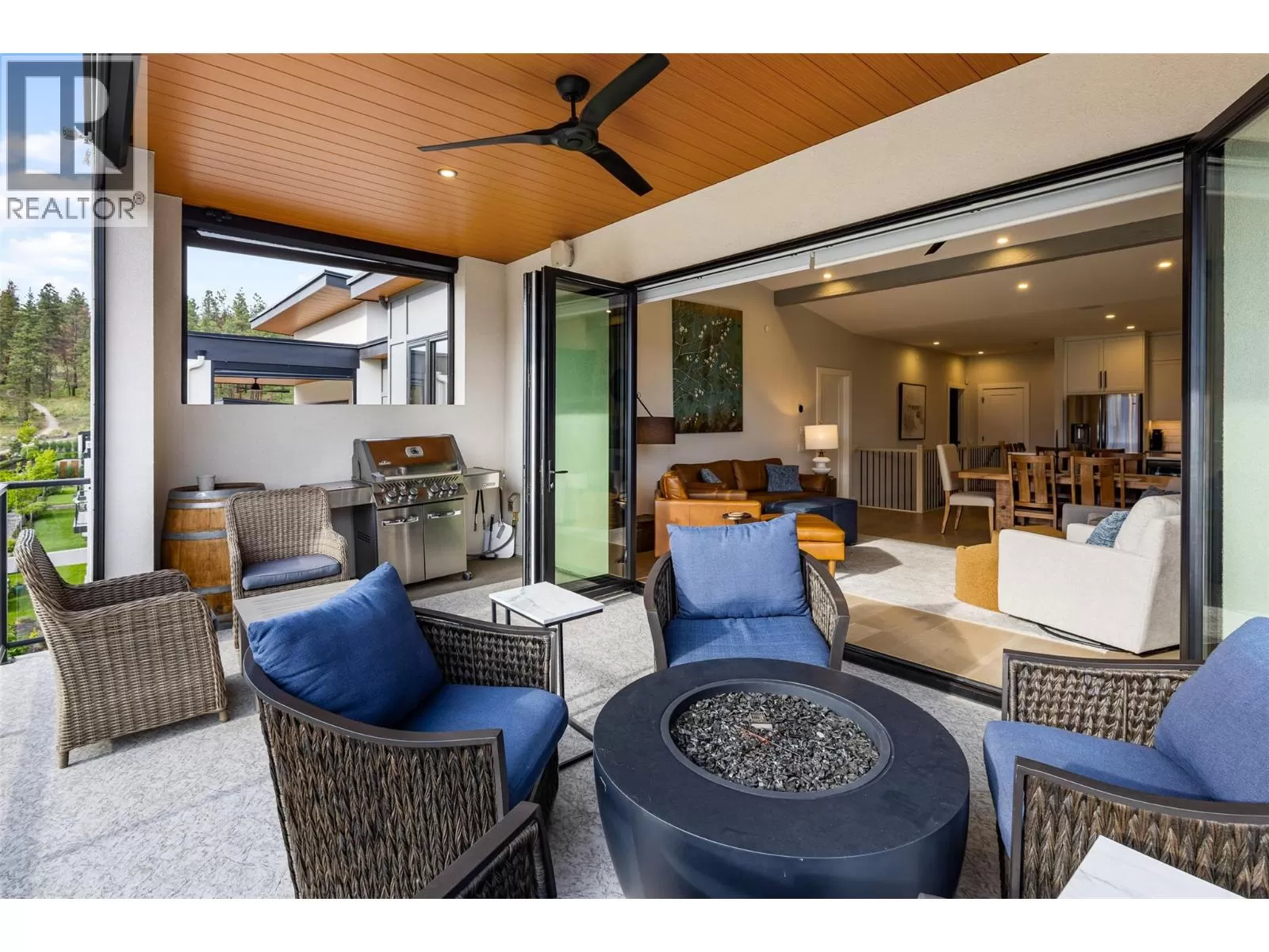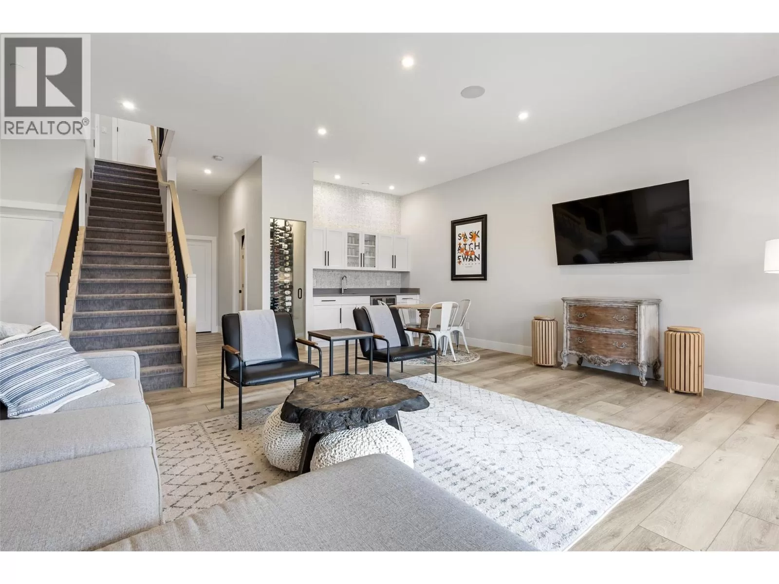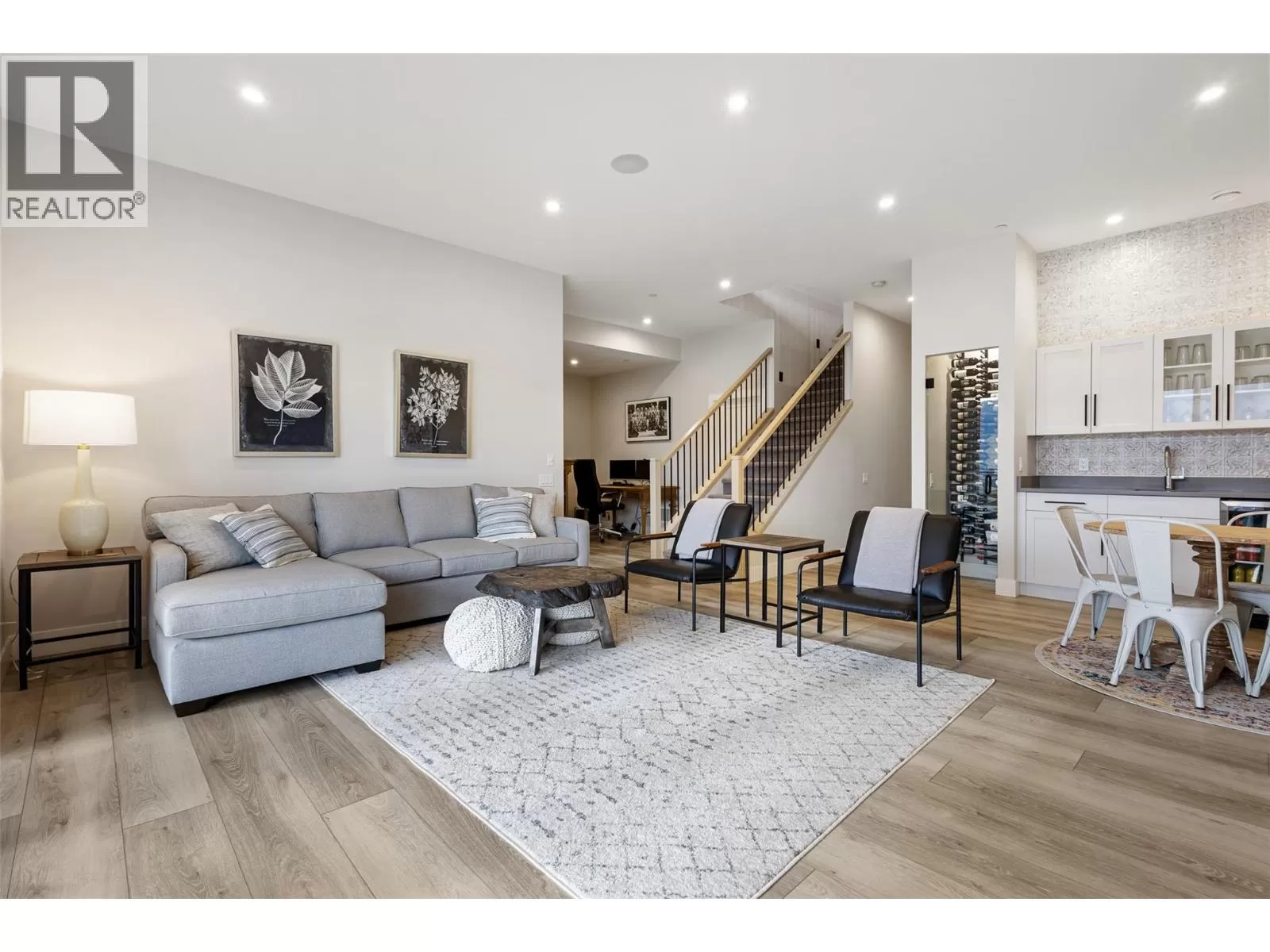 Dream retreat in Lakestone âwhere elegance, comfort, and nature converge. With over $30,000 in upgrades, this home must be seen to be appreciated! This 3-bed + den, 3-bath walkout townhome comes fully-furnished & decorated for immediate, turn-key occupancy! Chefâs kitchen that inspires culinary creativity, with high-end stainless steel appliances, a gas range, wine fridge, & large island that invites connection and conversation with room for 4 stools. Rich wood flooring adds warmth, while the seamless layout invites you from the kitchen into a bright and airy living space, perfect for entertaining. Floor-to-ceiling gas fireplace with unique tile surround, wallpaper & beamed/vaulted ceilings make this home stand out from the rest. Nano-doors welcome the outside-in & frame peaceful views of the lush landscape, while the upper deckâwith its automated sunshadesâoffers a private escape. Primary suite is haven featuring a spa-style ensuite w/heated floors, dual sinks, deep soaker tub, and walk-in closet. Lower walkout level expands your living space with two generously sized bedrooms that both fit King sized-beds, stylish 5-pce bath, a private office/den, and a rec room ready for movie nights complete with wet bar and wine display! Step outside to a tranquil enclosed patio. Residents enjoy exclusive access to the Centre Club: outdoor pools, a gym, & sports courts. Whether youâre looking for a fulltime residence or a luxurious lock-and-leave option, this home offers refined living. (id:27476)