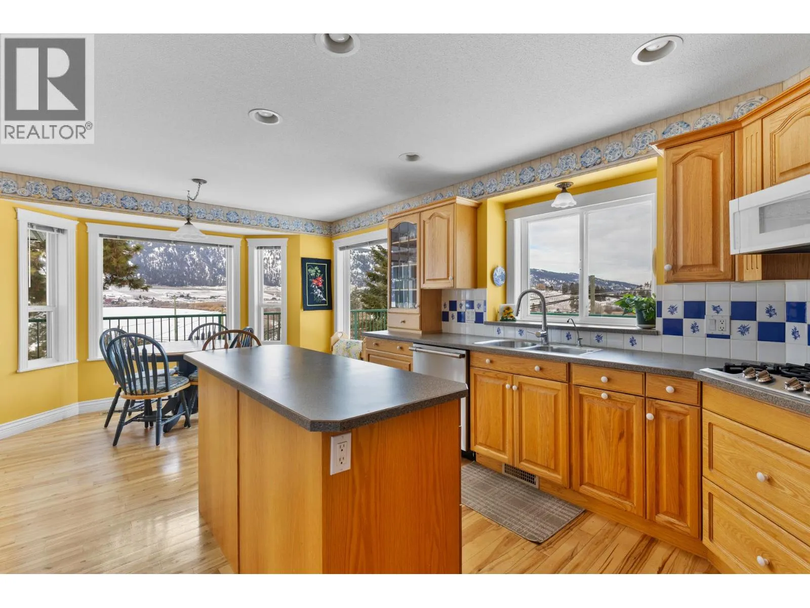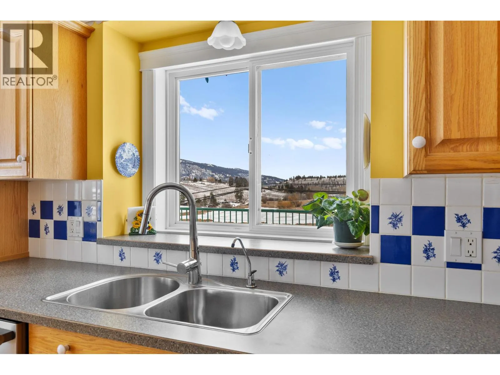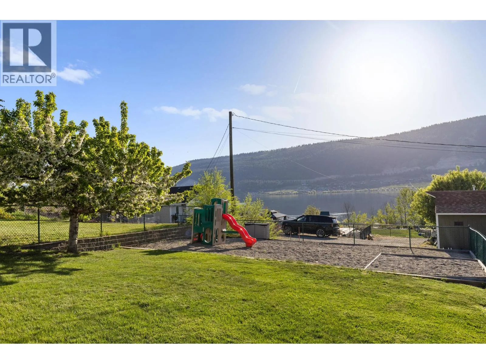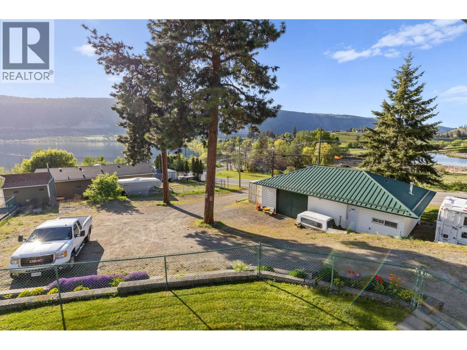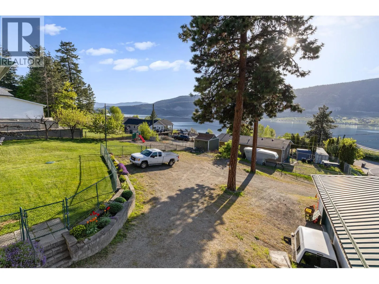 From the moment you arrive, you will be captivated by this charming property which is just steps from Wood & Kalamalka Lake. Set on a 0.618 corner acre lot, the home offers expansive mountain and great lake views all with elegant curb appeal. The thoughtfully designed wrap-around driveway welcomes you with a covered front porch and carport. A second driveway services the detached workshop and multiple garages, with ample parking for vehicles, a boat or an RV. Inside the residence built by Harmony Homes, you will find an expansive main floor featuring hardwood floors, as well as wide and accessible hallways and doorways. Enjoy the west facing deck off your main floor primary bedroom, wrapped beautifully around the kitchen for more entertaining space. Every detail has been considered for functionality and convenience, including a secondary entrance to turn this walk out basement into a one bedroom suite. The garage enters into the unfinished, spacious mechanical room and can easily be locked off for your own storage. Fenced in, irrigated yard offering a sanctuary of greenery and vibrant life. Mature ponderosa pines, fruit trees and grapevines create a stunning ambience, while a greenhouse and raised garden beds add to the propertyâs charm for gardening enthusiasts. The 80-amp heated workshop, includes wide-plank wood flooring, barn doors, an I-Beam and hot water on demand for the half bathroom. In proximity to boat launches, Kaloya Regional Park, the Okanagan Rail Trail and much more. (id:27476)