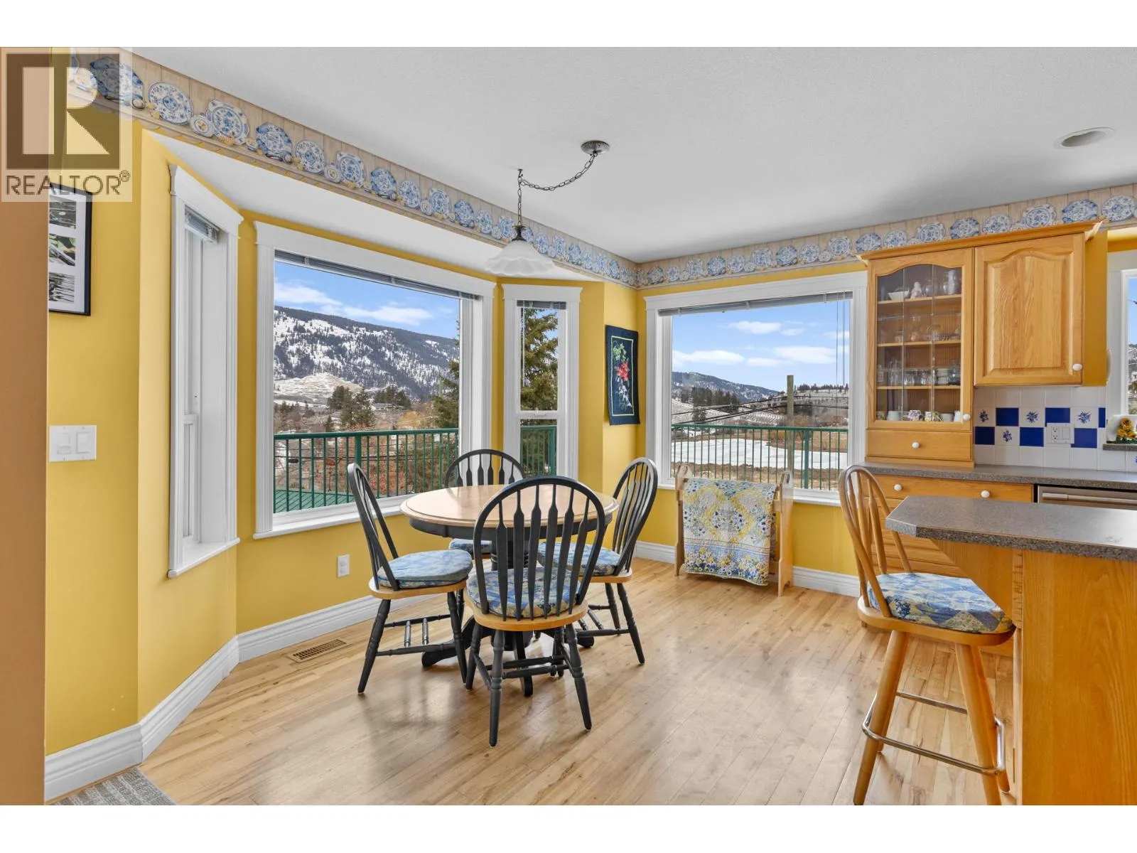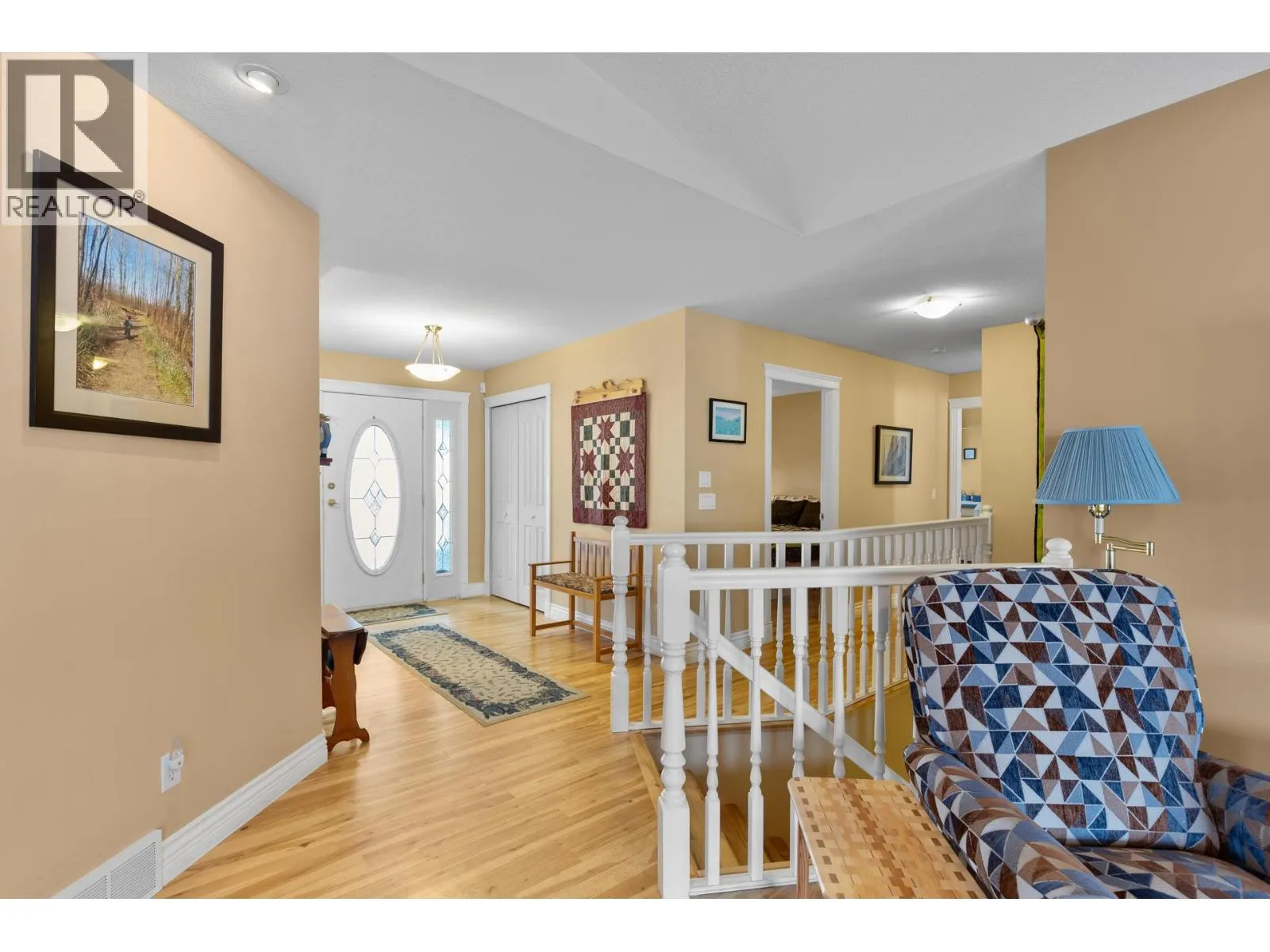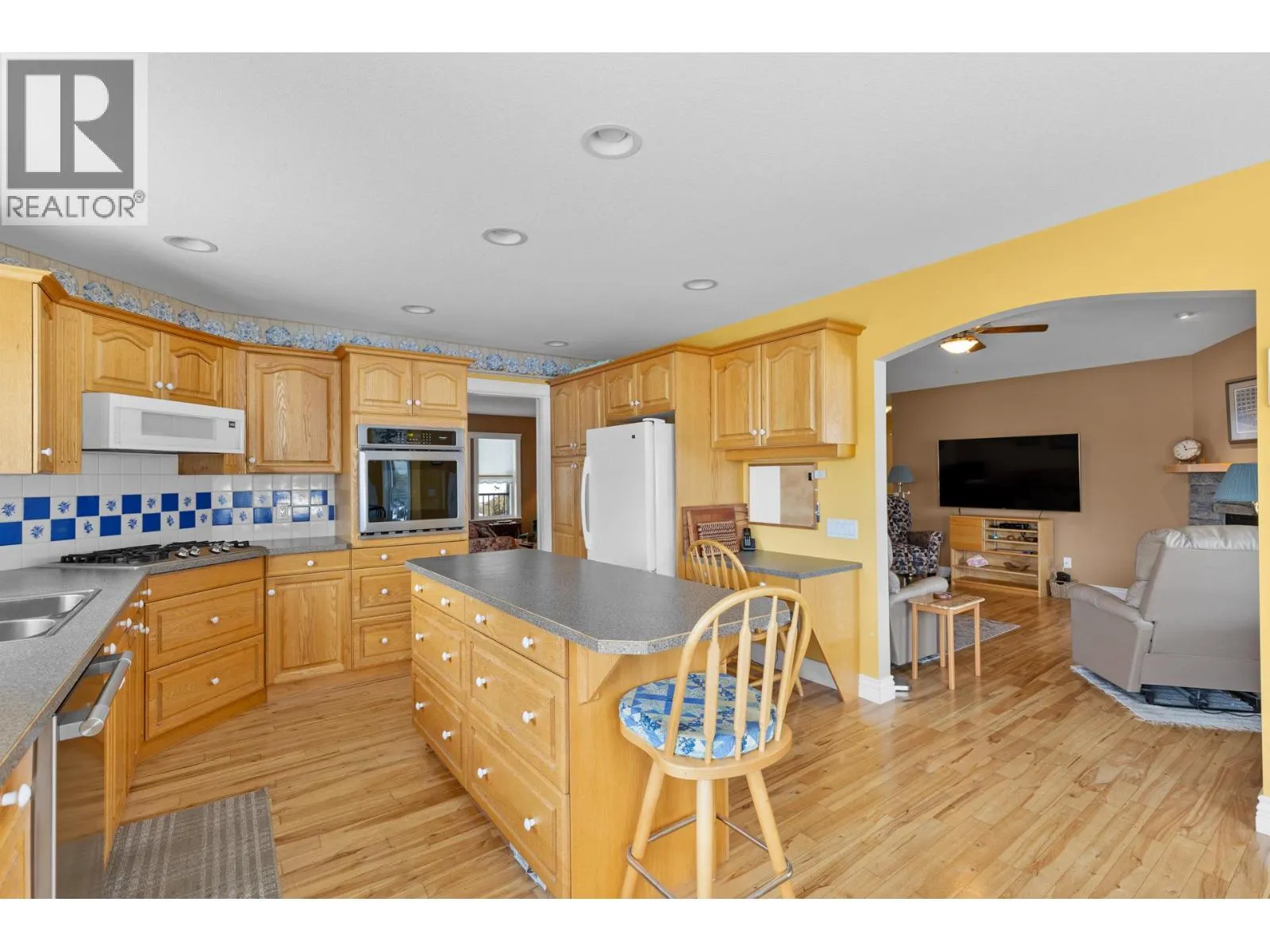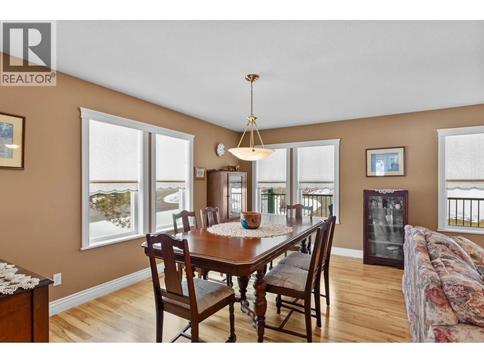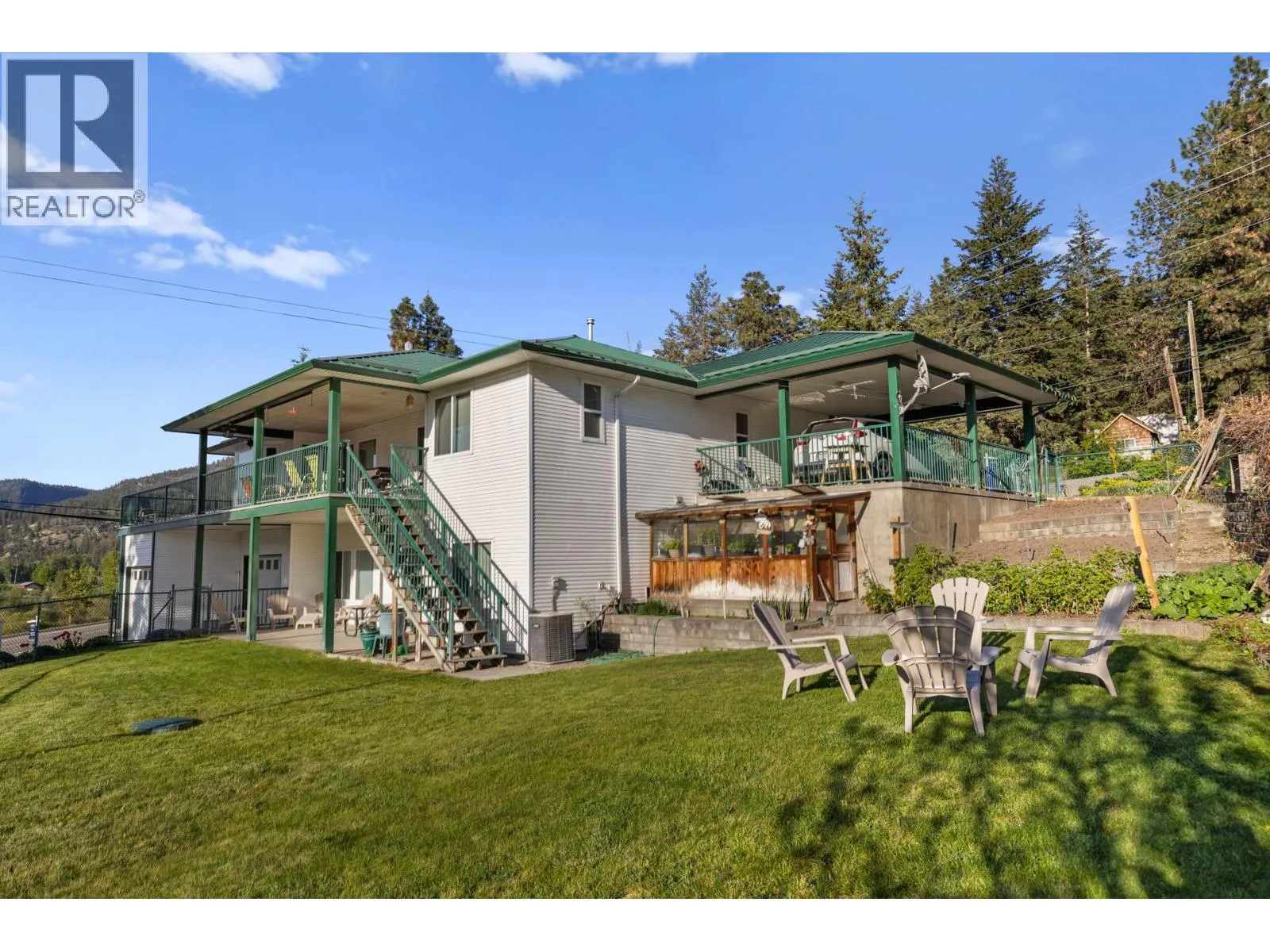 From the moment you arrive, you will be captivated by this charming property which is just steps from Wood & Kalamalka Lake. Set on a 0.618 corner acre lot, the home offers expansive mountain and great lake views all with elegant curb appeal. The thoughtfully designed wrap-around driveway welcomes you with a covered front porch and carport. A second driveway services the detached workshop and multiple garages, with ample parking for vehicles, a boat or an RV. Inside the residence built by Harmony Homes, you will find an expansive main floor featuring hardwood floors, as well as wide and accessible hallways and doorways. Enjoy the west facing deck off your main floor primary bedroom, wrapped beautifully around the kitchen for more entertaining space. Every detail has been considered for functionality and convenience, including a secondary entrance to turn this walk out basement into a one bedroom suite. The garage enters into the unfinished, spacious mechanical room and can easily be locked off for your own storage. Fenced in, irrigated yard offering a sanctuary of greenery and vibrant life. Mature ponderosa pines, fruit trees and grapevines create a stunning ambience, while a greenhouse and raised garden beds add to the propertyâs charm for gardening enthusiasts. The 80-amp heated workshop, includes wide-plank wood flooring, barn doors, an I-Beam and hot water on demand for the half bathroom. In proximity to boat launches, Kaloya Regional Park, the Okanagan Rail Trail and much more. (id:27476)