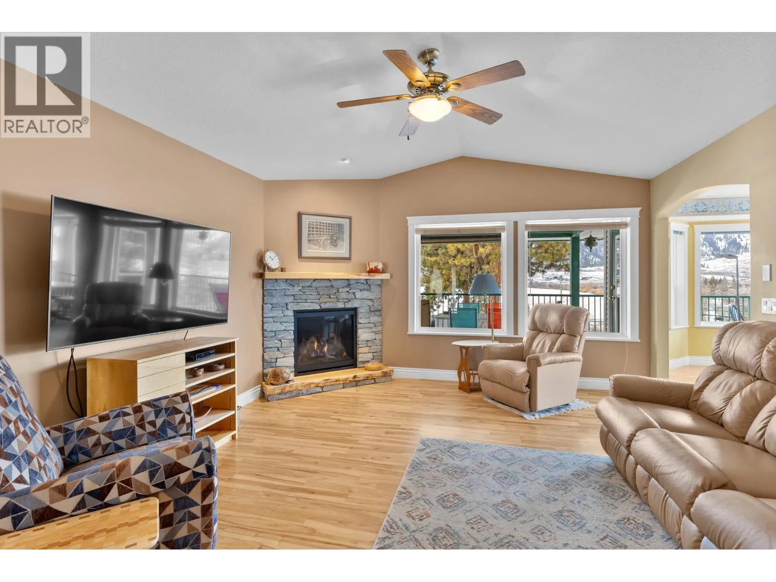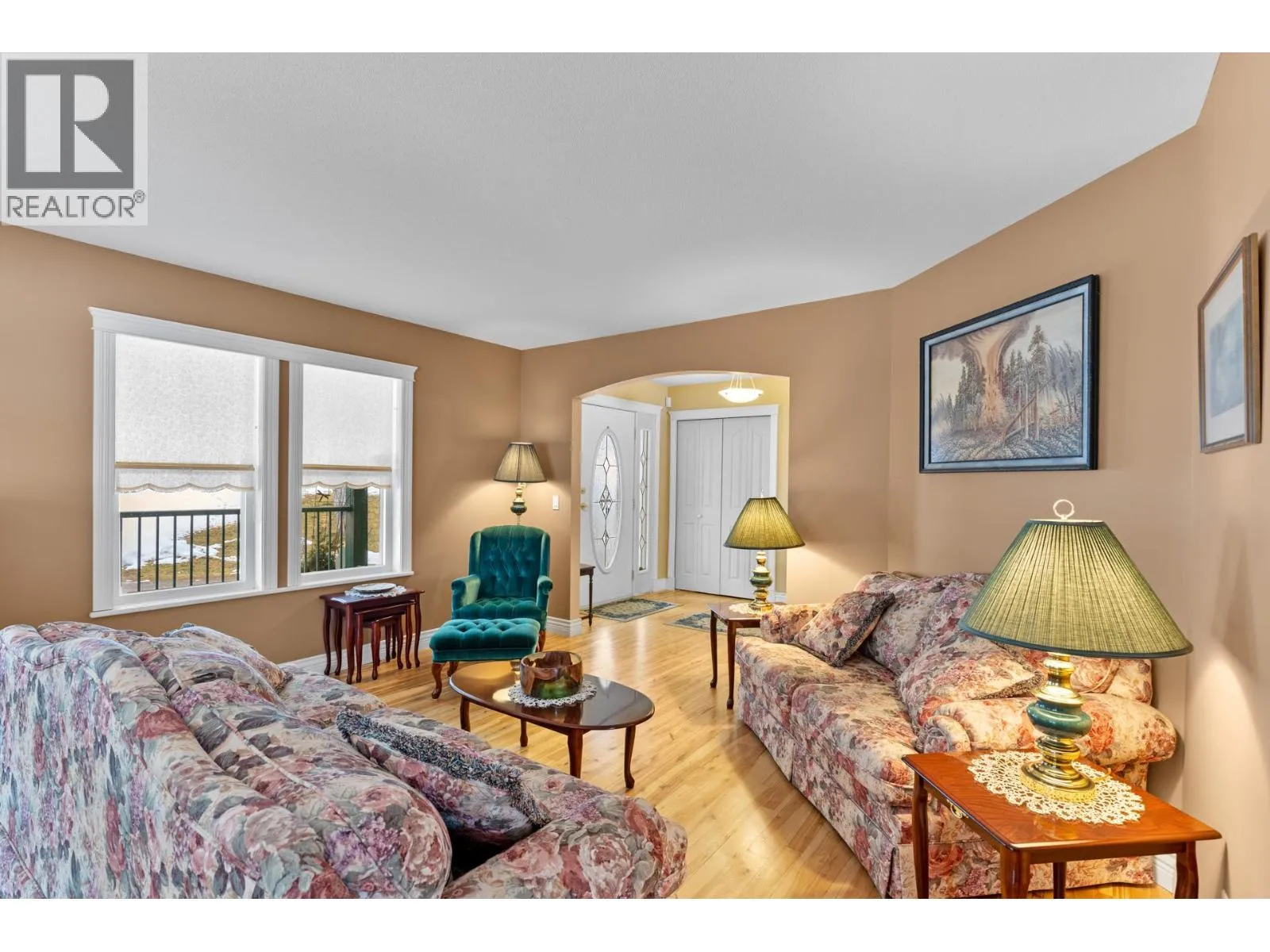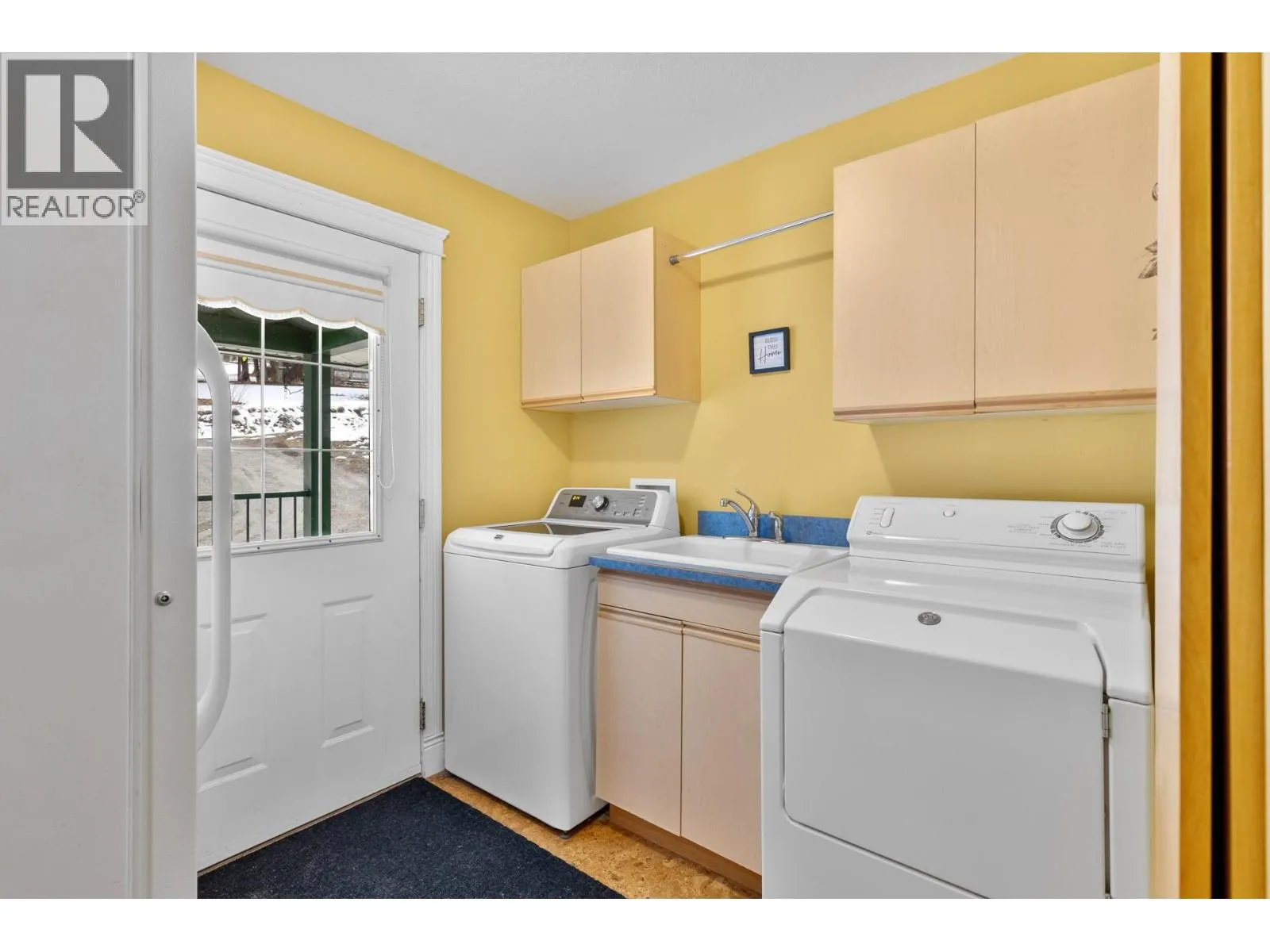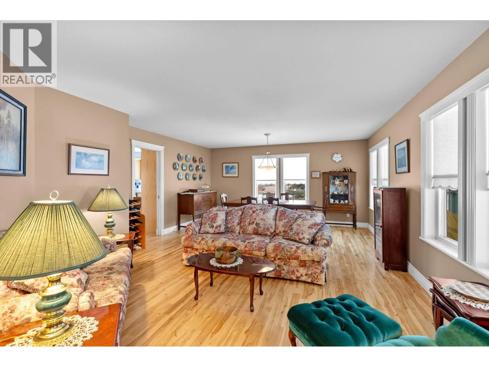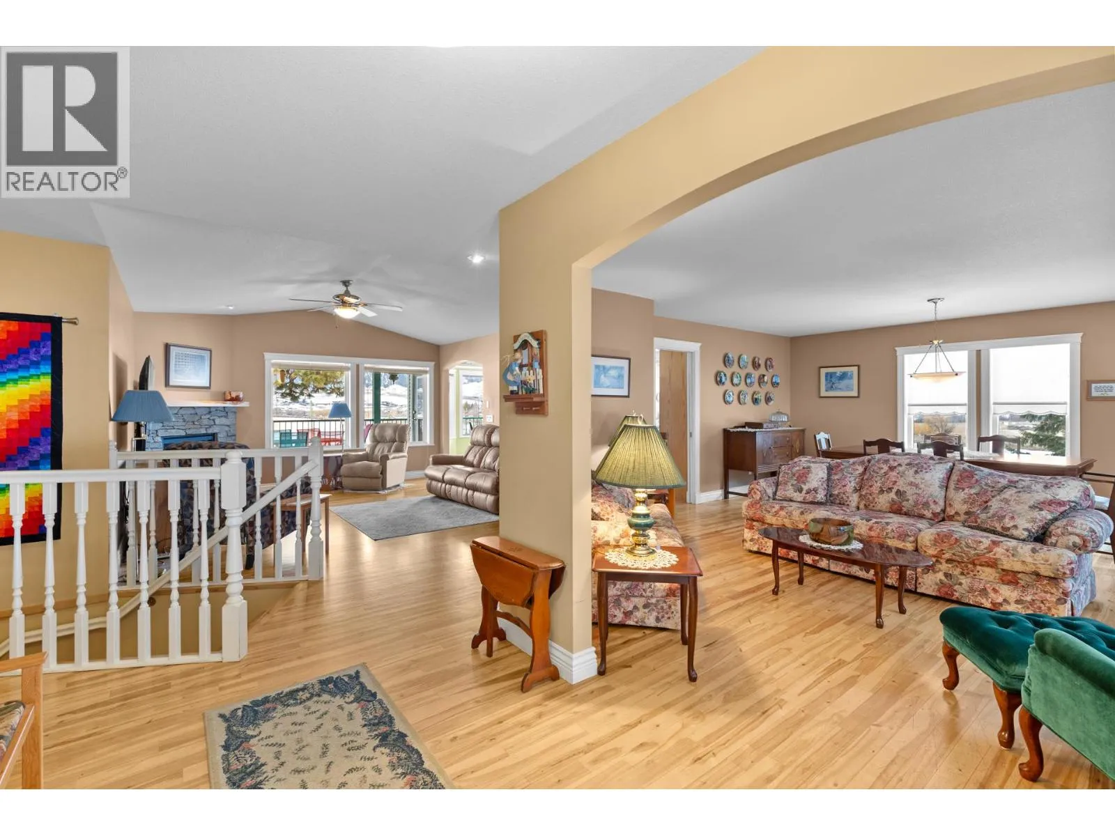 From the moment you arrive, you will be captivated by this charming property which is just steps from Wood & Kalamalka Lake. Set on a 0.618 corner acre lot, the home offers expansive mountain and great lake views all with elegant curb appeal. The thoughtfully designed wrap-around driveway welcomes you with a covered front porch and carport. A second driveway services the detached workshop and multiple garages, with ample parking for vehicles, a boat or an RV. Inside the residence built by Harmony Homes, you will find an expansive main floor featuring hardwood floors, as well as wide and accessible hallways and doorways. Enjoy the west facing deck off your main floor primary bedroom, wrapped beautifully around the kitchen for more entertaining space. Every detail has been considered for functionality and convenience, including a secondary entrance to turn this walk out basement into a one bedroom suite. The garage enters into the unfinished, spacious mechanical room and can easily be locked off for your own storage. Fenced in, irrigated yard offering a sanctuary of greenery and vibrant life. Mature ponderosa pines, fruit trees and grapevines create a stunning ambience, while a greenhouse and raised garden beds add to the propertyâs charm for gardening enthusiasts. The 80-amp heated workshop, includes wide-plank wood flooring, barn doors, an I-Beam and hot water on demand for the half bathroom. In proximity to boat launches, Kaloya Regional Park, the Okanagan Rail Trail and much more. (id:27476)