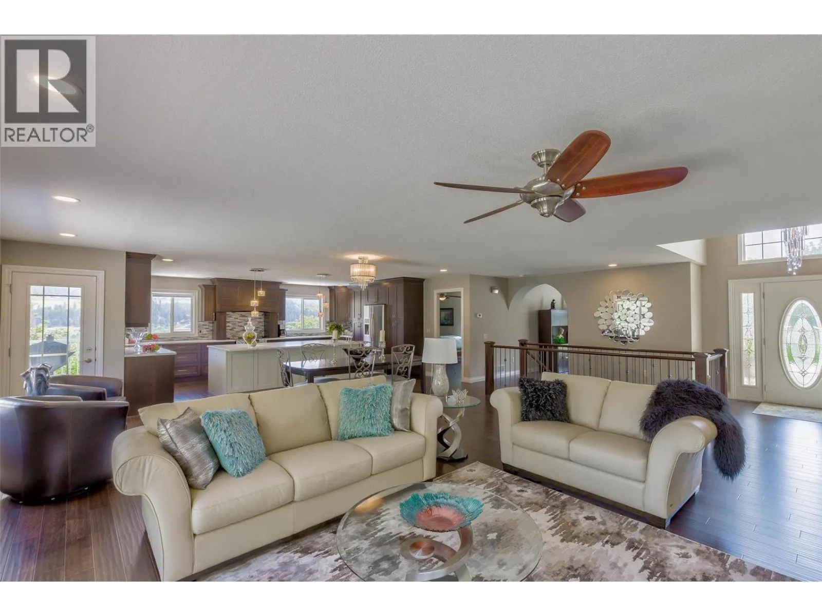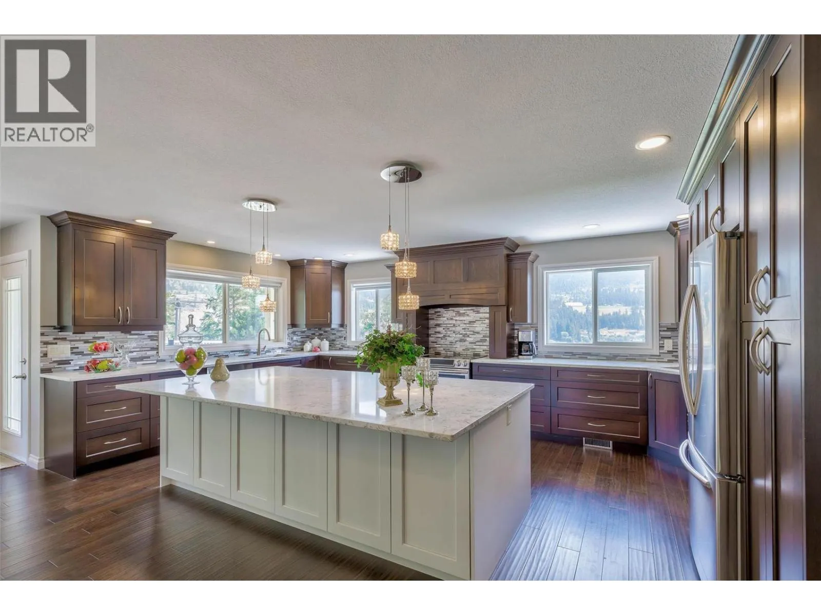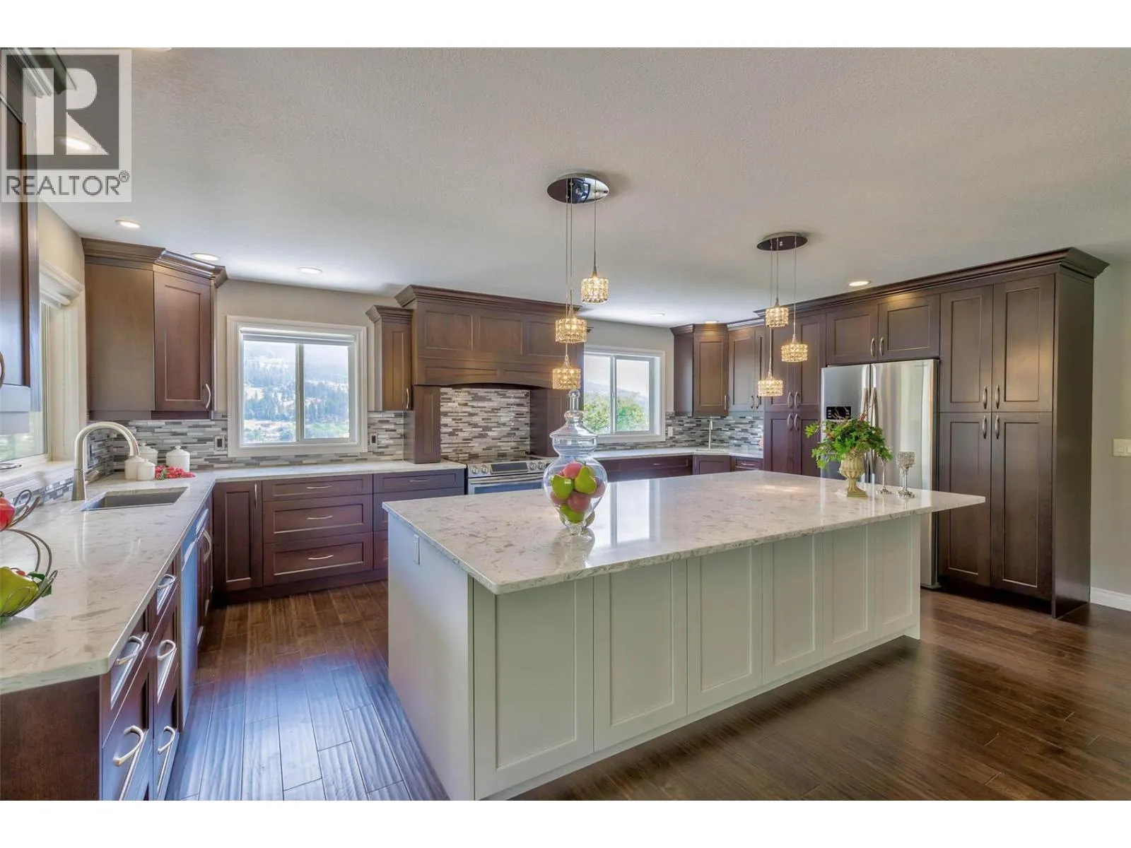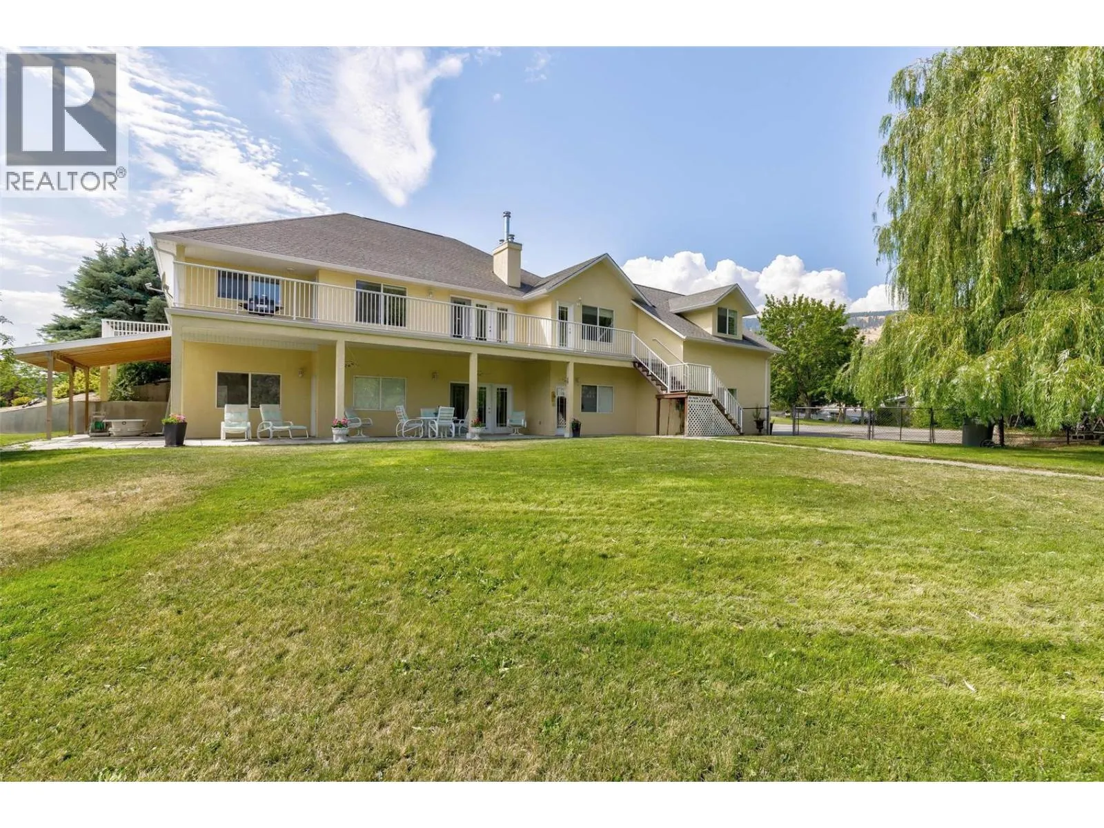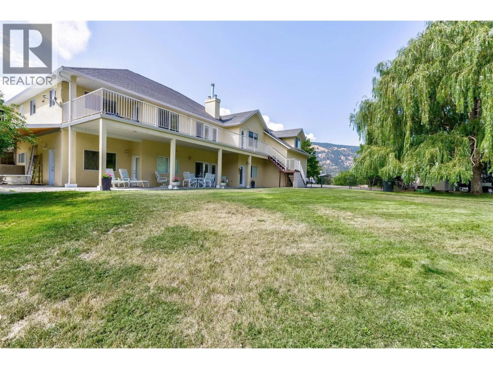 Stunning 10 acre parcel in the Oyama area of Lake Country w/ unique A1ta (Agri-Tourism Accommodation) zoning & operating RV park! The primary home offers 4300+ sq.ft., w/ 7 beds + office/den & 7 baths across 2 levels of living space. The main level has been substantially renovated & includes a stunning chefs kitchen w/ enormous kitchen island, opened up to the spacious living room. Access to a patio that spans across the back of the home & offers great views of the land below. 3 beds + office on the main incl. a separate master wing that has a sitting room w/ fireplace, large walk-in closet & a newly renovated ensuite w/ his/her sinks & tiled shower. Spectacular views of BOTH Kalamalka & Wood lakes throughout. Downstairs features 4 beds, all with their own entrance & 2-pce private ensuite. Theres also a 4-pce common bath. Summer kitchen area & add. access to the triple car garage. This layout could be well suited to a bed and breakfast. One of the most unique features of the property is the 10 stall RV park; provides great seasonal rental rates in the spring/summer/fall months! Theres also 2+ acres planted to apples, leased year-to-year to a local farmer. Approx. 3.6 acres (some cleared, some lightly treed) that could be used for added horticultural uses; slope would be great for a vineyard or tree fruits. Theres also a small cabin at the bottom of property. It is rare to find such a property so close to the water w/ both Kalamalka & Wood lakes just a quick walk away. (id:27476)