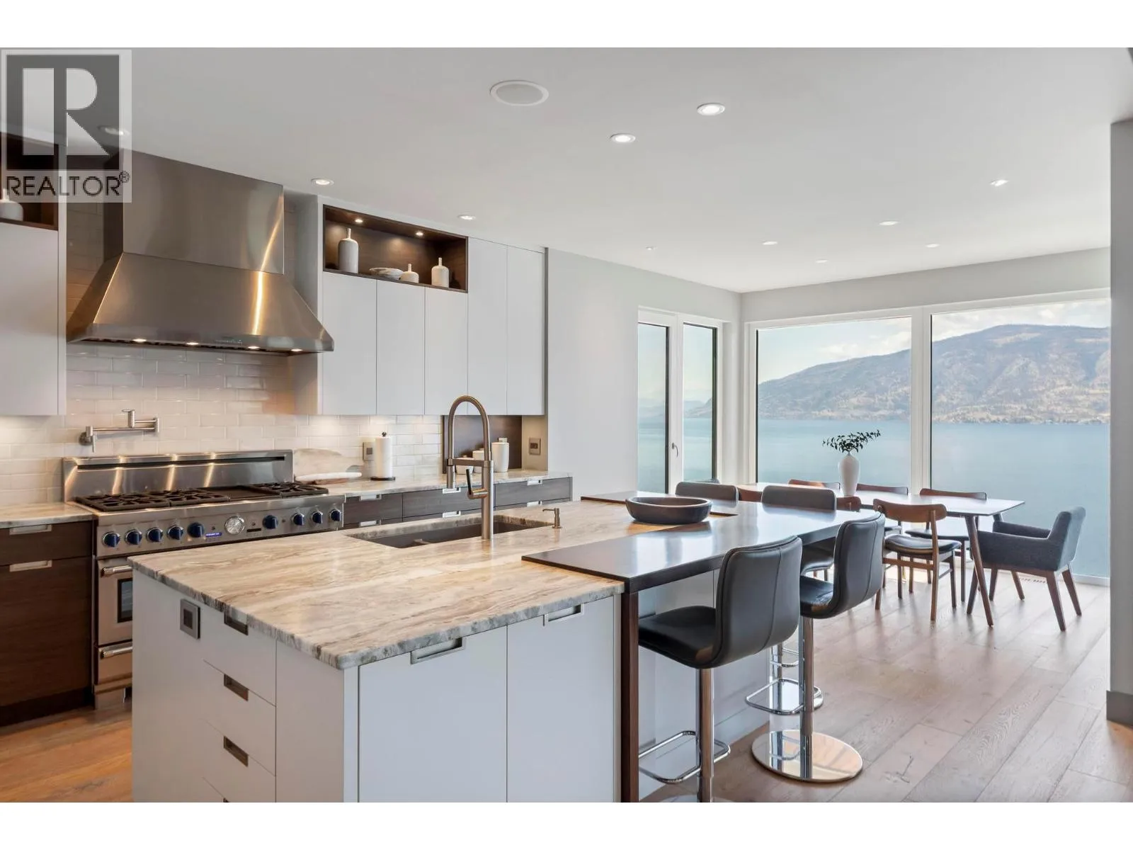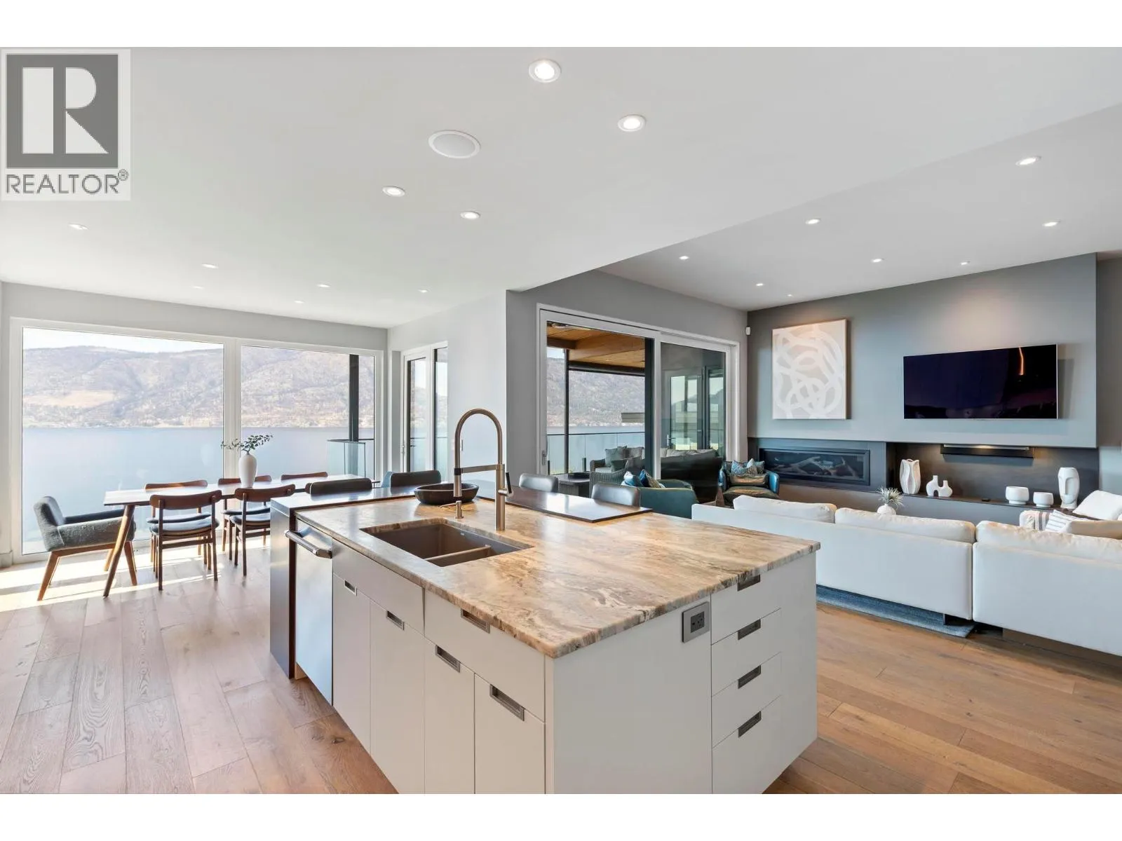 AWARD WINNING HOME WITH GORGEOUS UNOBSTRUCTED LAKE VIEWS! This two-time Tommie Award-winning home is perfectly perched in Lakestoneâs prestigious Waterside phase, showcasing panoramic, unobstructed lake views and fully loaded with quality finishings and upgrades. Offering 4 bedrooms + Office, 4 bathrooms and over 3500 SQ FT of expertly designed living space, this home is the perfect blend of elegance and comfort; and you'll never tire of coming home to the lake and to your views! Enjoy the SW exposure through floor-to-ceiling windows and entertain year-round on the covered deck, complete with ceiling heaters and retractable enclosures to extend your outdoor living season. The Gourmet Carolyn Walsh Kitchen was built to impress, featuring high-end Thermador appliances including a 48"" double steam oven, panel door Fridge and Butler's pantry with extra sink and wine & beverage fridge. Wake up to lake views from the primary suite, with a spa-like 5-piece ensuite, soaker tub, tiled shower, and custom walk-in closet with built-ins. The lower level hosts 3 more beds, 2 full baths (one of which includes a sauna), rec & games room and a gorgeous 12x10 wine cellar! PLUS a 20x20 Suspended slab room, giving you the opportunity for over 400 SQ FT of convertible space! Don't miss this rare opportunity to own a true showpiece home in one of the Okanaganâs most sought-after communities. Schedule your private tour today and experience lakeside luxury at its finest. (id:27476)